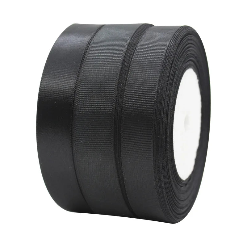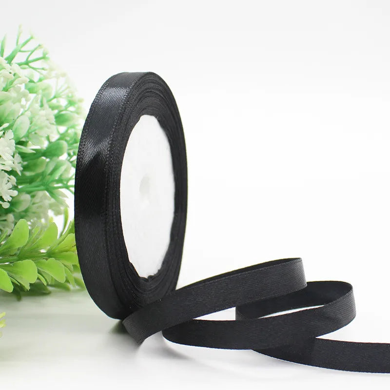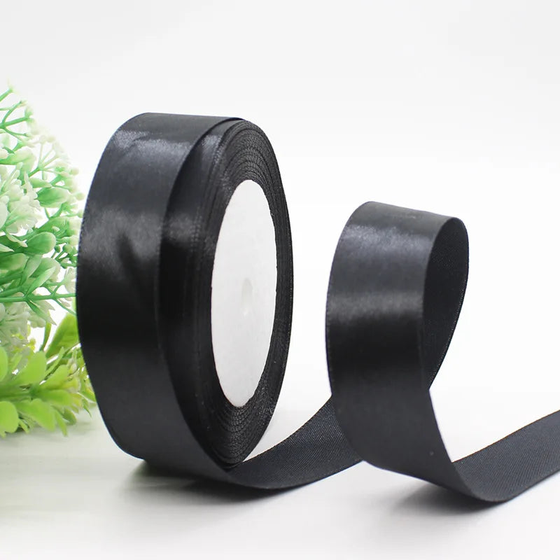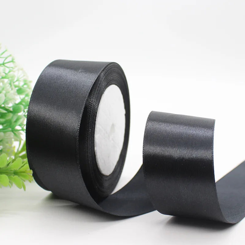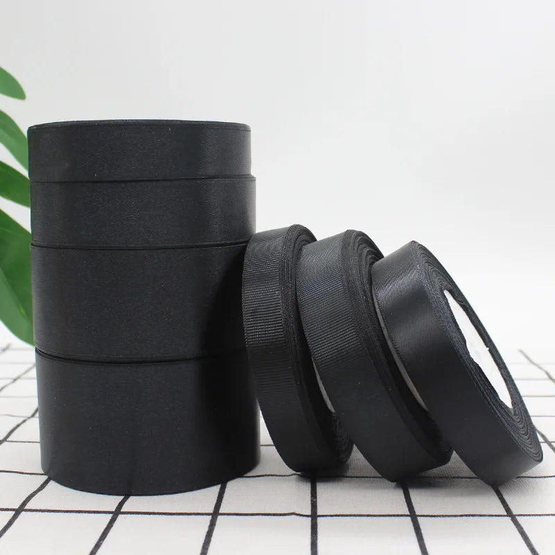 25Yards Black Satin Ribbons DIY Artificial Silk Roses Supplies Handicraft Sewing Accessories Material Gift Wrapping Ribbon