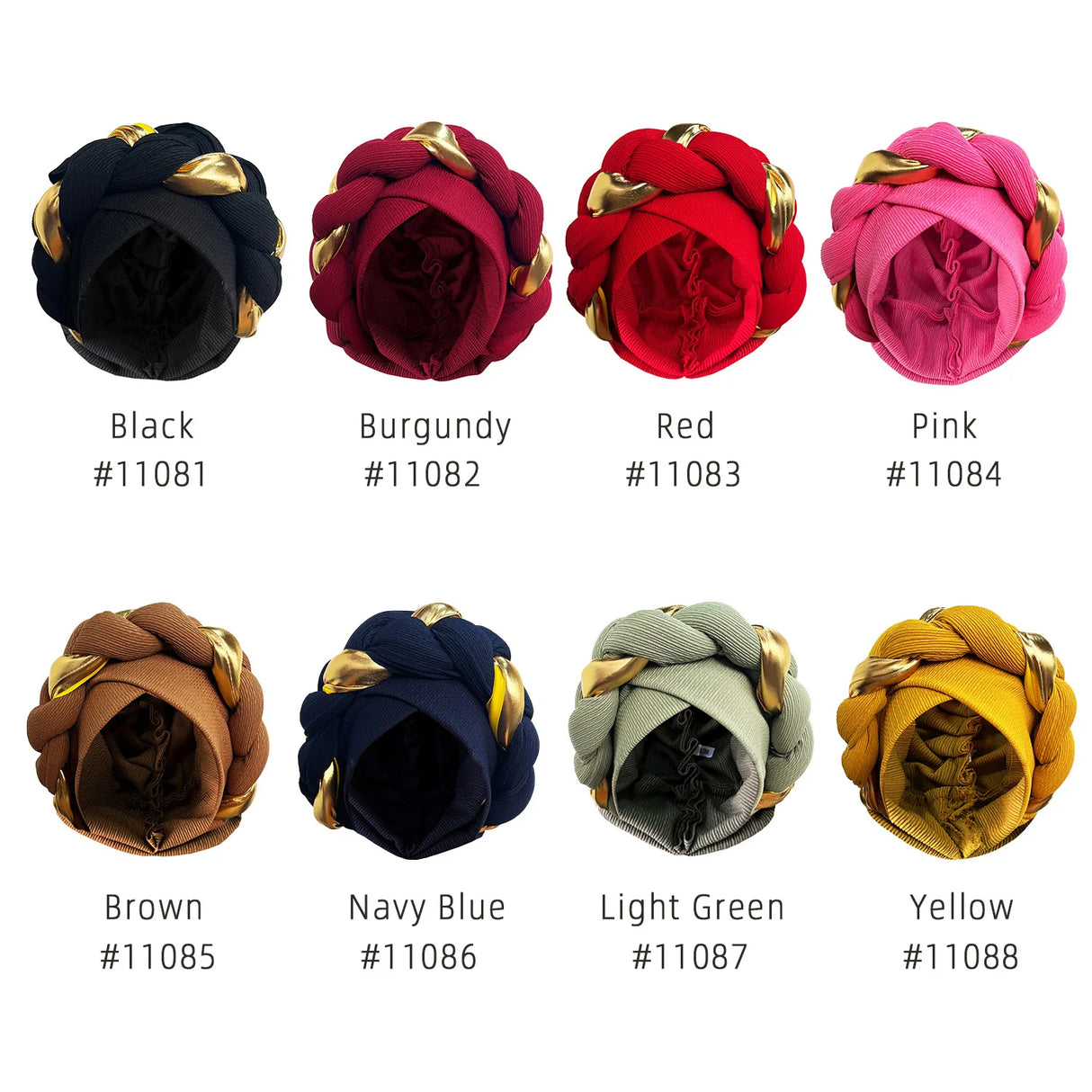 2024 New African Women Pleated Beanie Headwrap Hat Hair Accessories Arab Wrapped Muslim Hijab Turban Cap Female