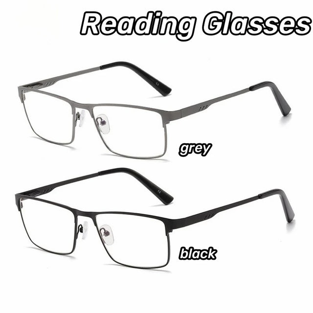 Blue Light Blocking Eye Protection Eyeglasses Men Square Metal Large Frame Reading Spring Leg Elderly Presbyopia Glasses - grey / 2.75 is backordered and will ship as soon as it is back in stock.