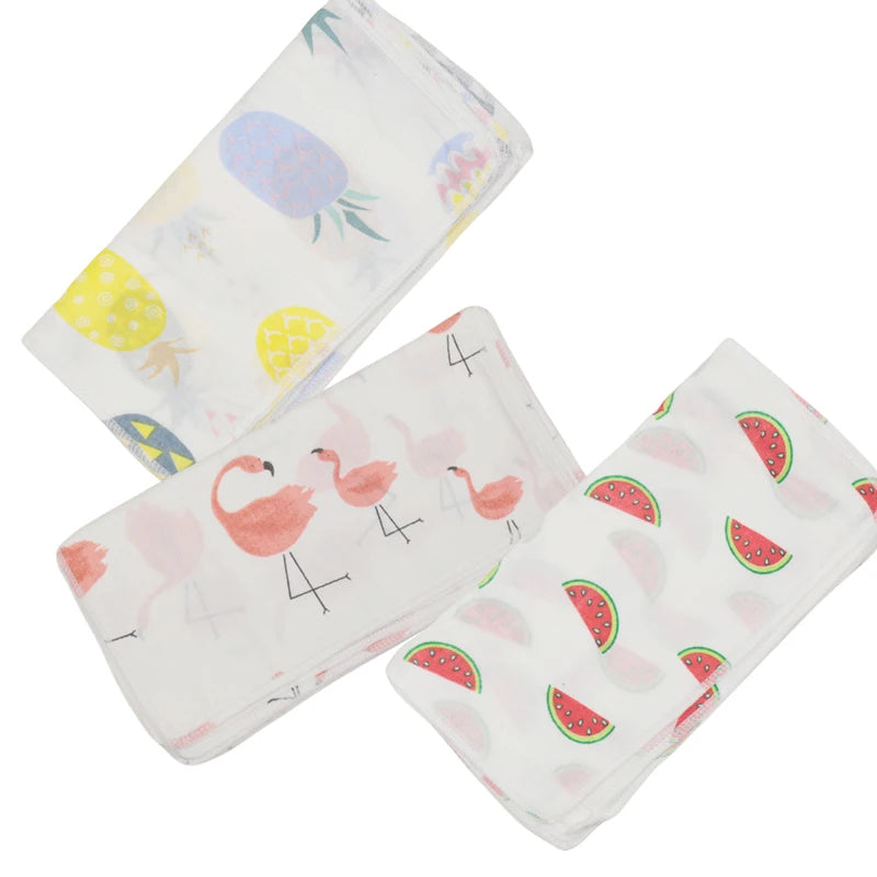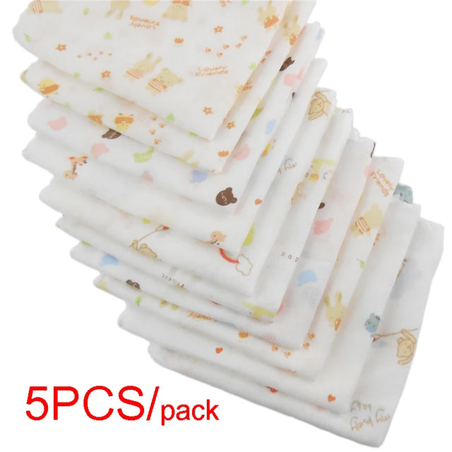 5pcs Pack 31*31cm 100% Cotton Gauze Cartoon Newborn Infant Baby Face Hand Bathing Towel Bibs Feeding Handkerchief Square Towels