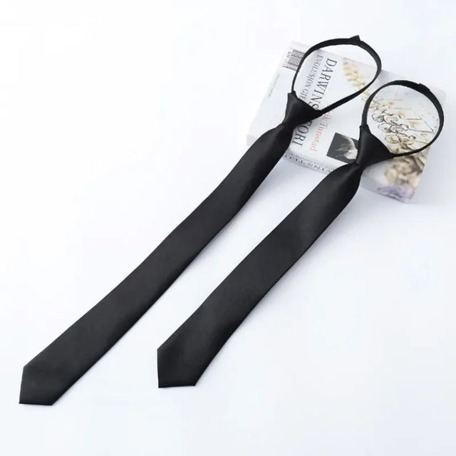 Black Zipper Ties Retro Silky Narrow Women Men Neck Tie Slim Smooth Bow Tie Korean Style Simple Elegant All-match Trendy Tie