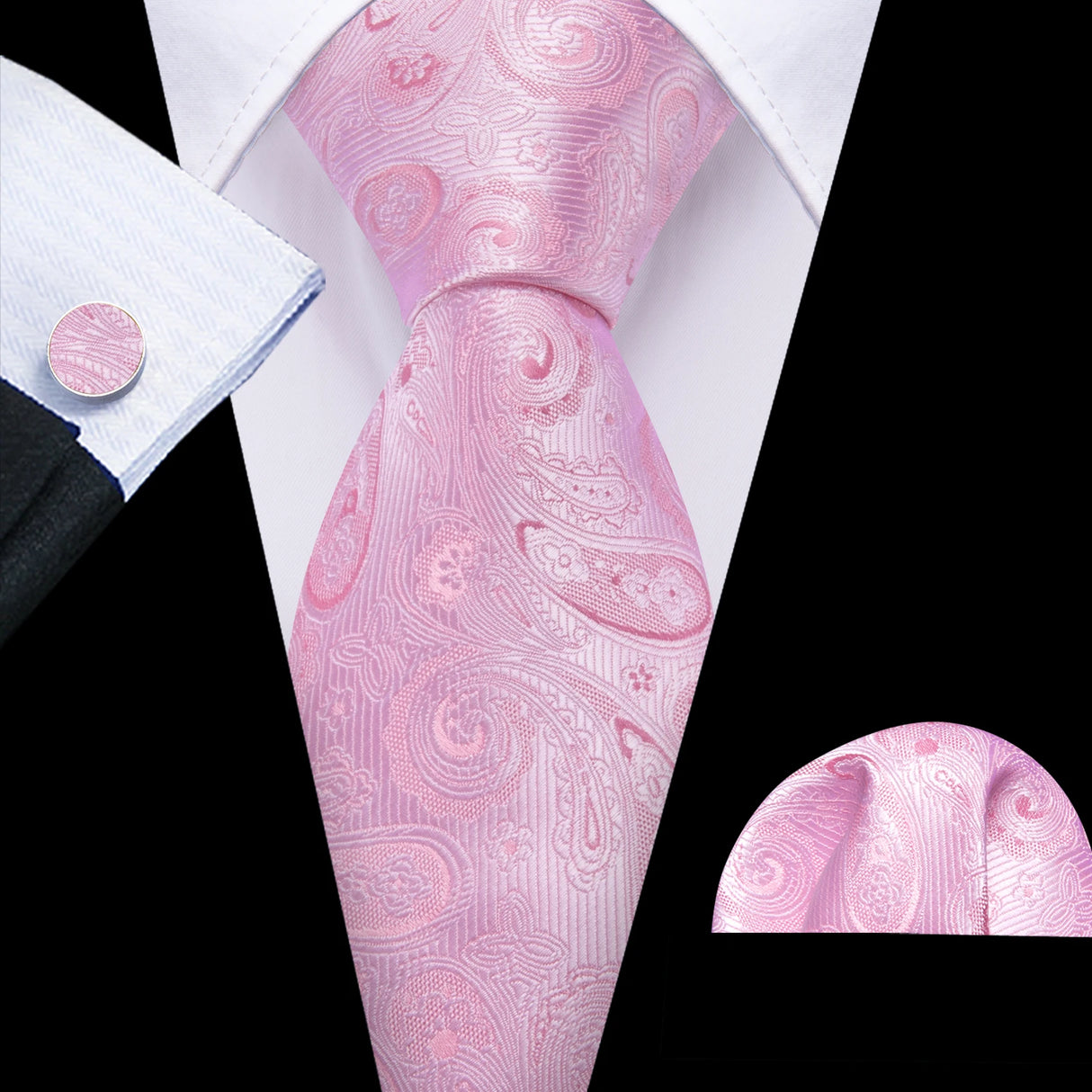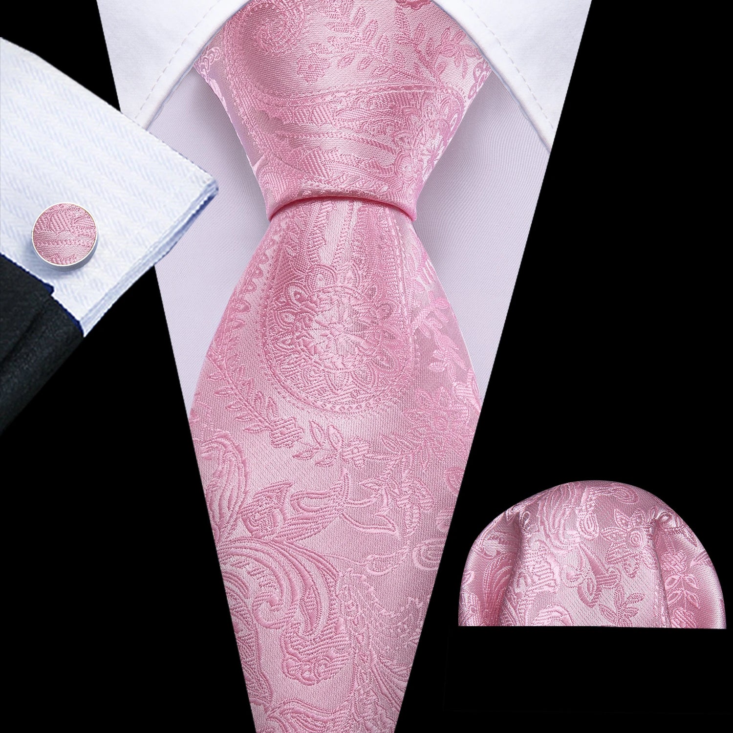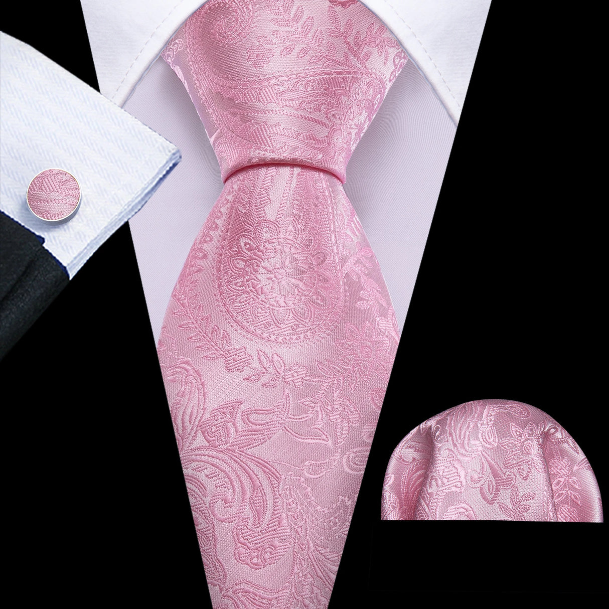 Classic Peach Pink Ties For Men Exquisite Paisley Necktie Handkerchief Cufflink Set Groom Gift Business Designer Barry.Wang 6012