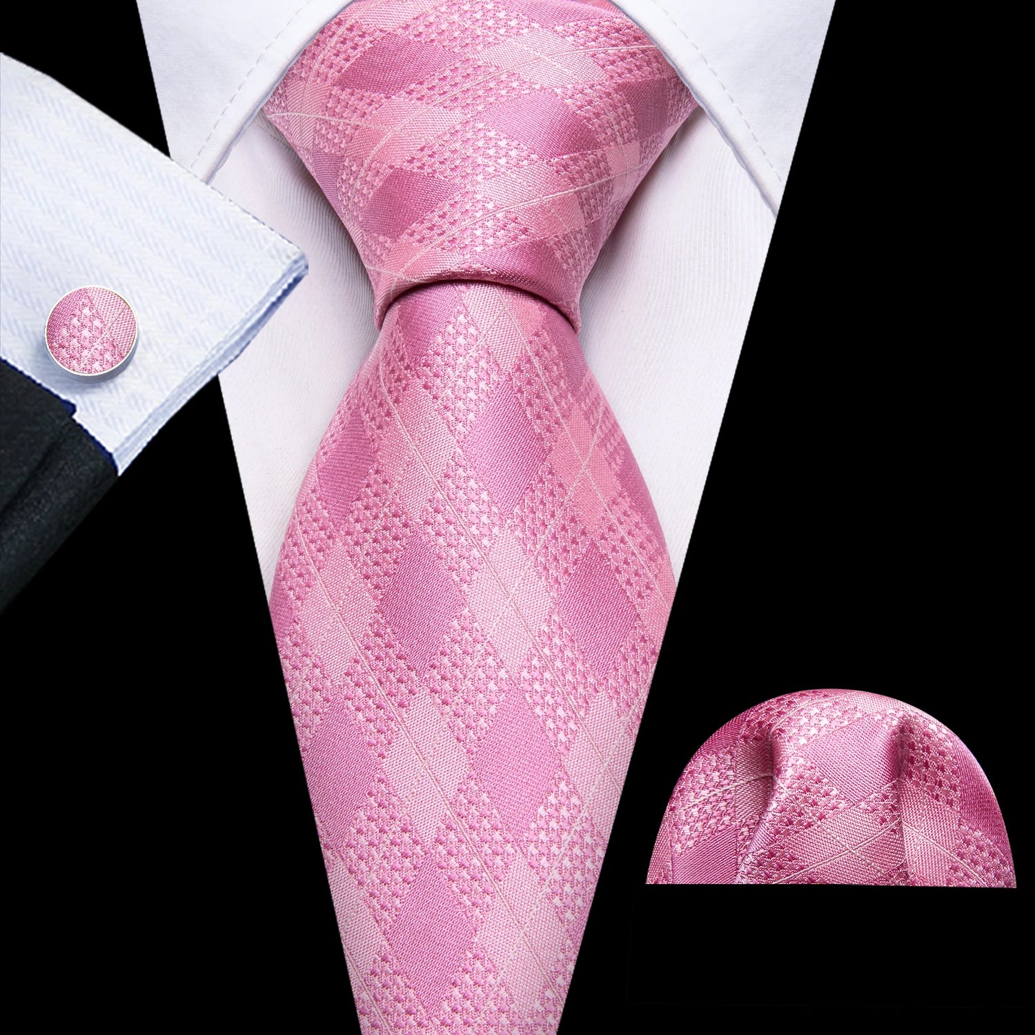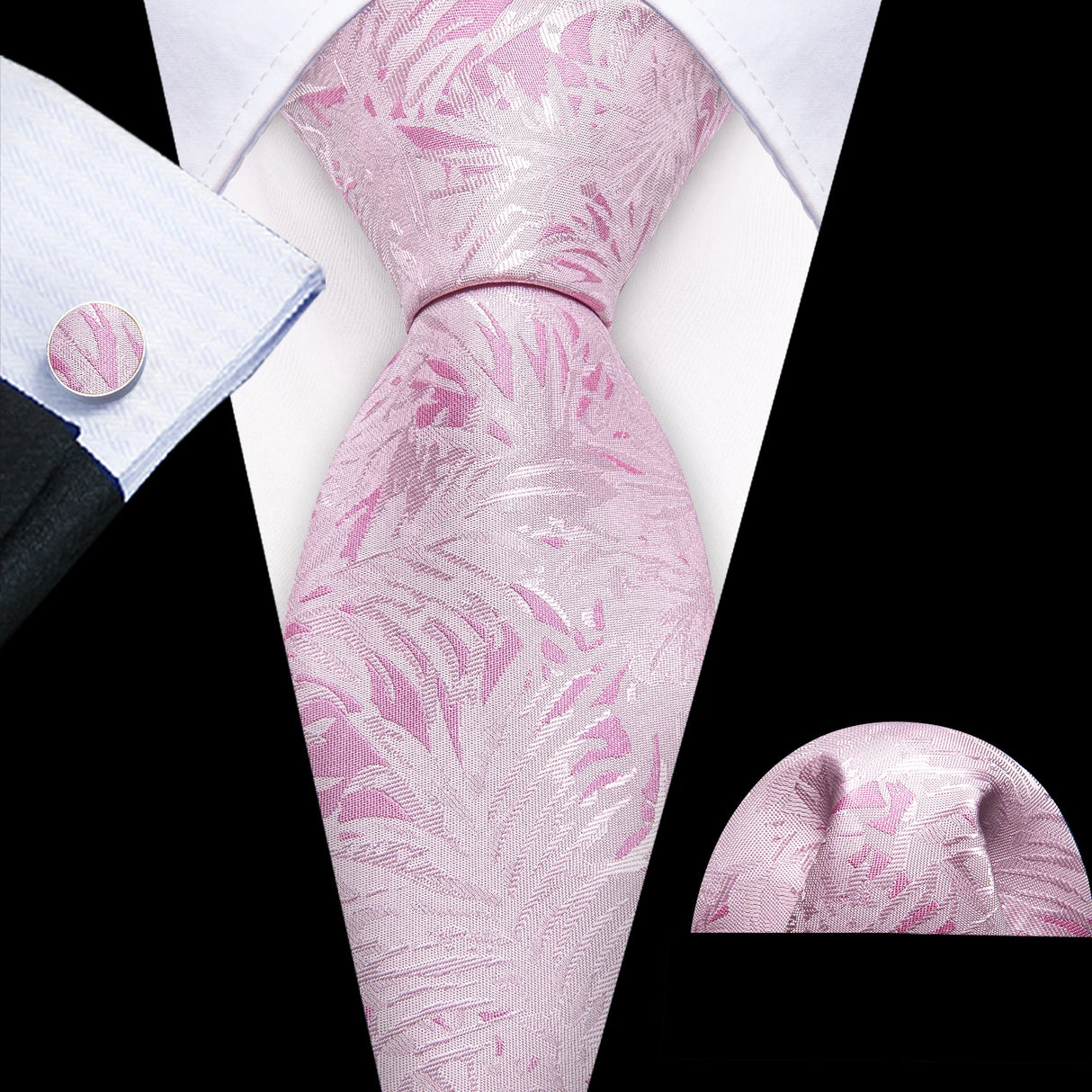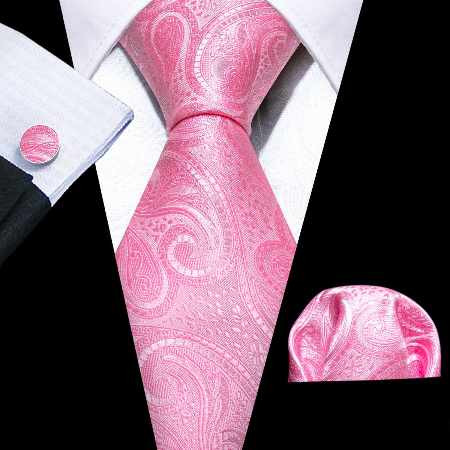 Classic Peach Pink Ties For Men Exquisite Paisley Necktie Handkerchief Cufflink Set Groom Gift Business Designer Barry.Wang 6012