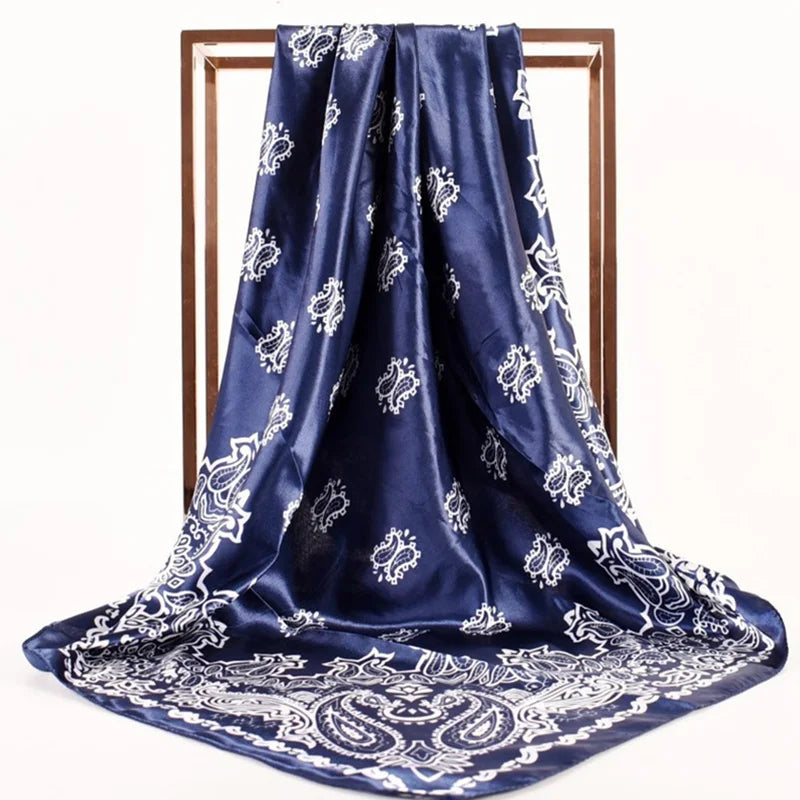 90x90cm Hijab Paisley Print Hair Head Scarves Bandana Satin Cashew Flower Big Square Silk Scarves Scarf Foulard Neckerchief - Navy Blue is backordered and will ship as soon as it is back in stock.