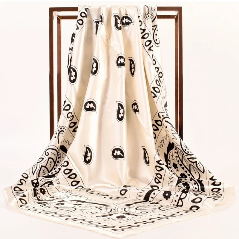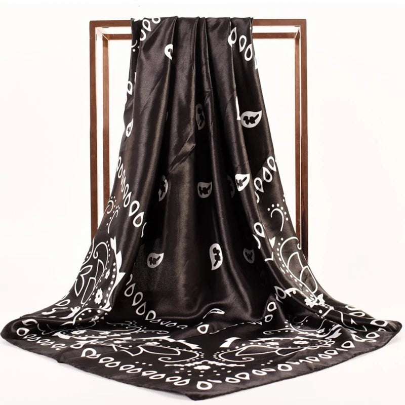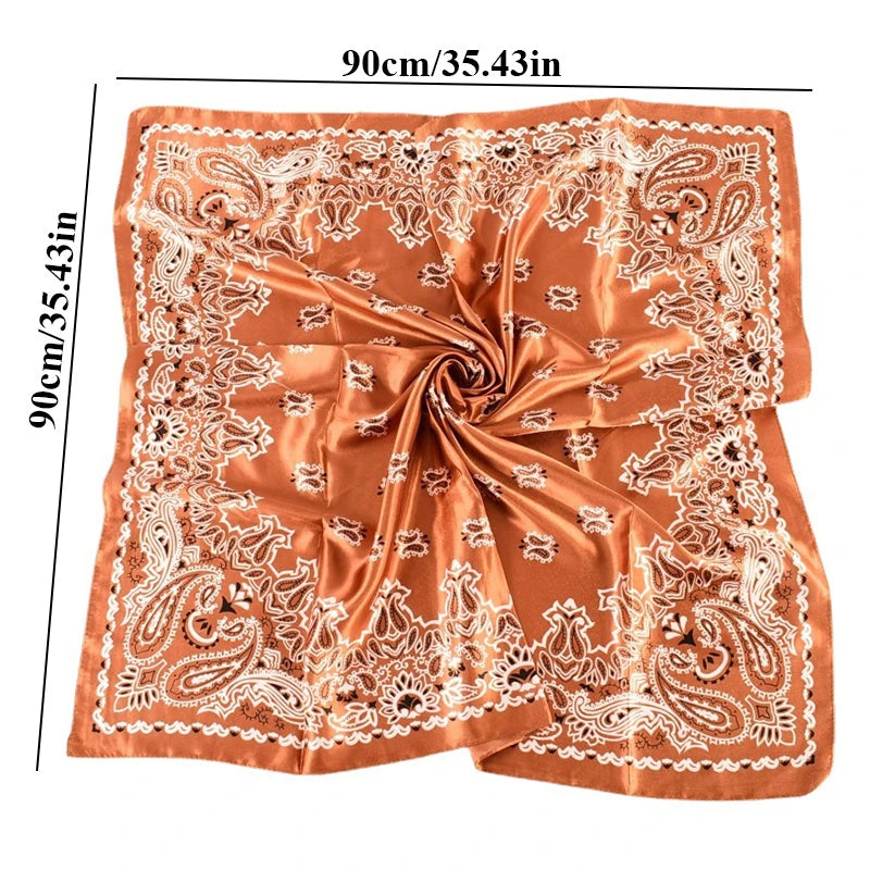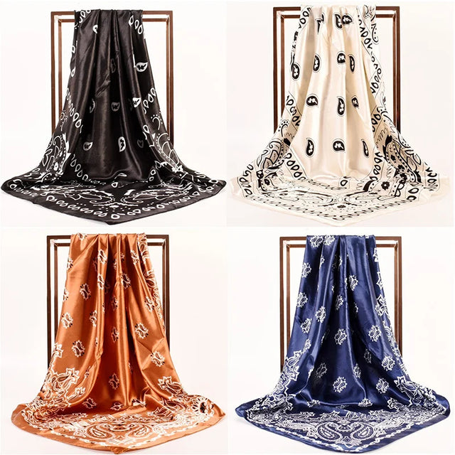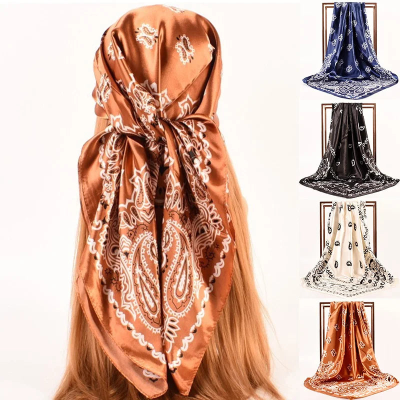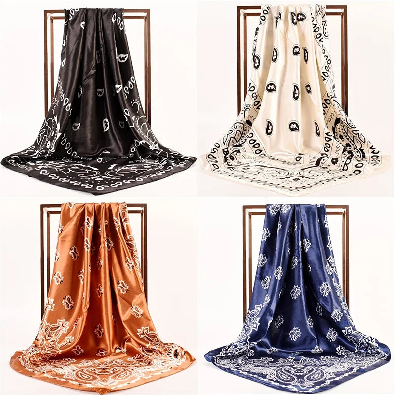 90x90cm Hijab Paisley Print Hair Head Scarves Bandana Satin Cashew Flower Big Square Silk Scarves Scarf Foulard Neckerchief