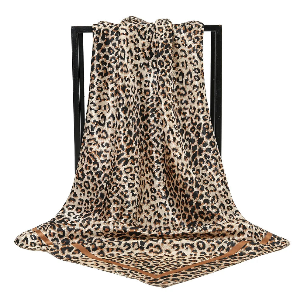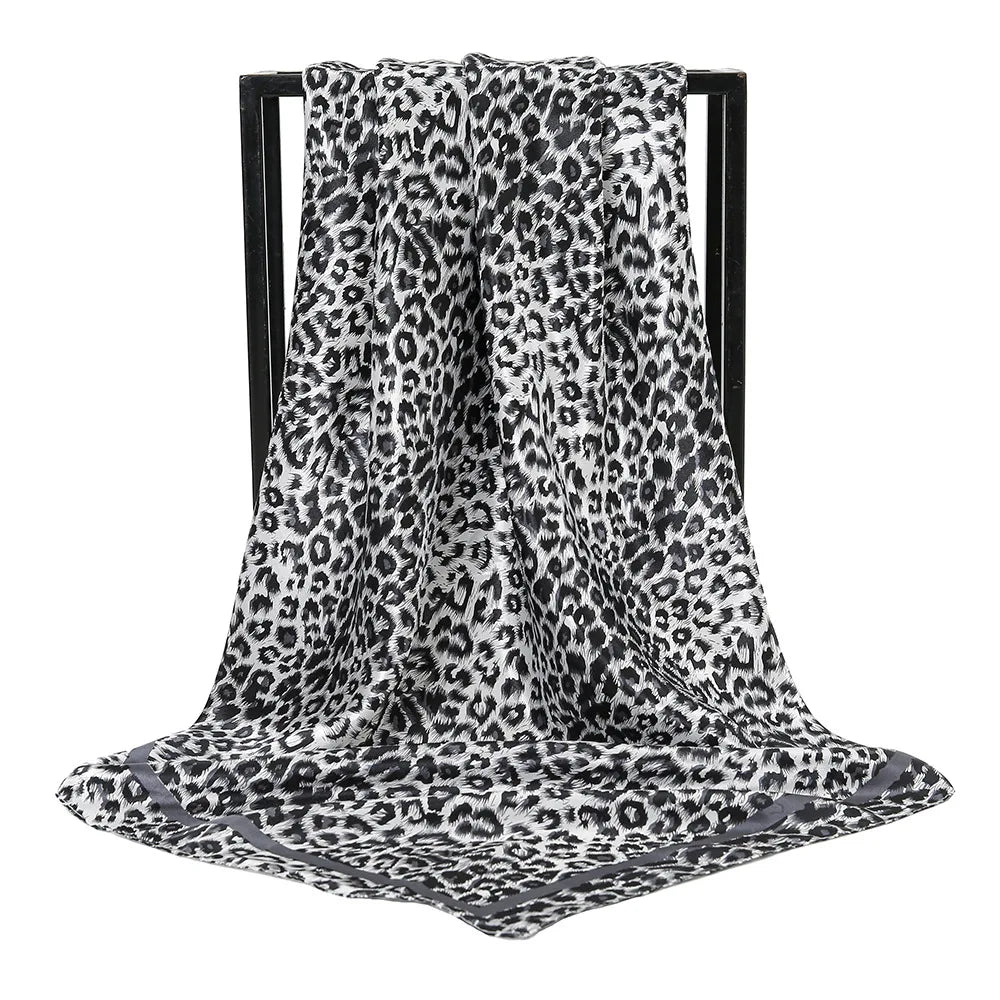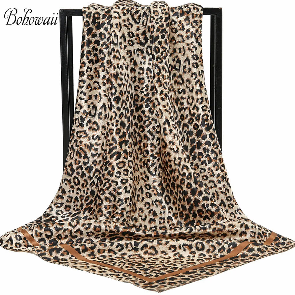 BOHOWAII Fashion Leopard Scarf Hijab Shawl Silk Feeling Hair Ties Satin Square Turbans Cheetah Animal Print Head Wrap Scarves