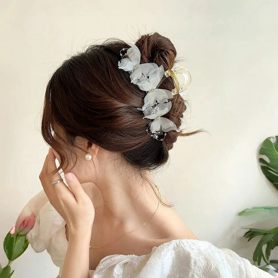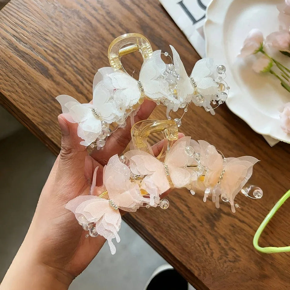 New Fashion Simulation Butterfly Hair Clips Women Elegant Pearl Bow Ponytail Clip Sweet Crab Claw Headdress Hair Accessories