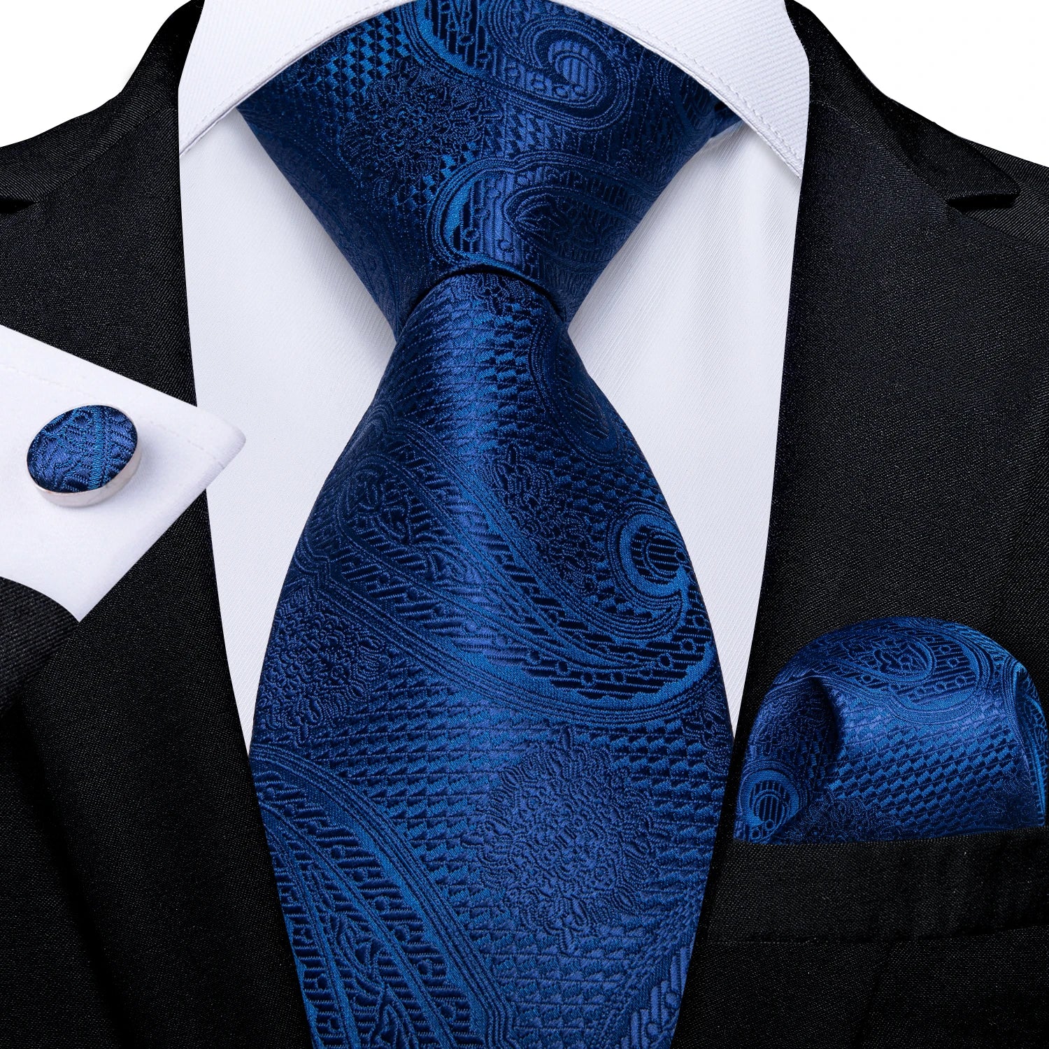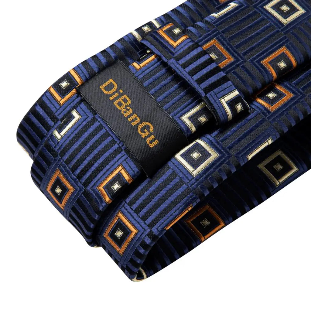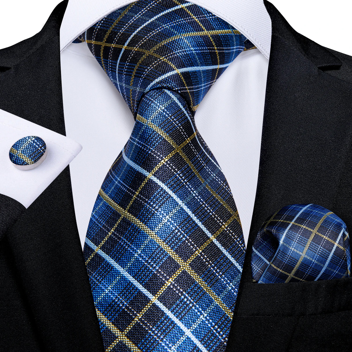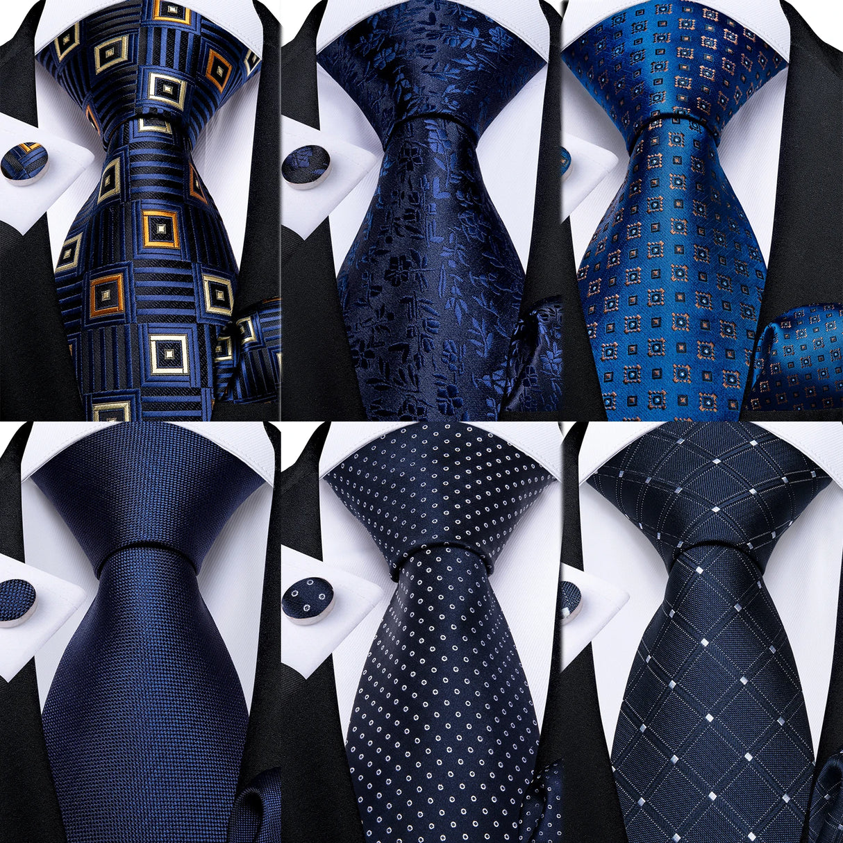 DiBanGu 8cm Blue Plaid Paisley Dot 100% Silk Men Tie Business Formal Wedding Party Necktie Hanky Cufflinks Set Mens Ties Gift