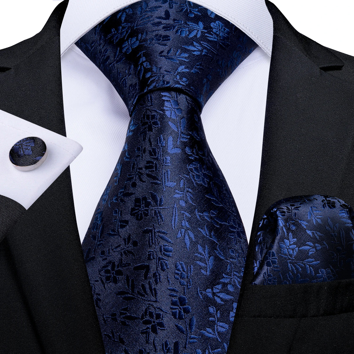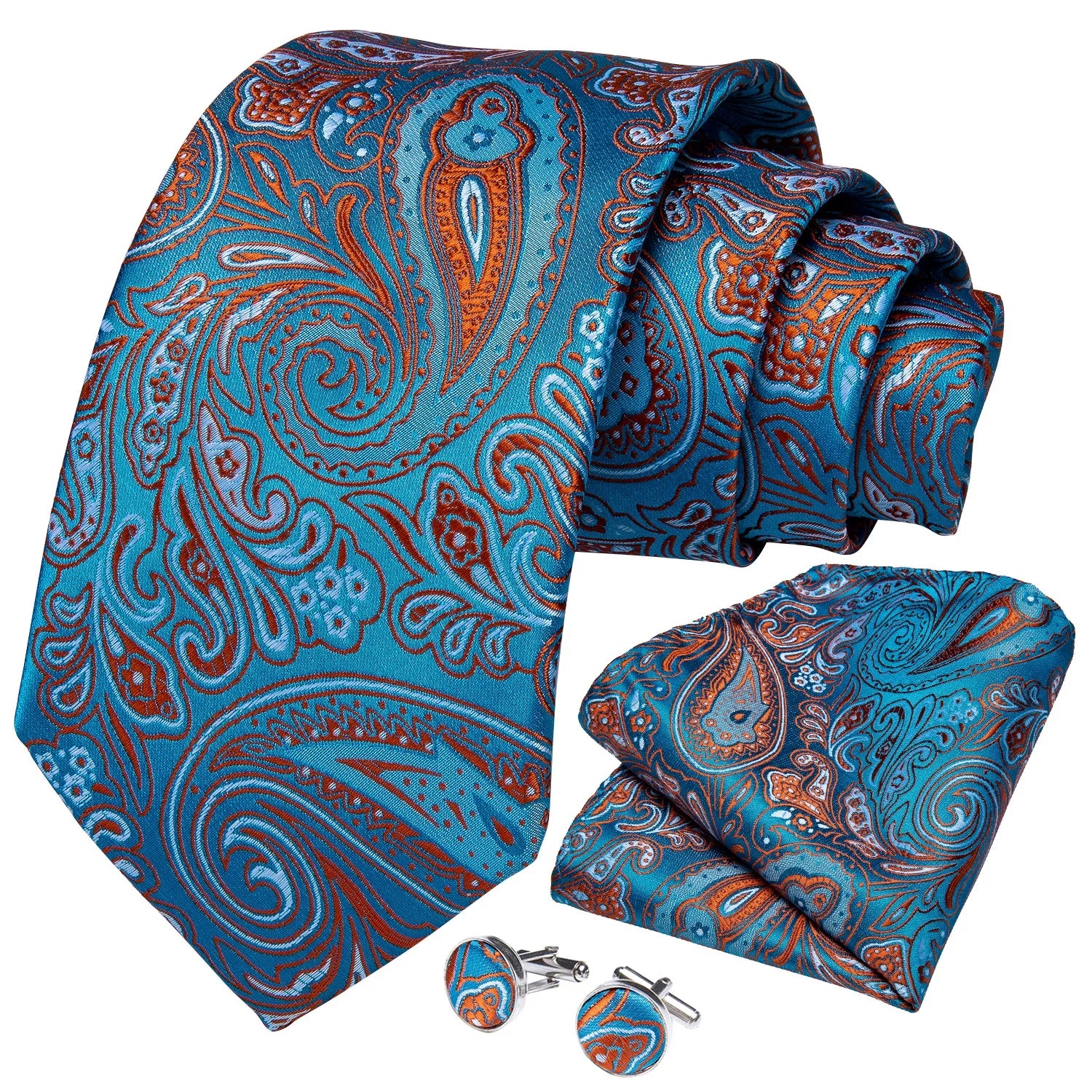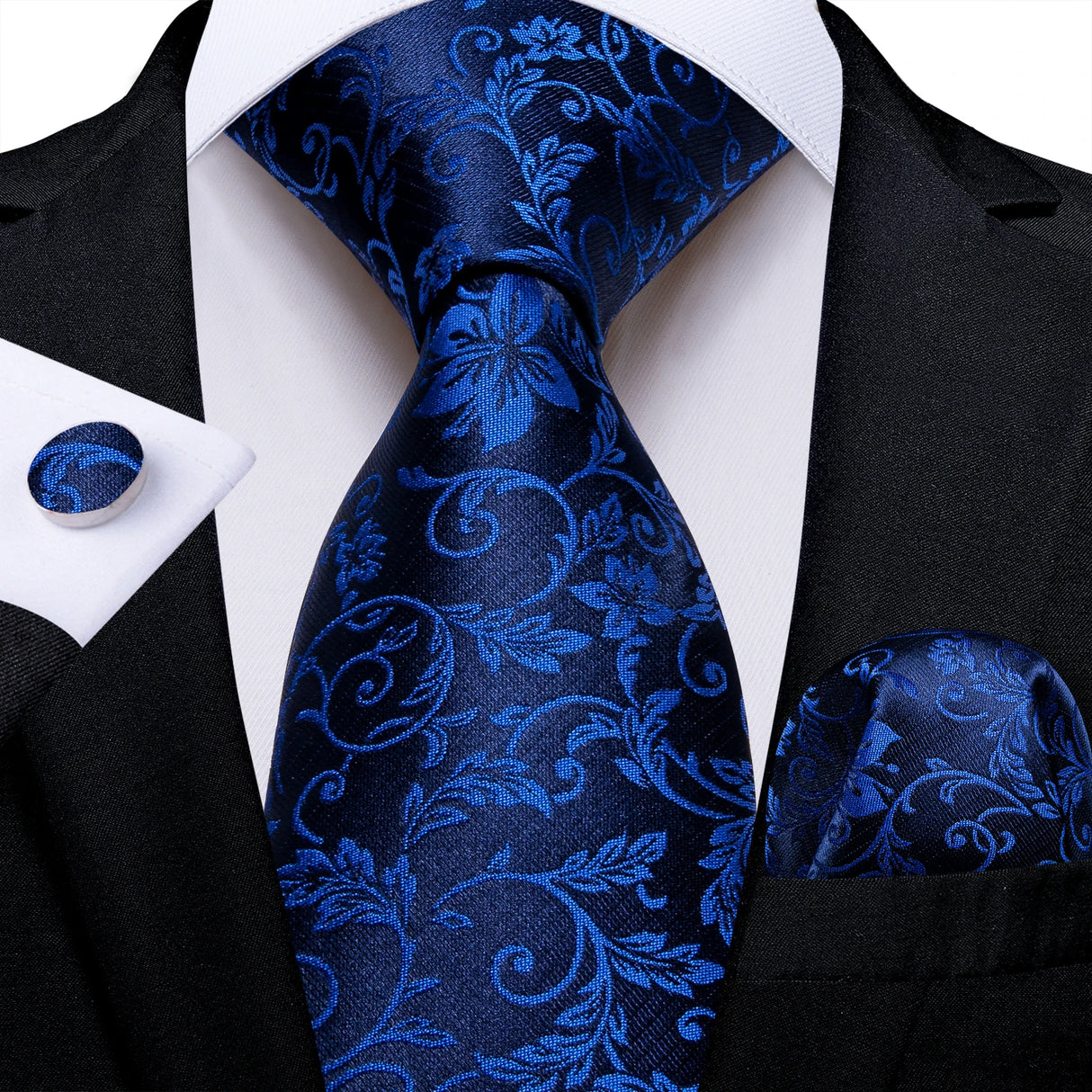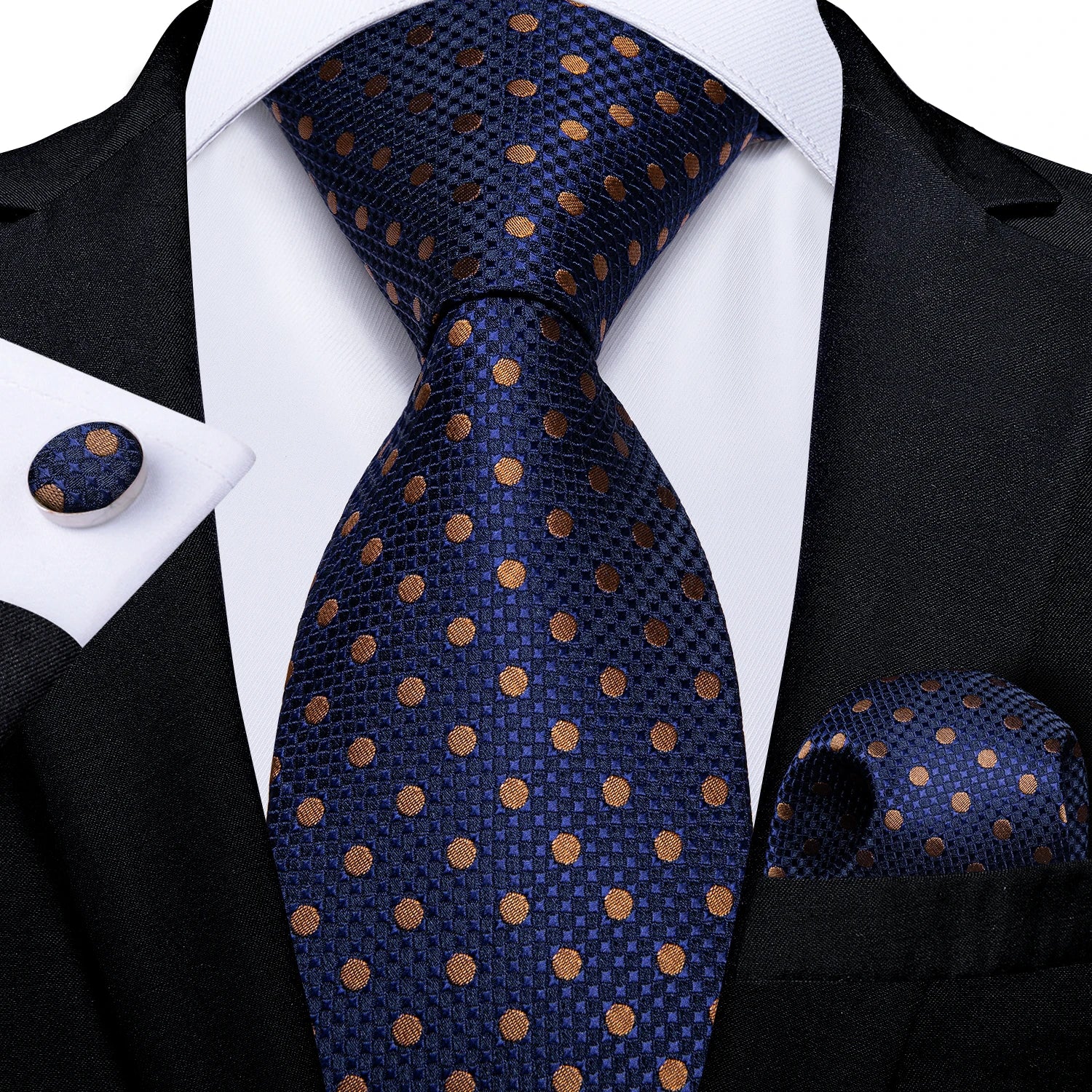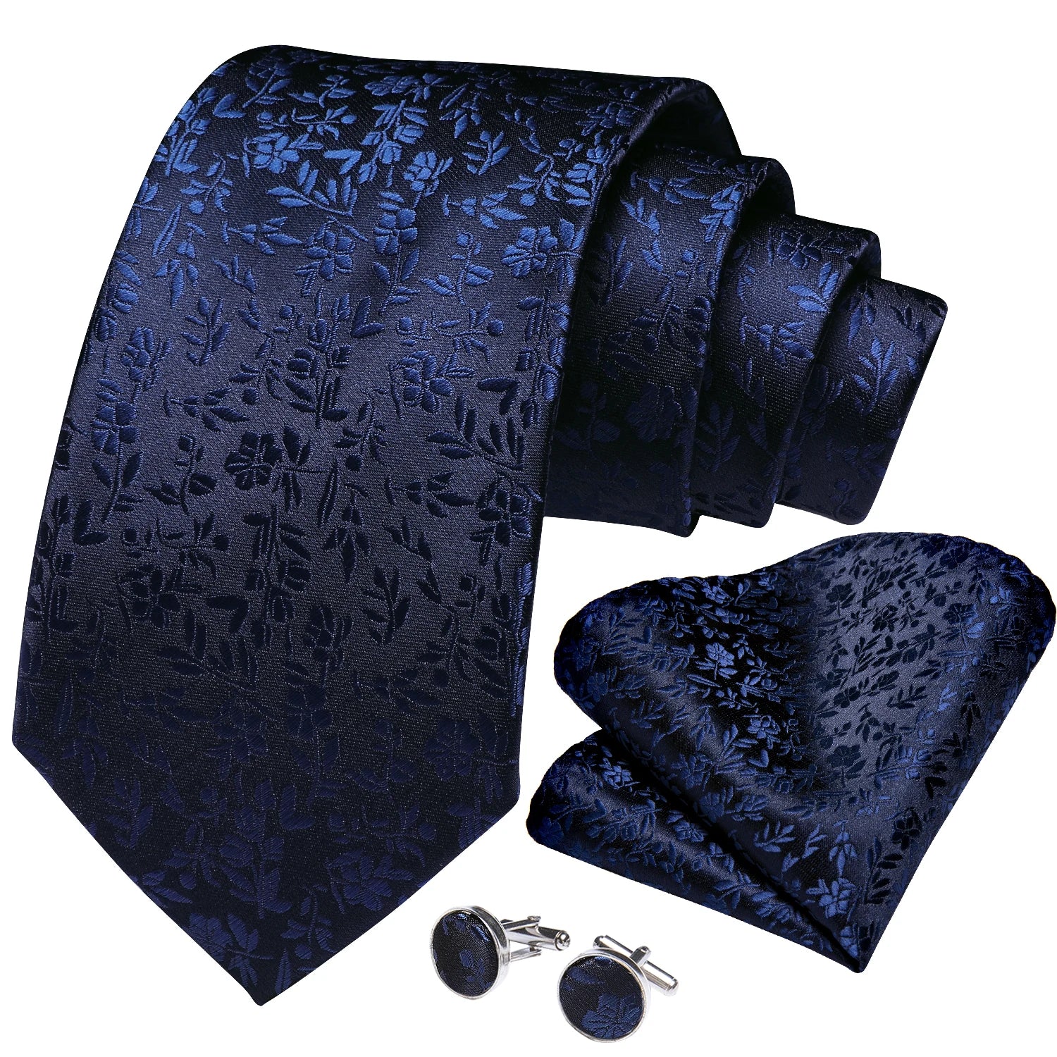 DiBanGu 8cm Blue Plaid Paisley Dot 100% Silk Men Tie Business Formal Wedding Party Necktie Hanky Cufflinks Set Mens Ties Gift