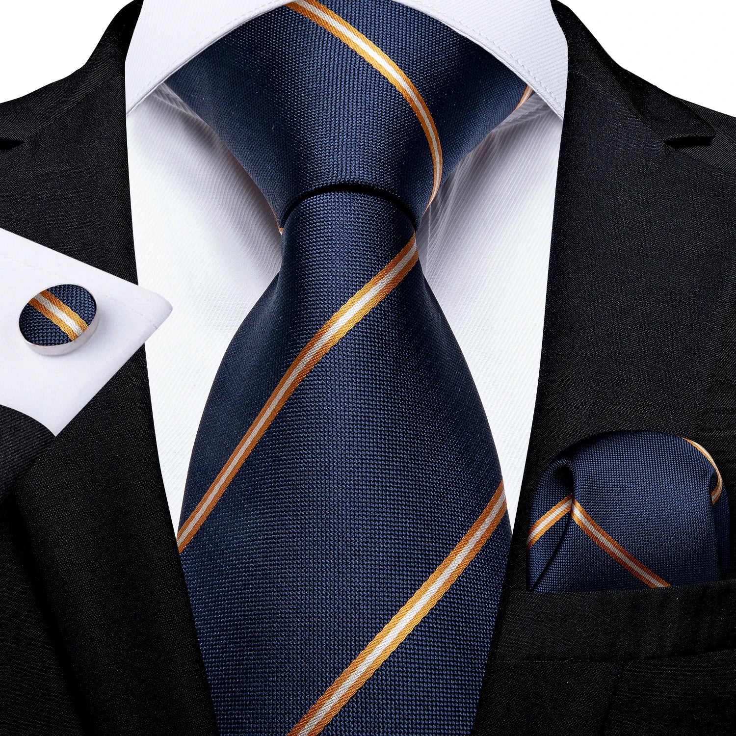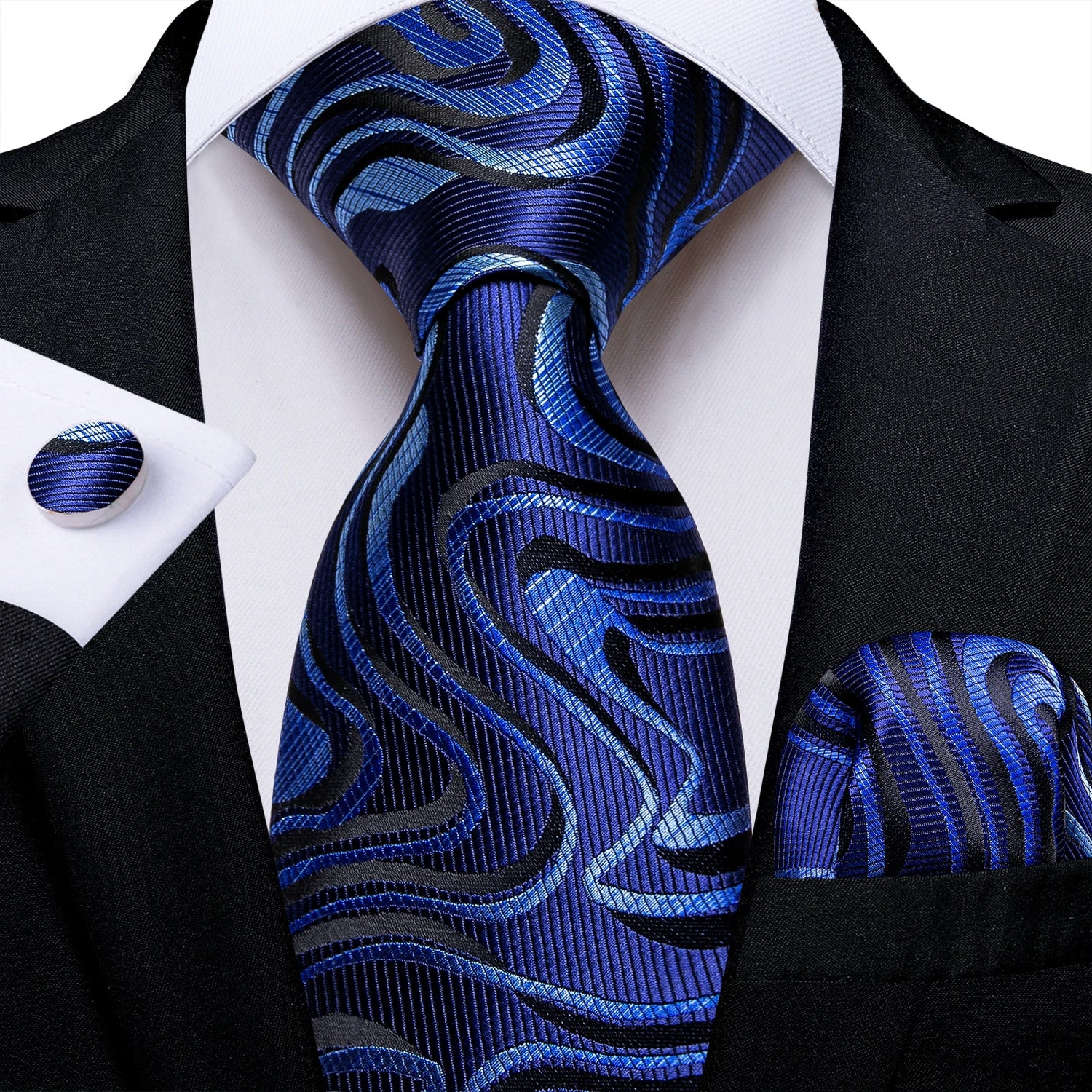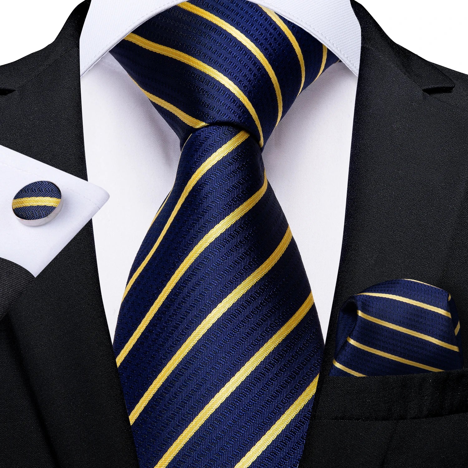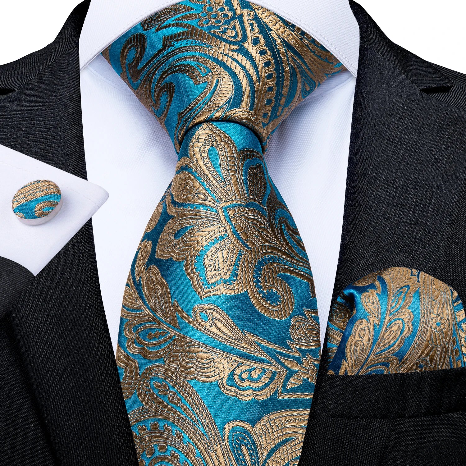 DiBanGu 8cm Blue Plaid Paisley Dot 100% Silk Men Tie Business Formal Wedding Party Necktie Hanky Cufflinks Set Mens Ties Gift