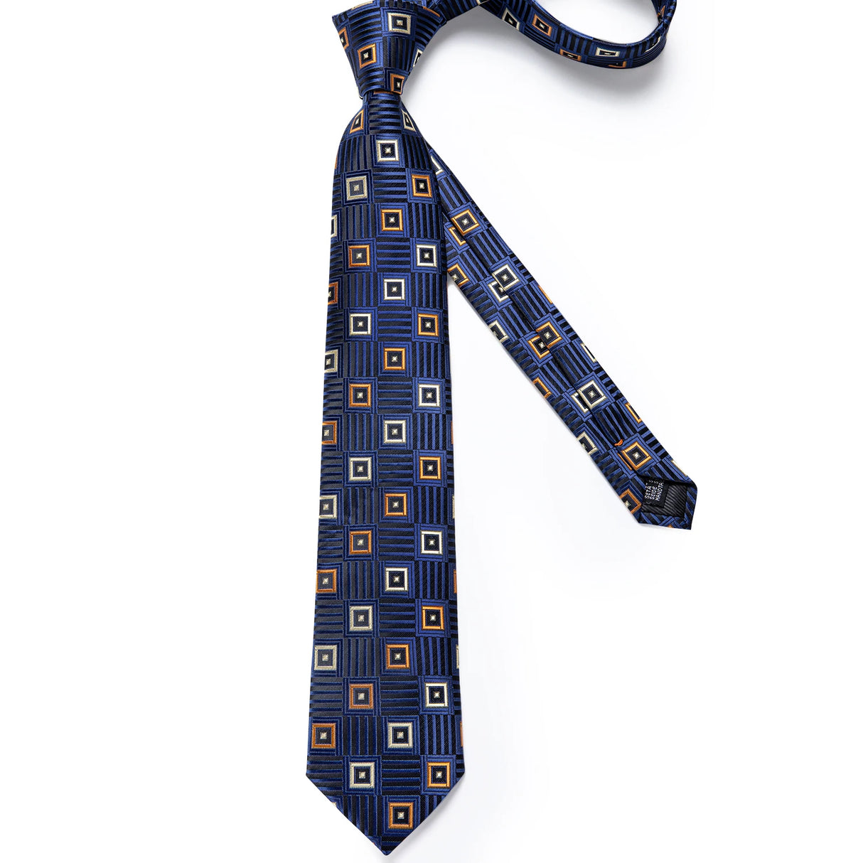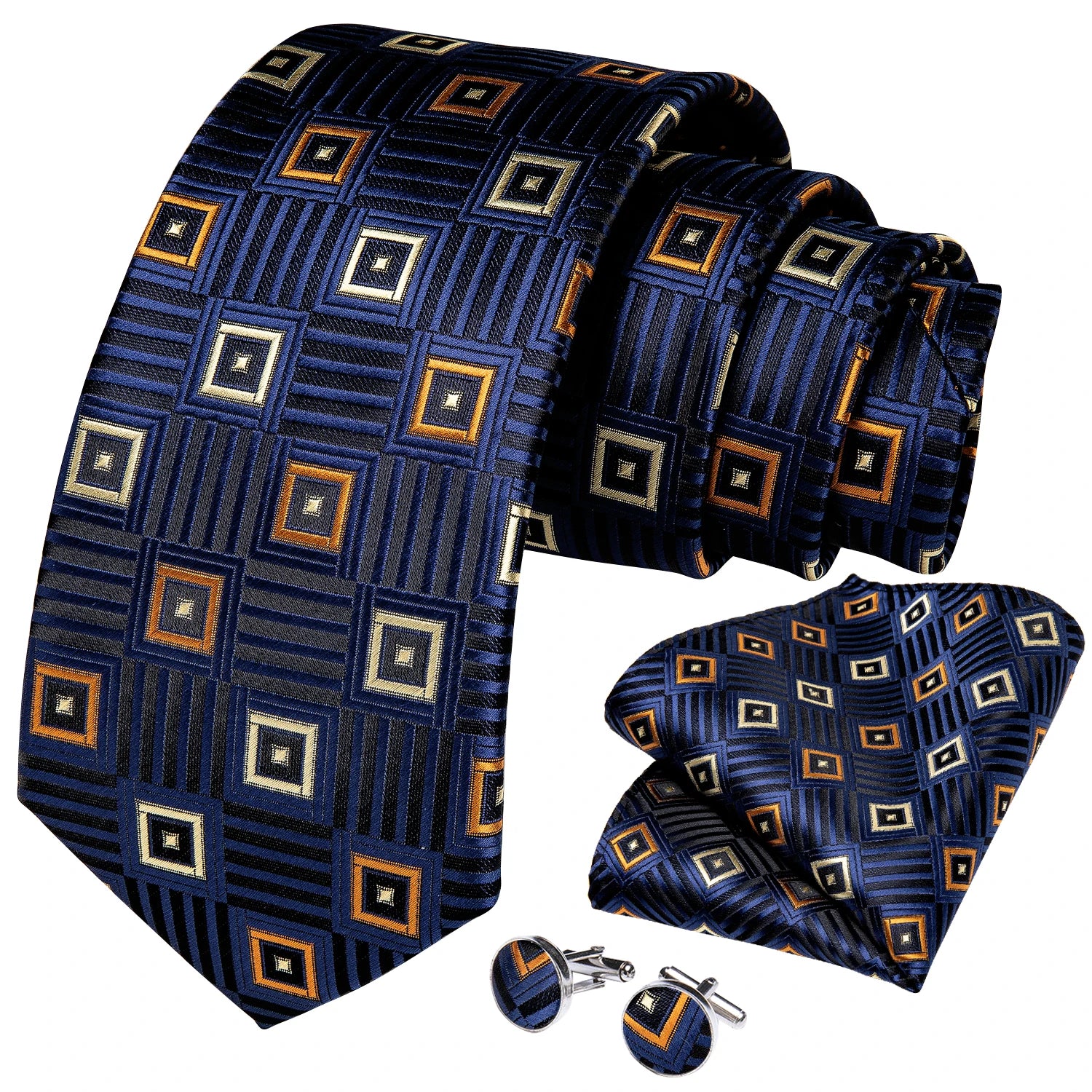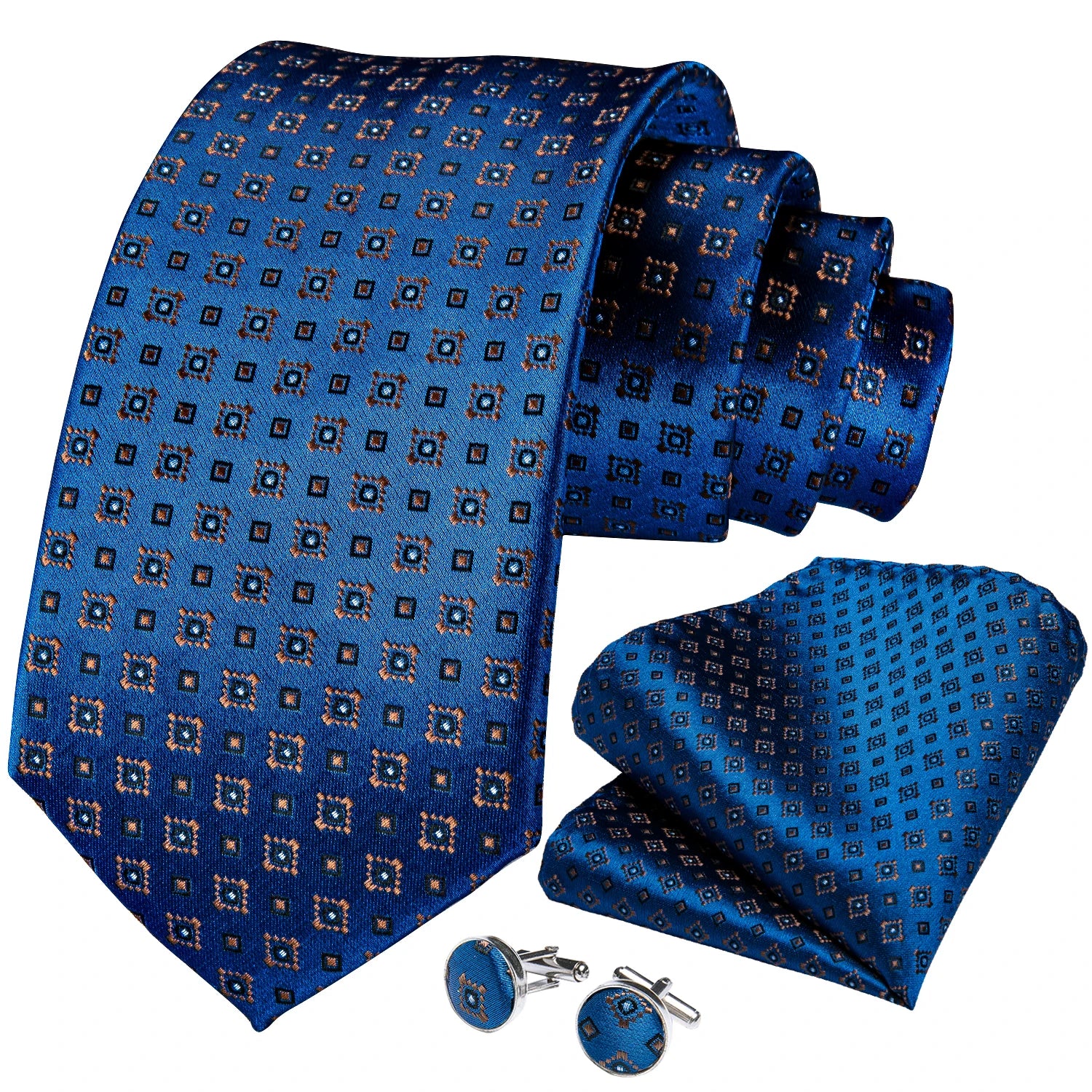 DiBanGu 8cm Blue Plaid Paisley Dot 100% Silk Men Tie Business Formal Wedding Party Necktie Hanky Cufflinks Set Mens Ties Gift - SJT-7706 is backordered and will ship as soon as it is back in stock.