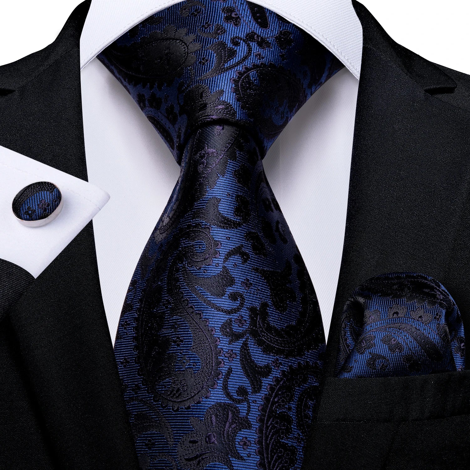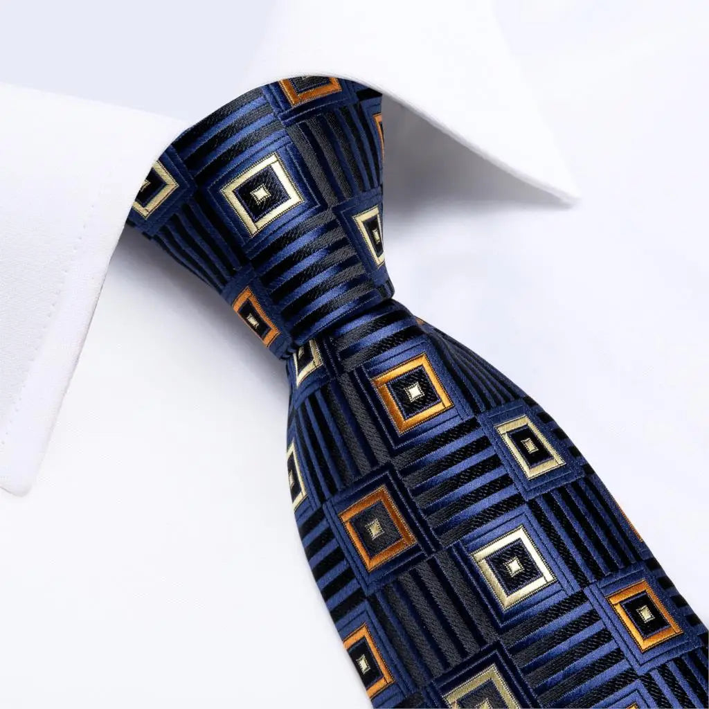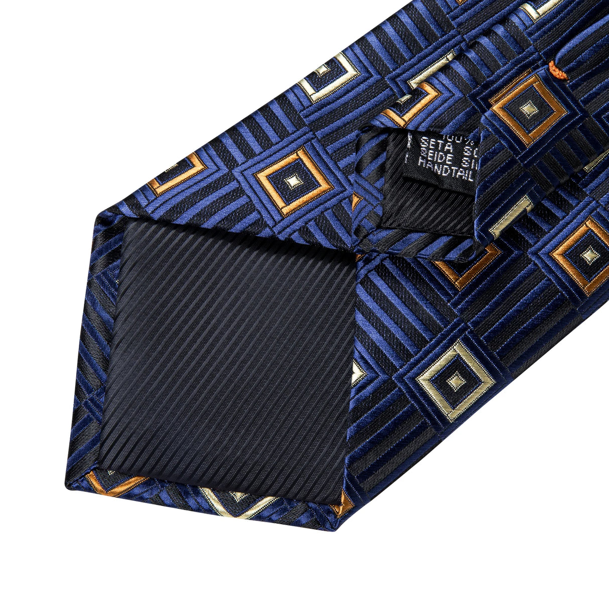 DiBanGu 8cm Blue Plaid Paisley Dot 100% Silk Men Tie Business Formal Wedding Party Necktie Hanky Cufflinks Set Mens Ties Gift - SJT-7706 is backordered and will ship as soon as it is back in stock.
