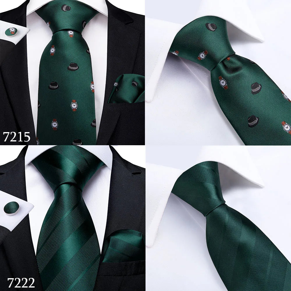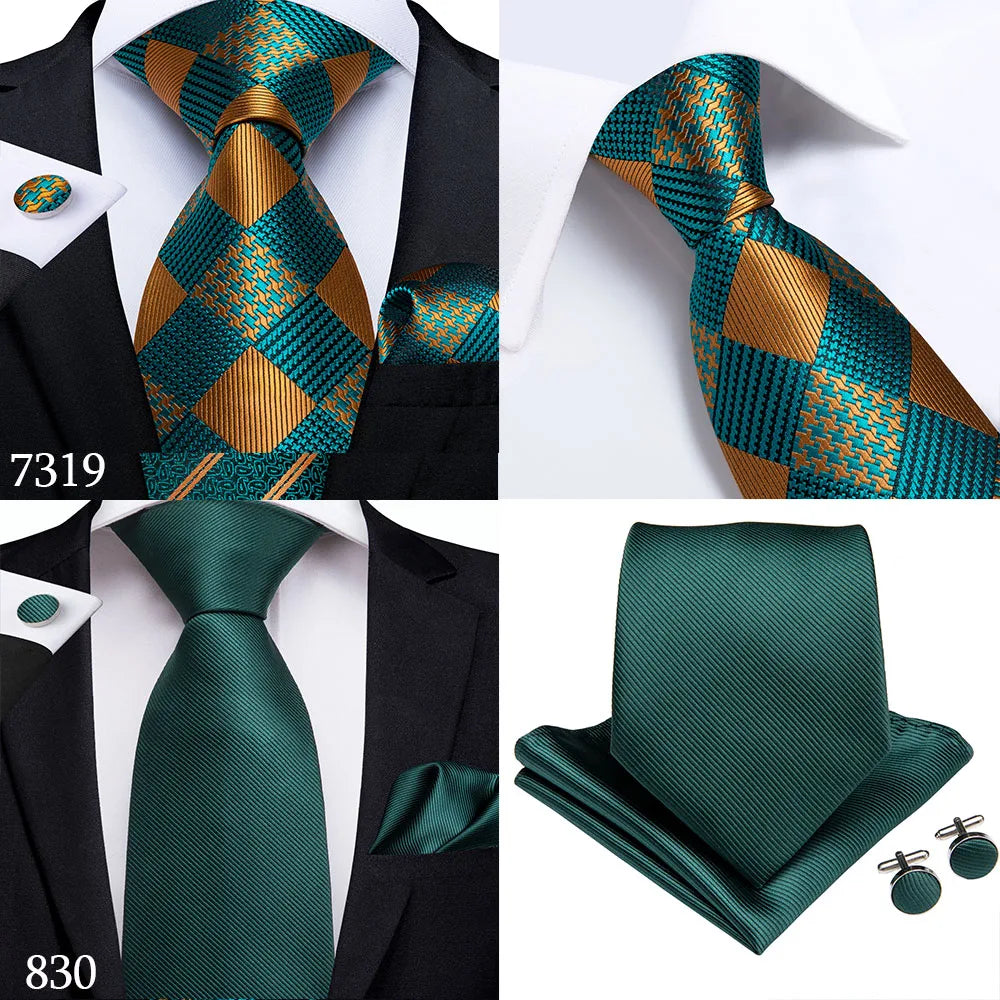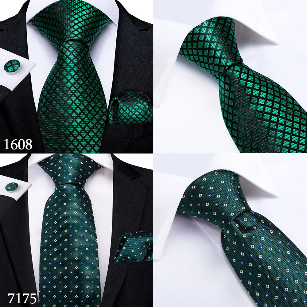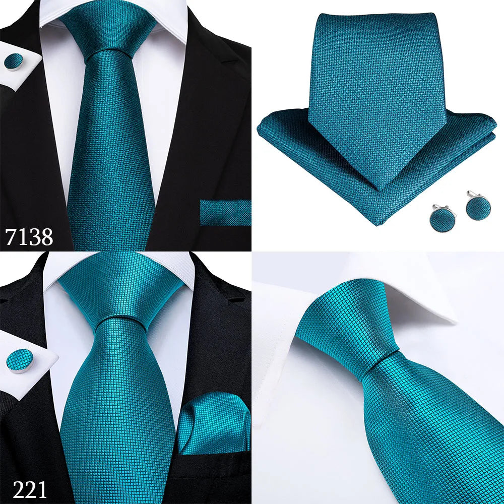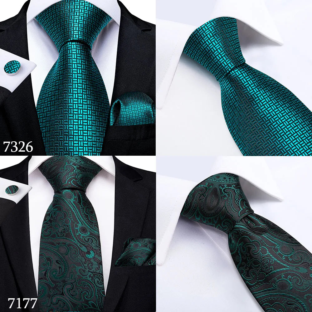DiBanGu Green Teal Ties For Men Hanky Cufflinks Set 17 Styles Necktie For Male Business Wedding Party Mens Ties New Arrival Tie