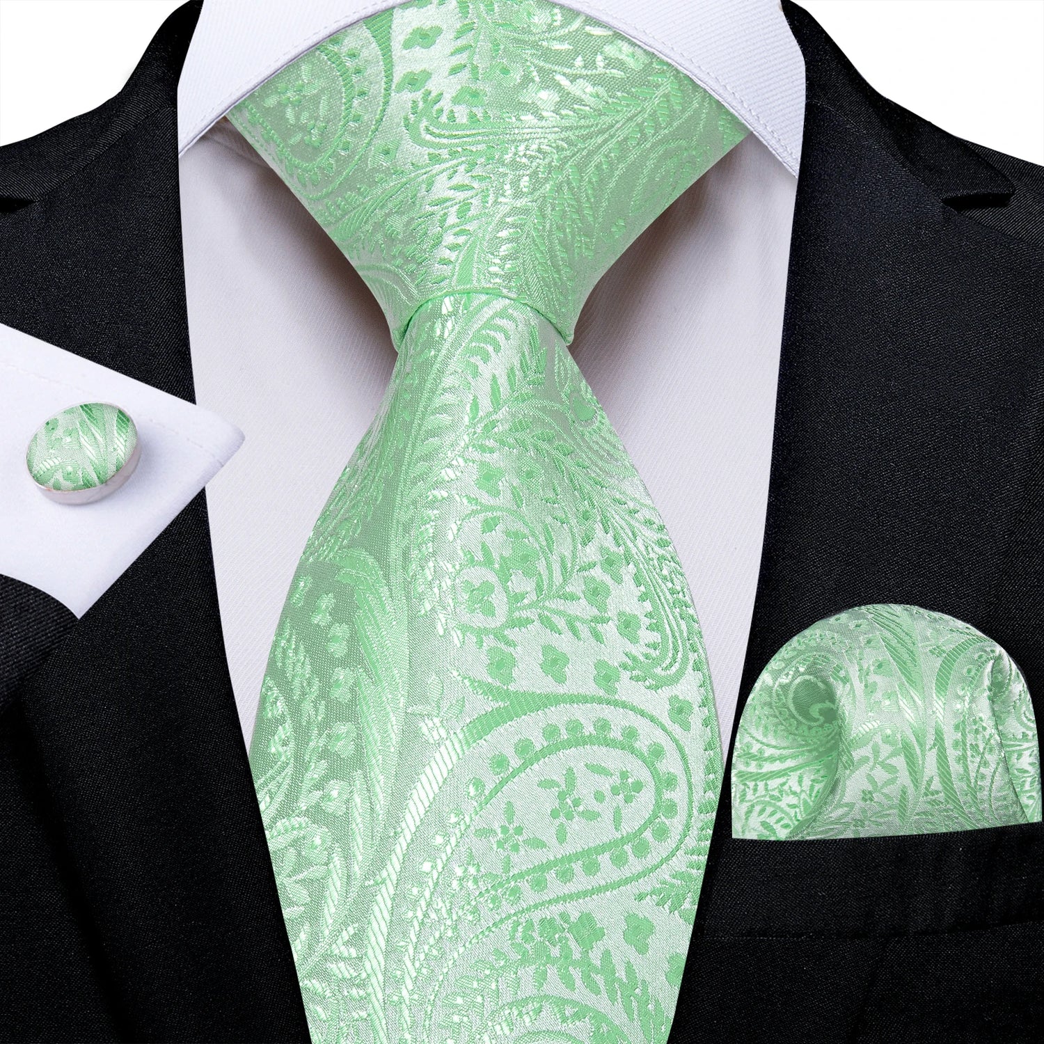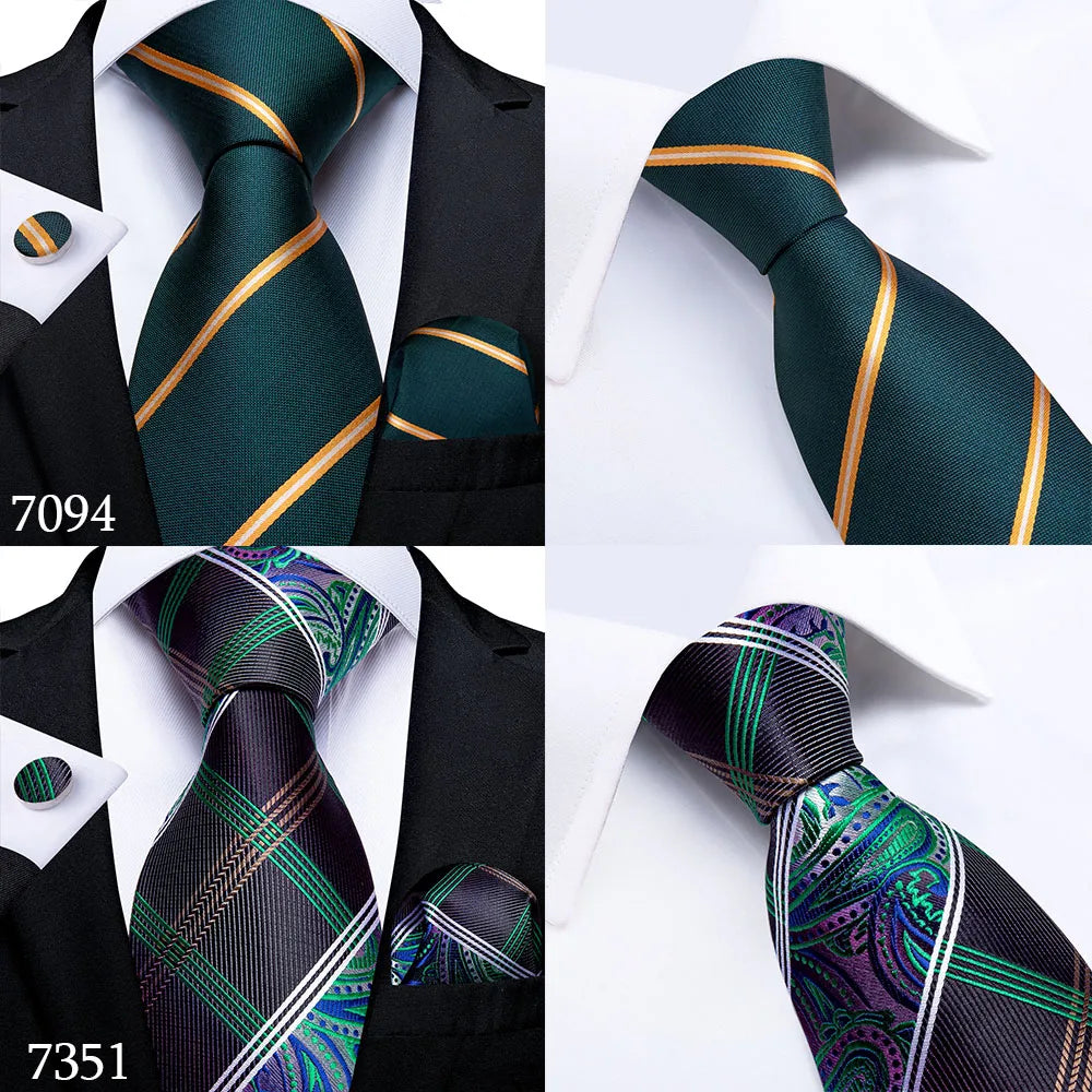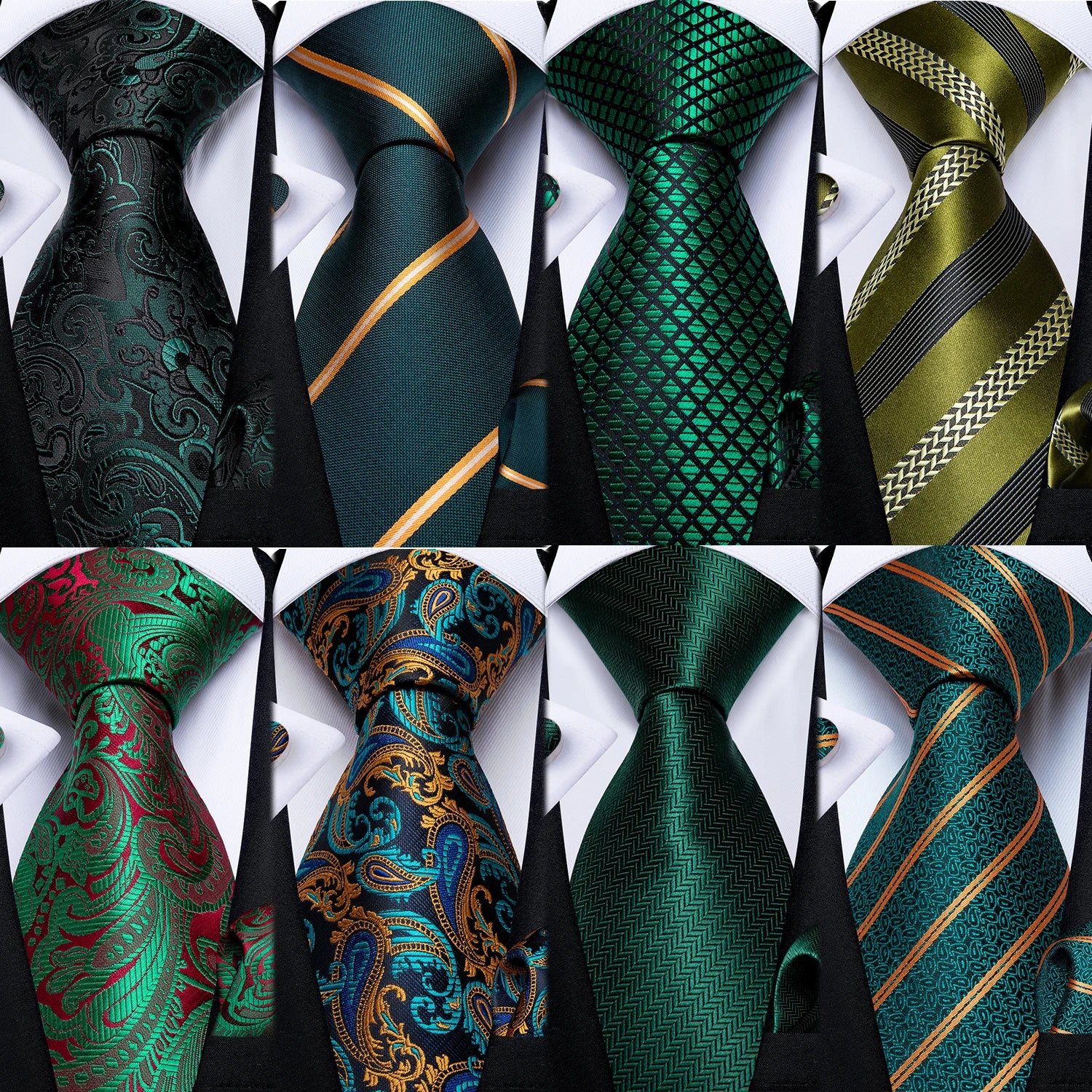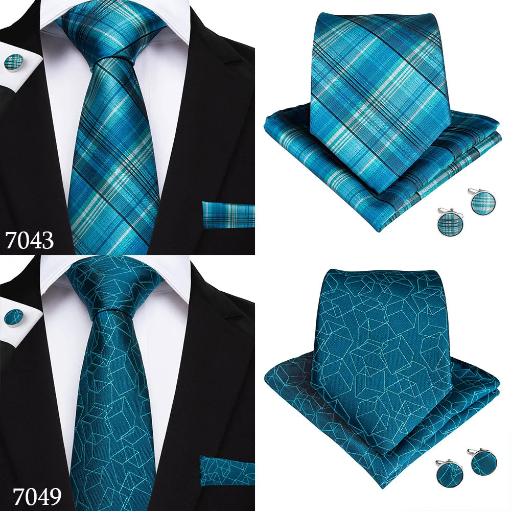 DiBanGu Green Teal Ties For Men Hanky Cufflinks Set 17 Styles Necktie For Male Business Wedding Party Mens Ties New Arrival Tie