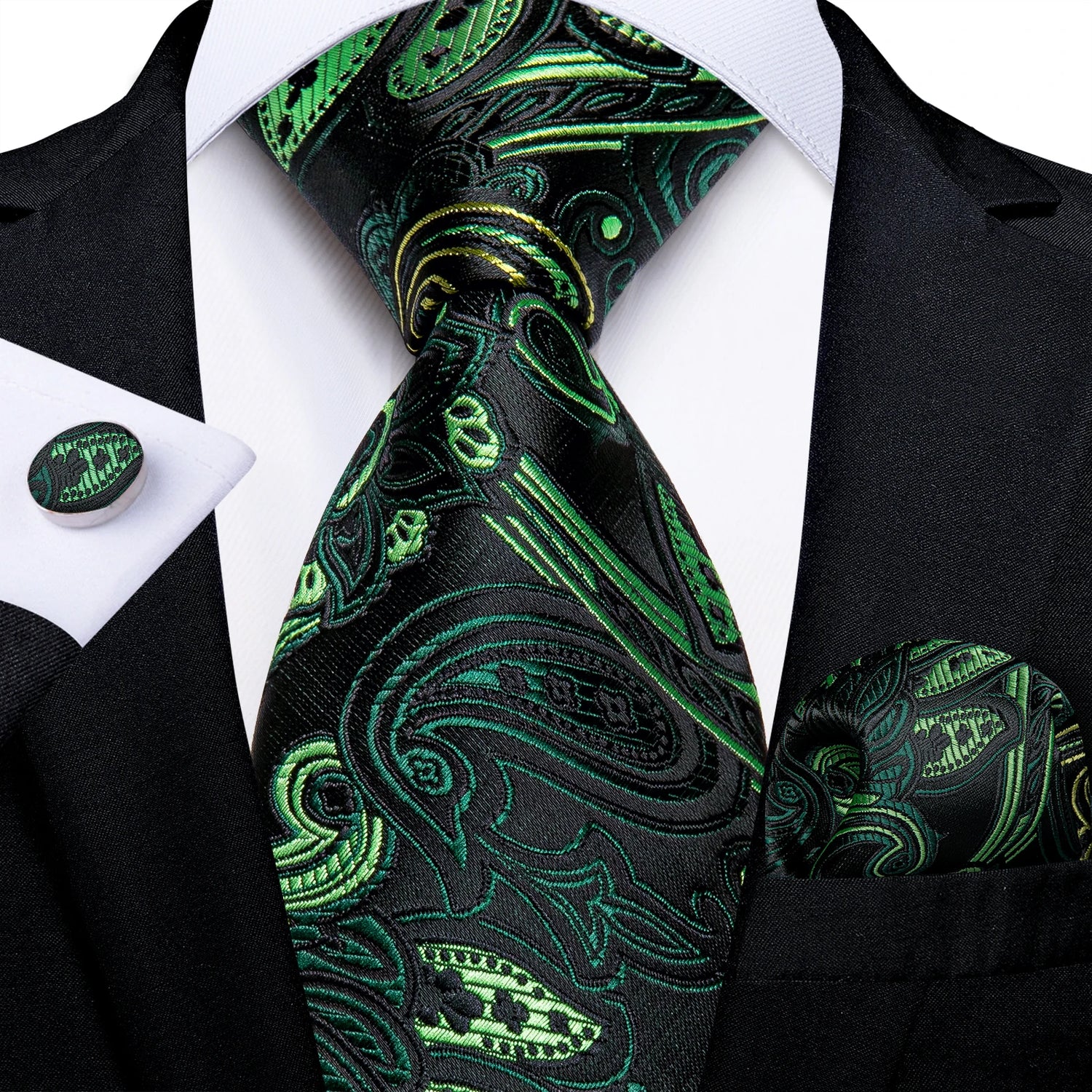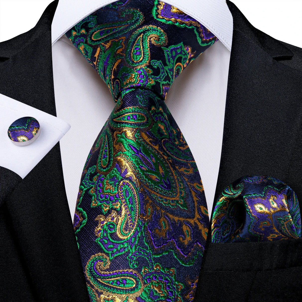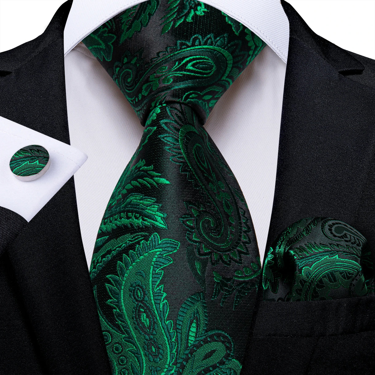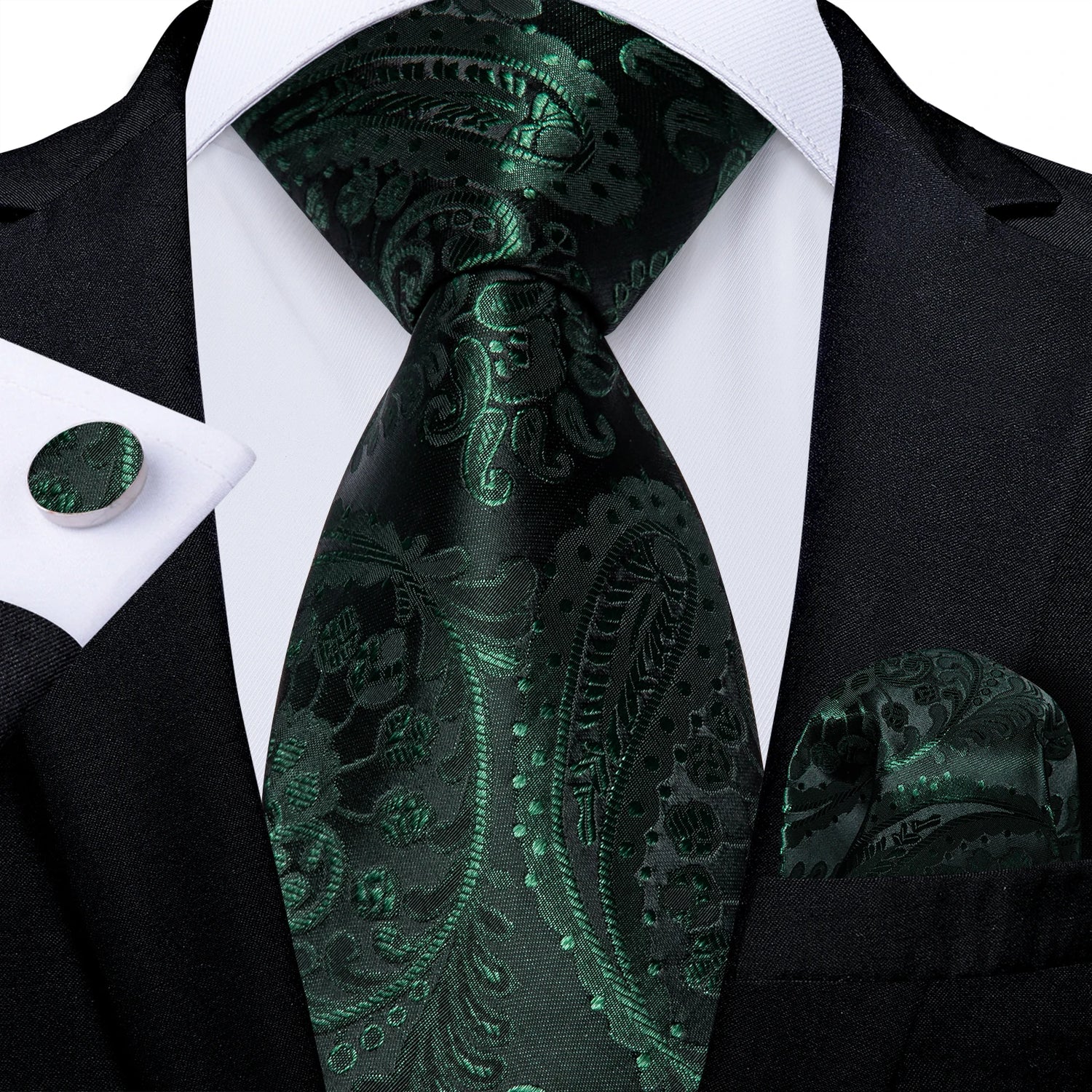 DiBanGu Green Teal Ties For Men Hanky Cufflinks Set 17 Styles Necktie For Male Business Wedding Party Mens Ties New Arrival Tie