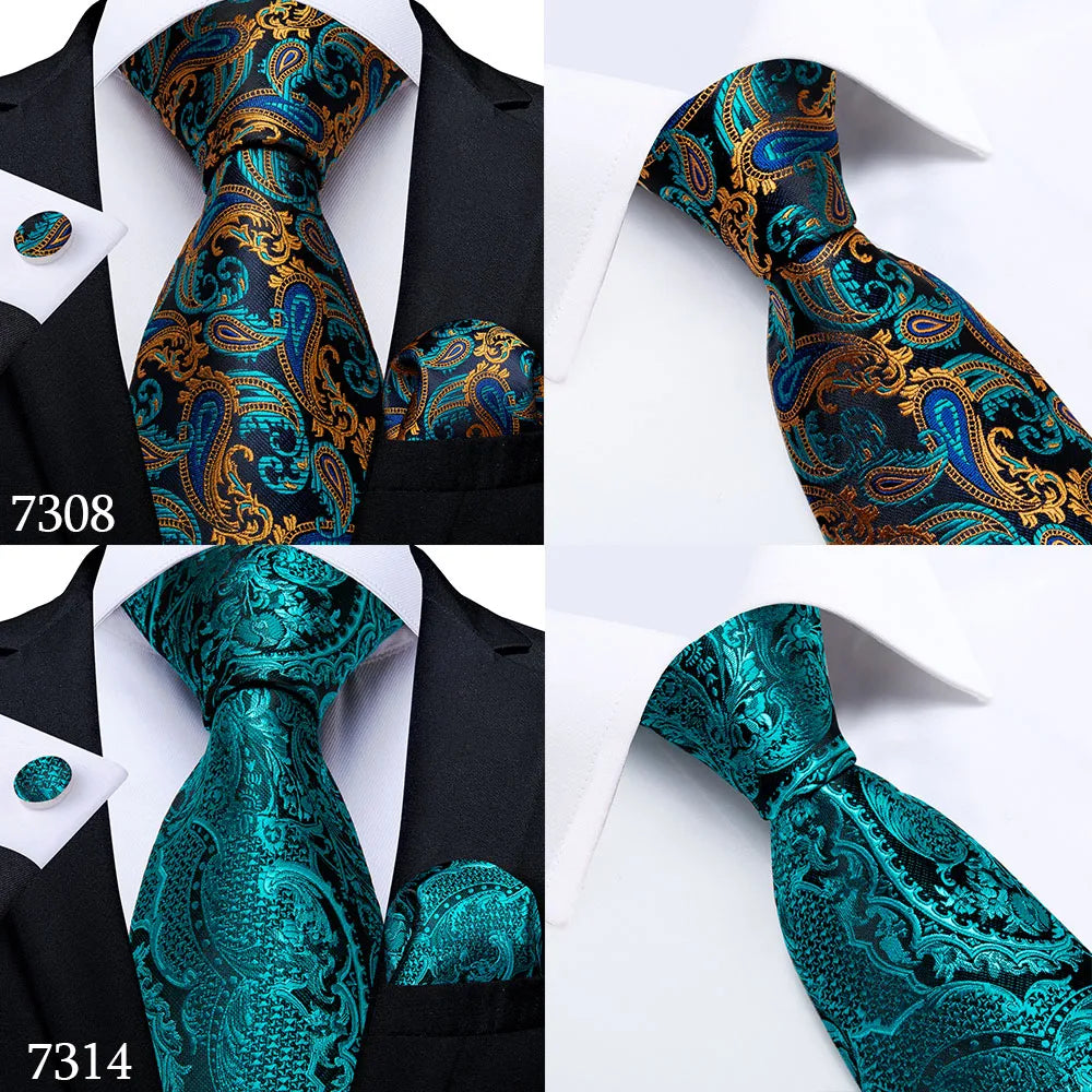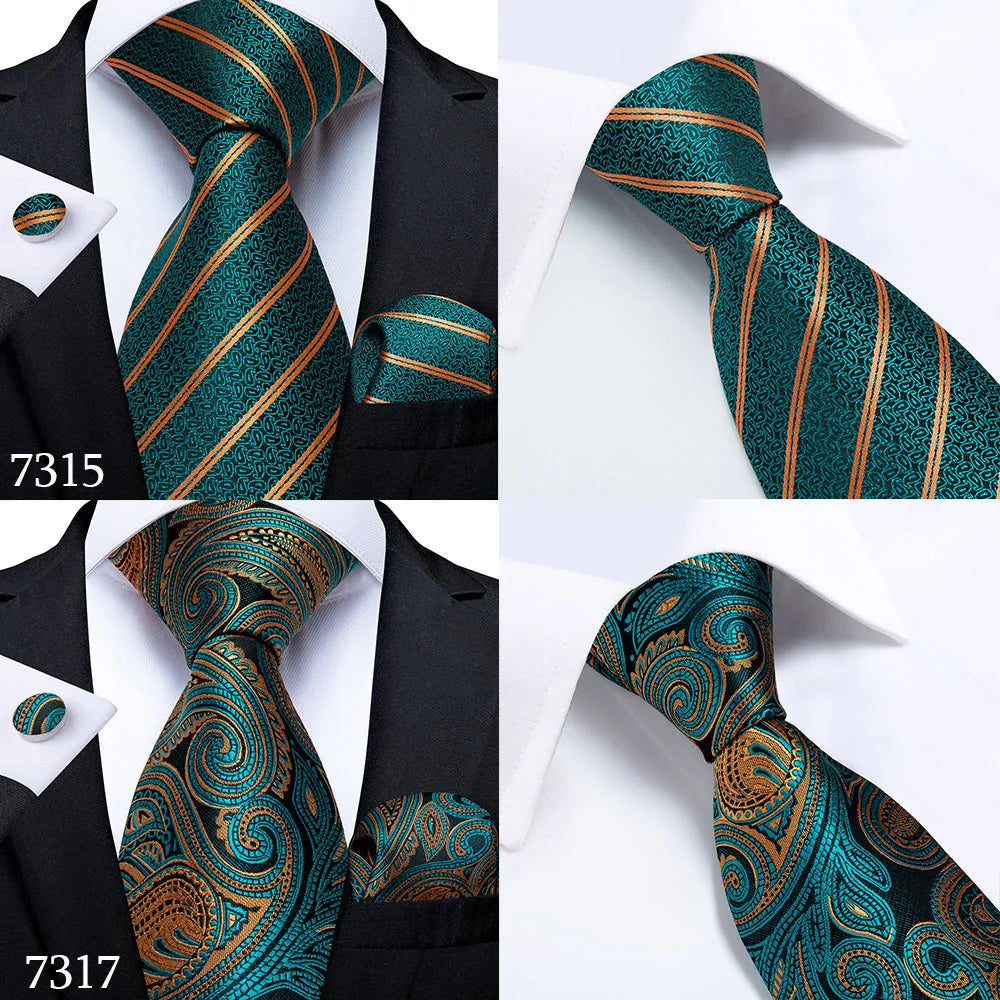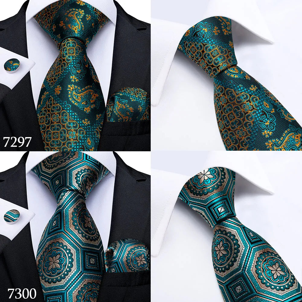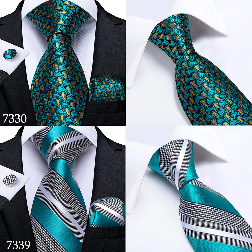 DiBanGu Green Teal Ties For Men Hanky Cufflinks Set 17 Styles Necktie For Male Business Wedding Party Mens Ties New Arrival Tie - MJ-8380 is backordered and will ship as soon as it is back in stock.