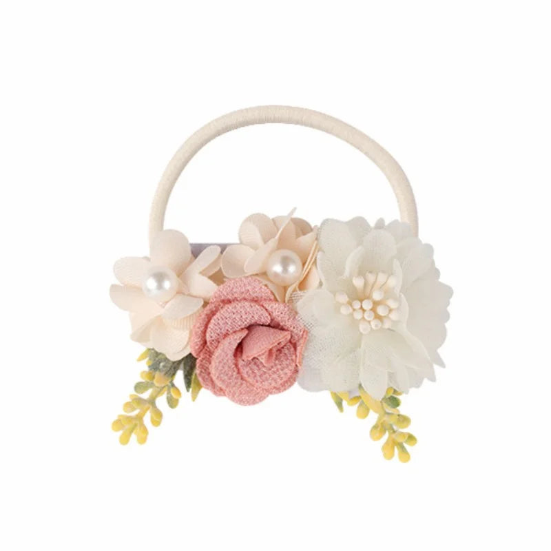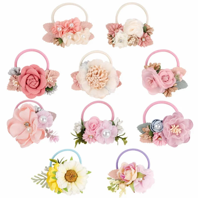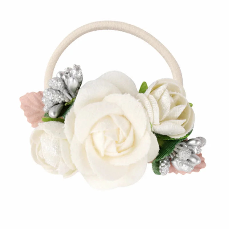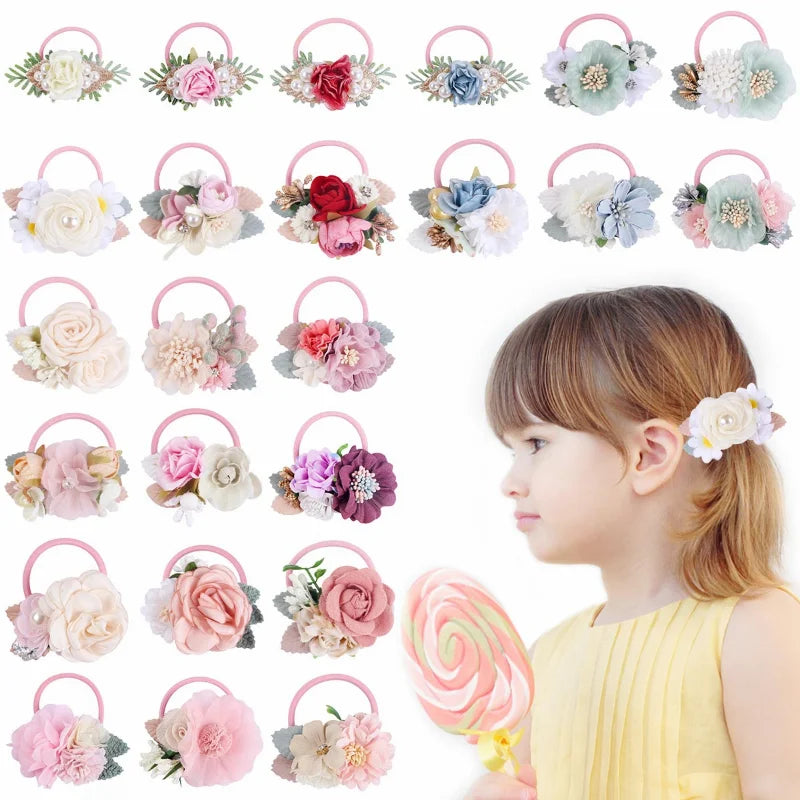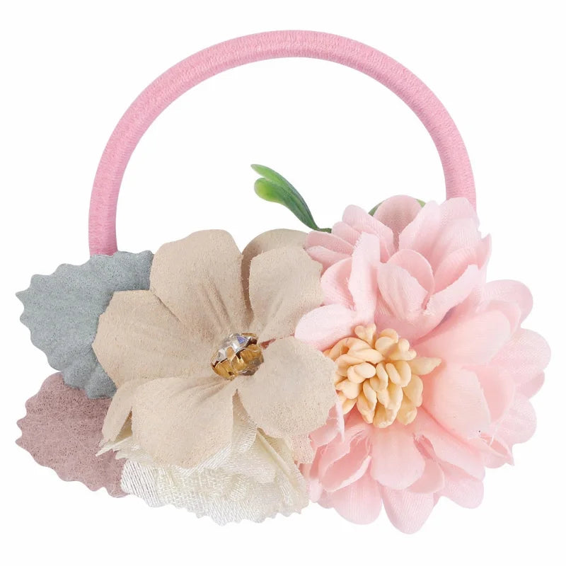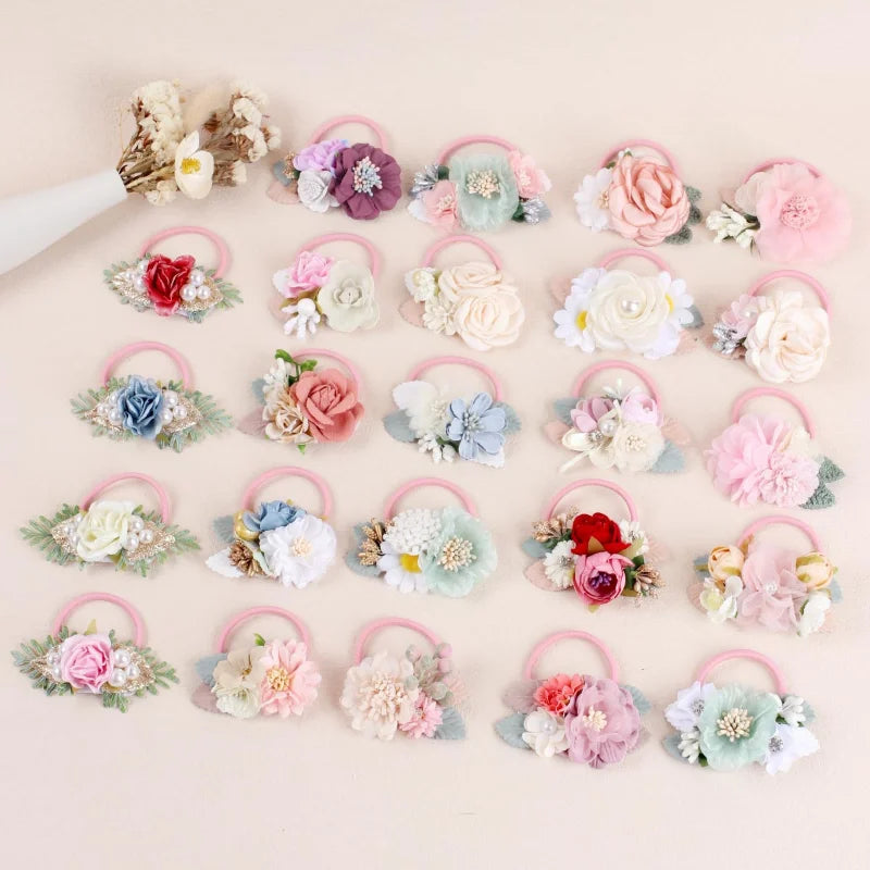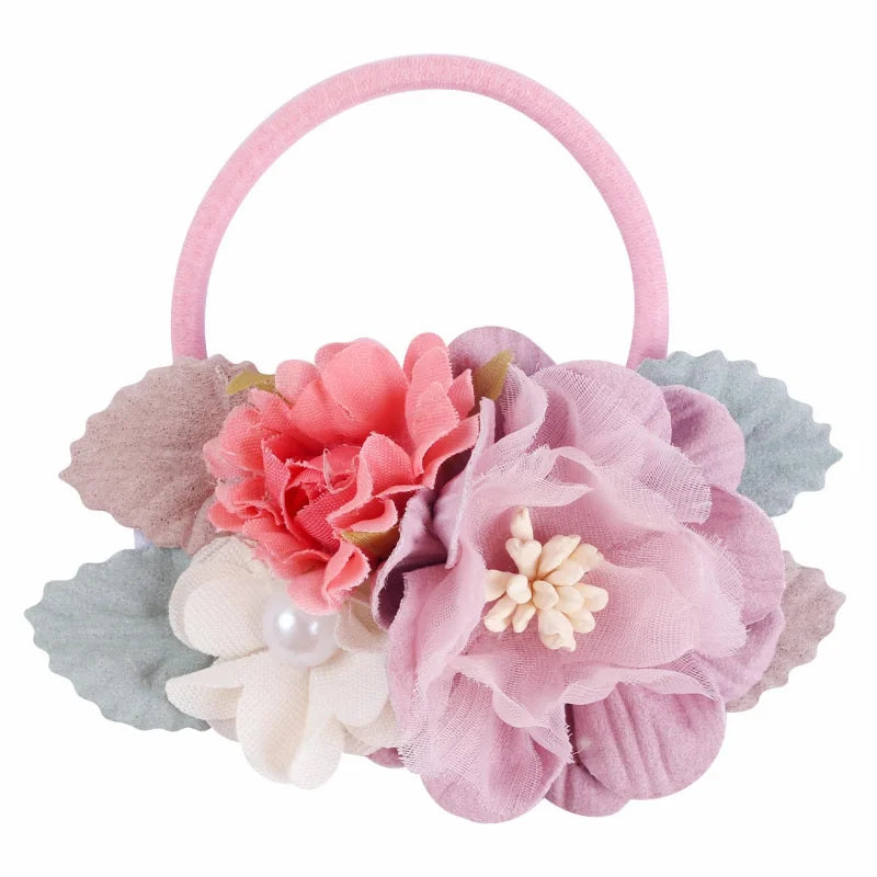 Handmade Flower Elastics Hair Ties For Kids Girls Stretchy Rubber Hairband Slim Headband Scrunchies Ponytail Holder Ring Loop