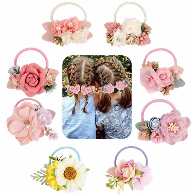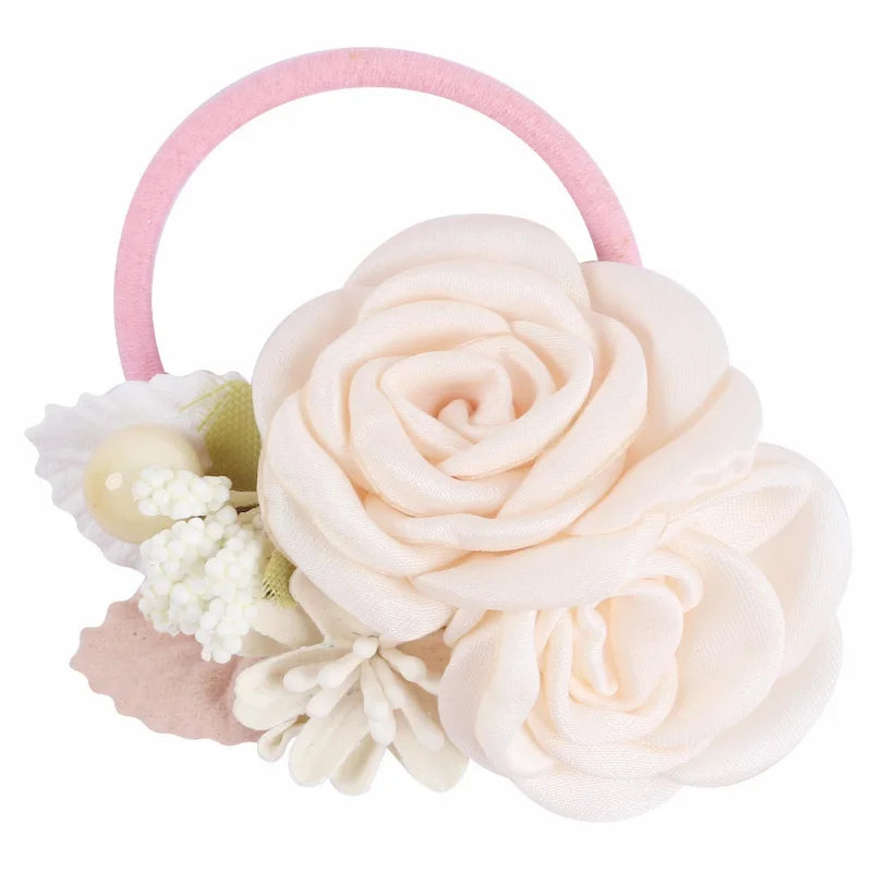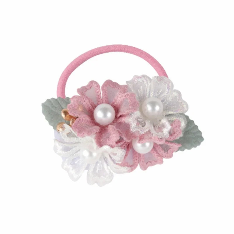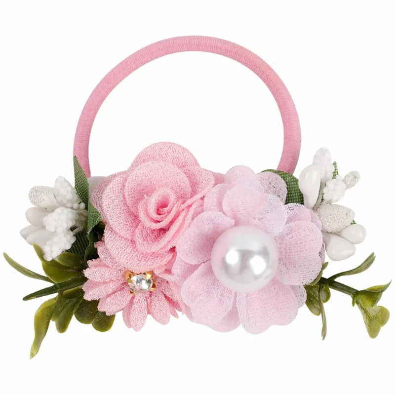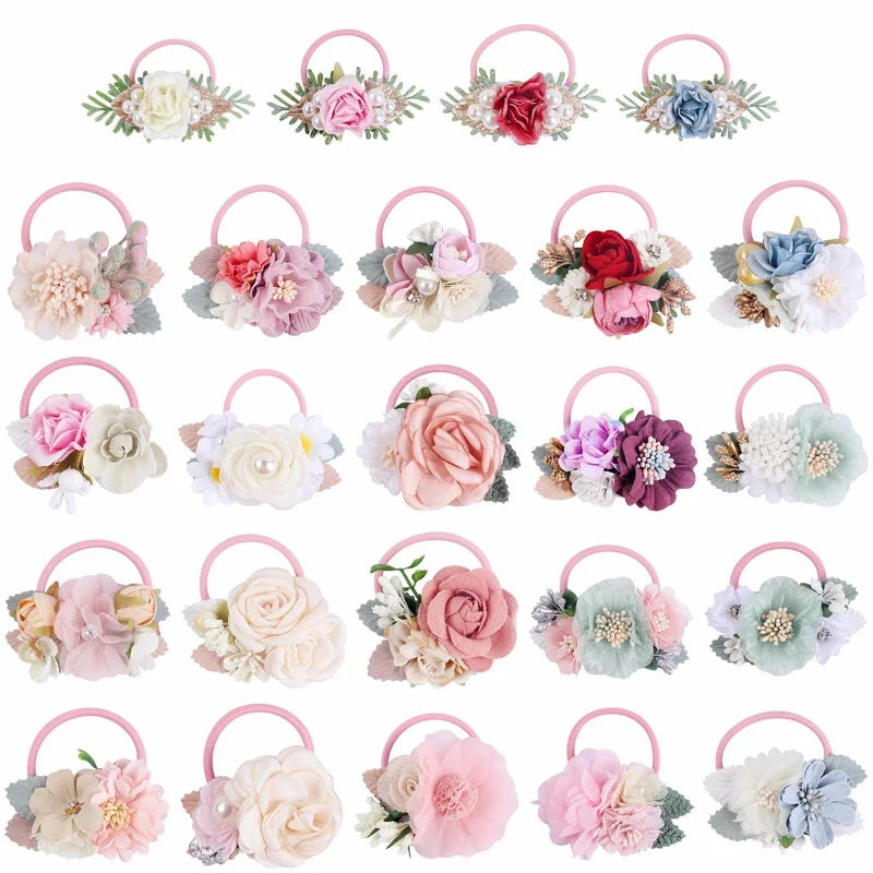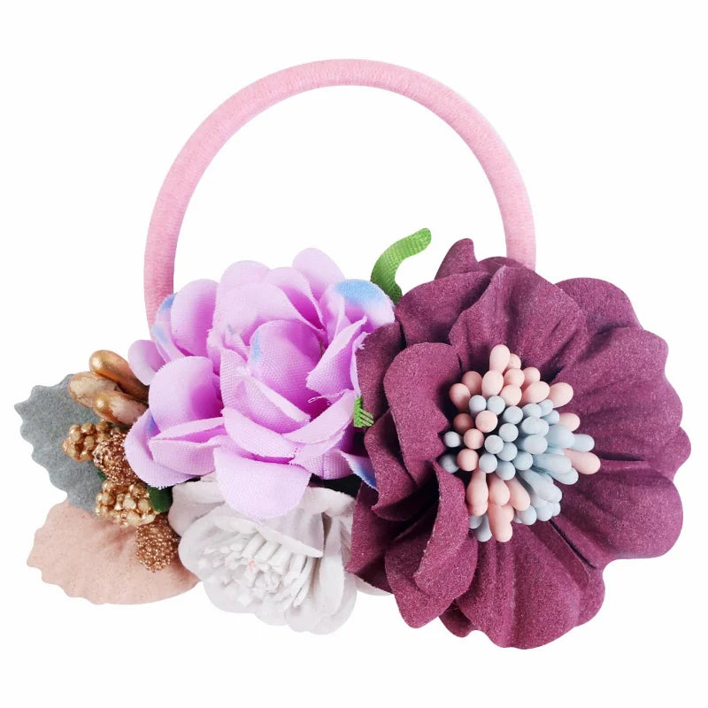 Handmade Flower Elastics Hair Ties For Kids Girls Stretchy Rubber Hairband Slim Headband Scrunchies Ponytail Holder Ring Loop