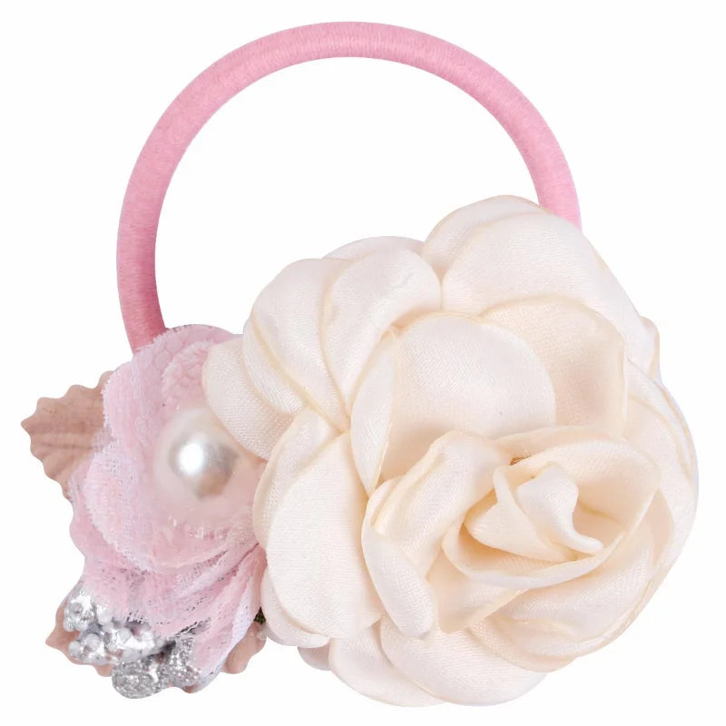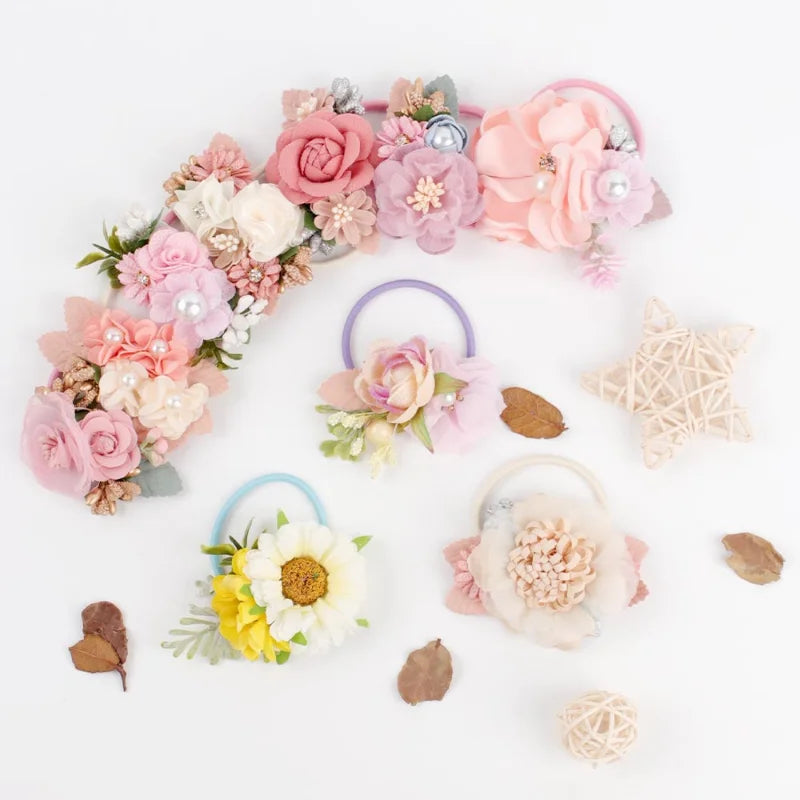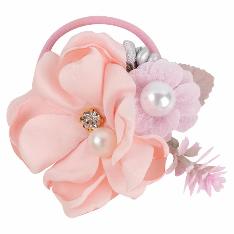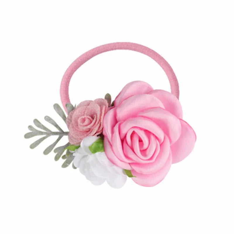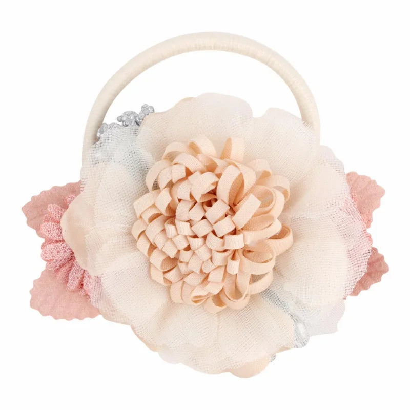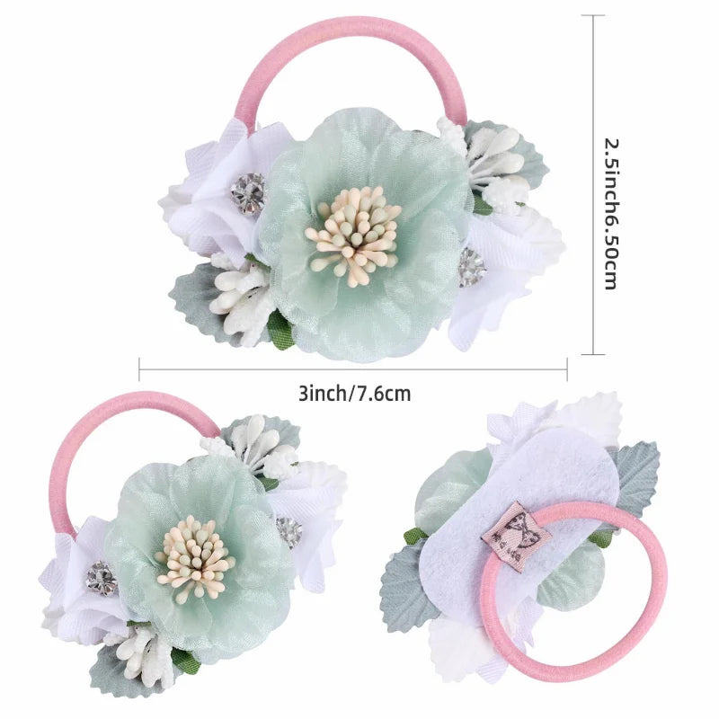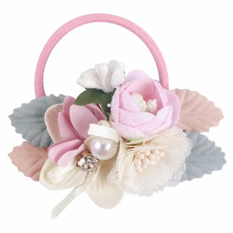 Handmade Flower Elastics Hair Ties For Kids Girls Stretchy Rubber Hairband Slim Headband Scrunchies Ponytail Holder Ring Loop