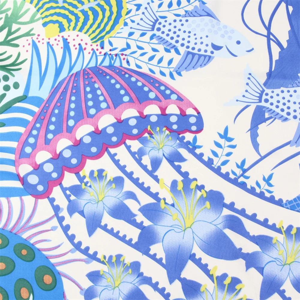 POBING Silk Scarf Women Large Shawls Ocean World Print Stoles Square Bandana Luxury Kerchief Hijab Female Foulards 130CM