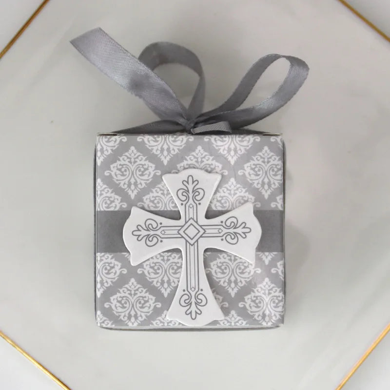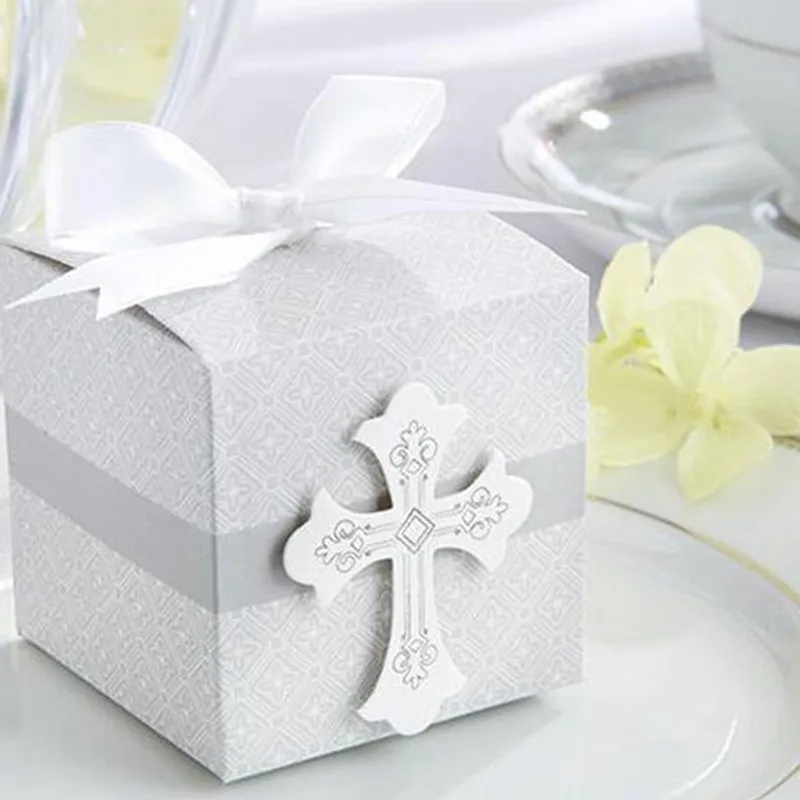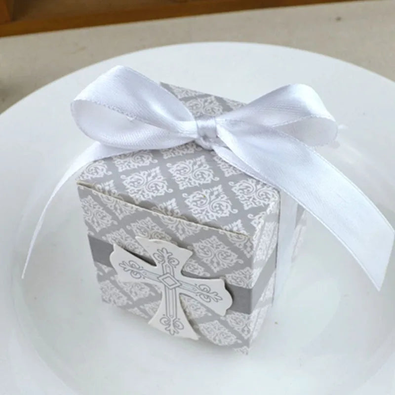 first Communion cross candy box Christening baby shower wedding party bomboniere wrap holders with ribbons