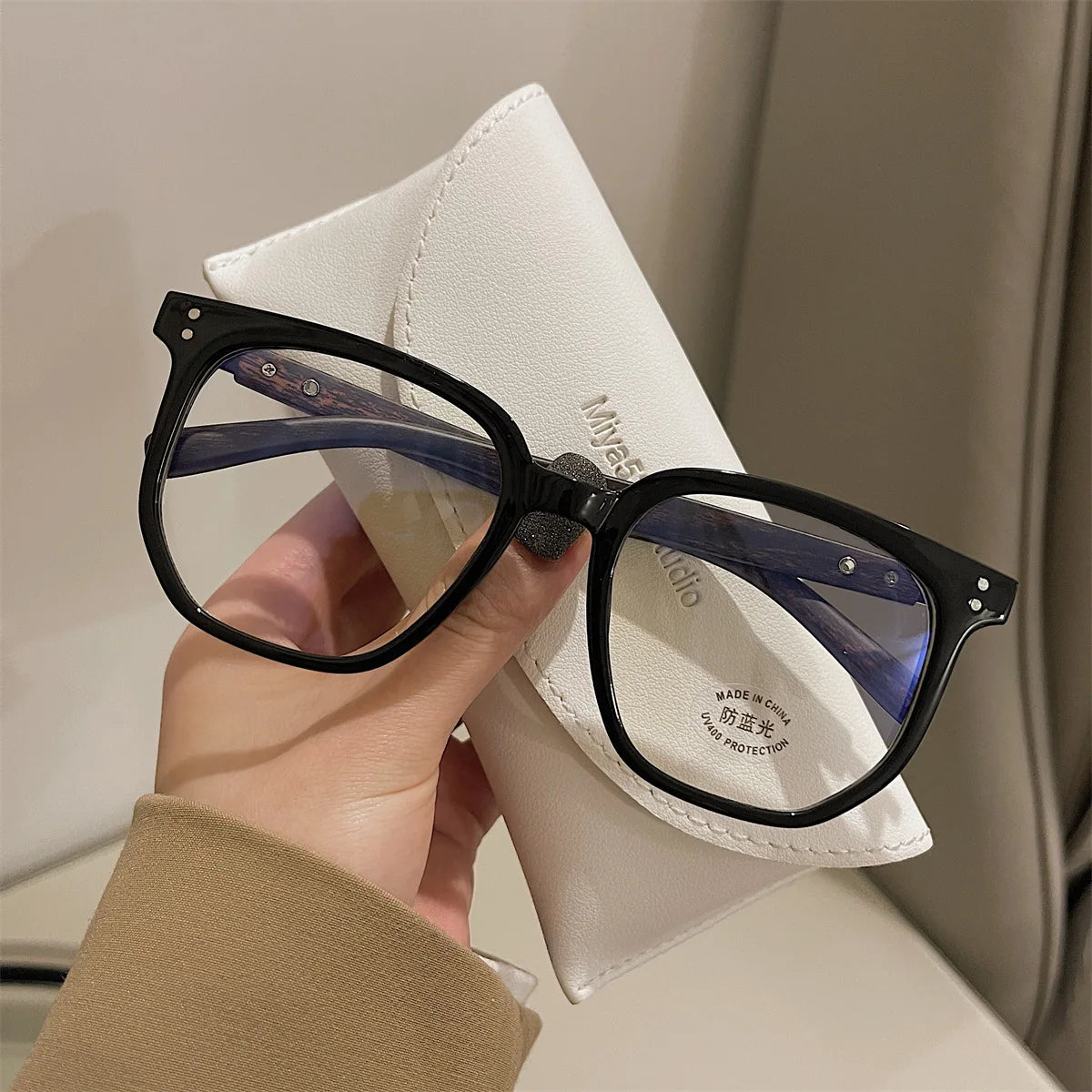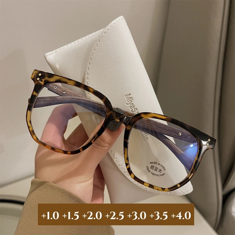 Luxury Blue Light Blocking Reading Glasses Women Men Wooden Legs Presbyopia Eyeglasses HD Lens Farsighted Eyewear with Diopter
