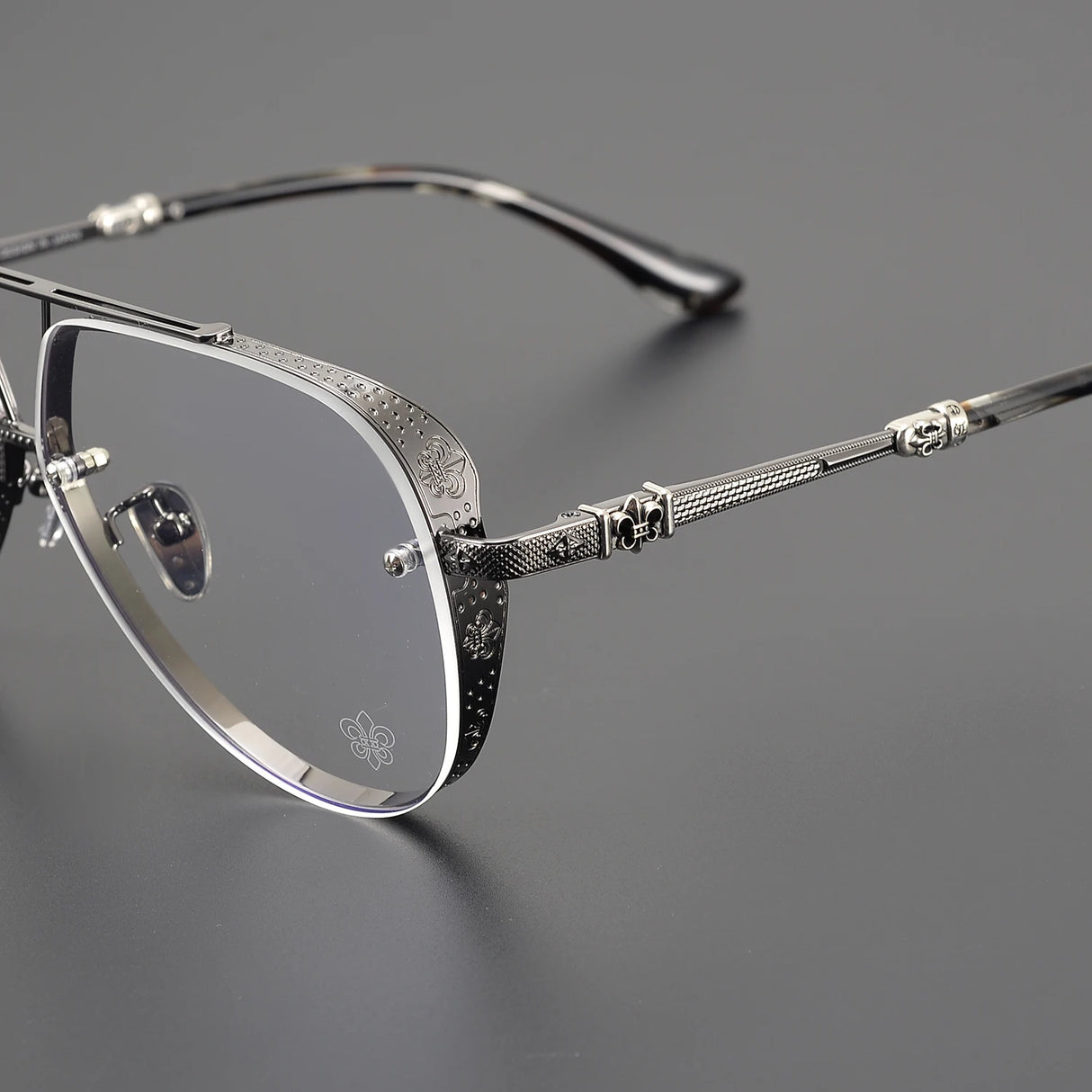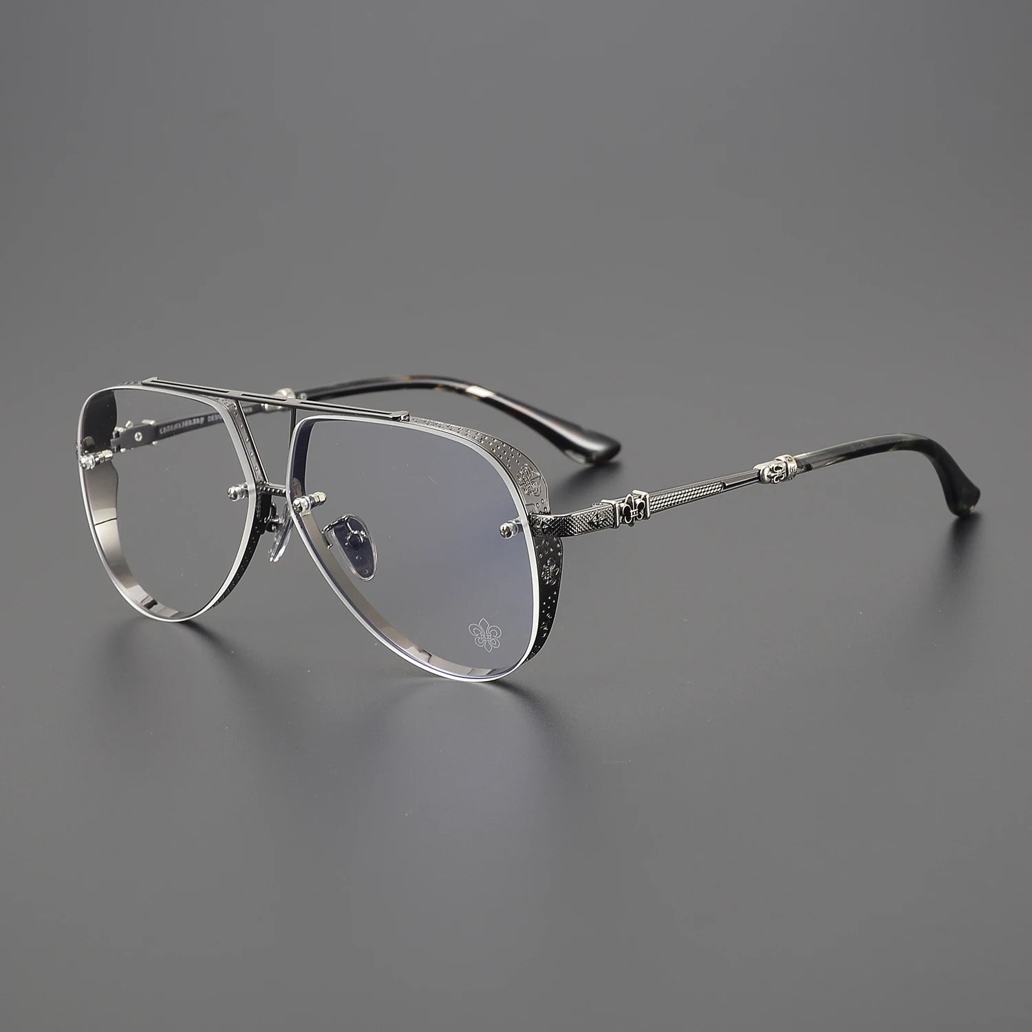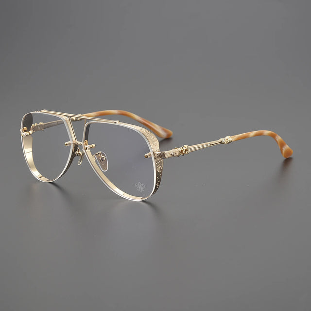 Anti Blue Light Lenses Titanium Eyeglass Frame Rectangular Full Frame Fashionable Carved Optical Prescription Glasses Unisex