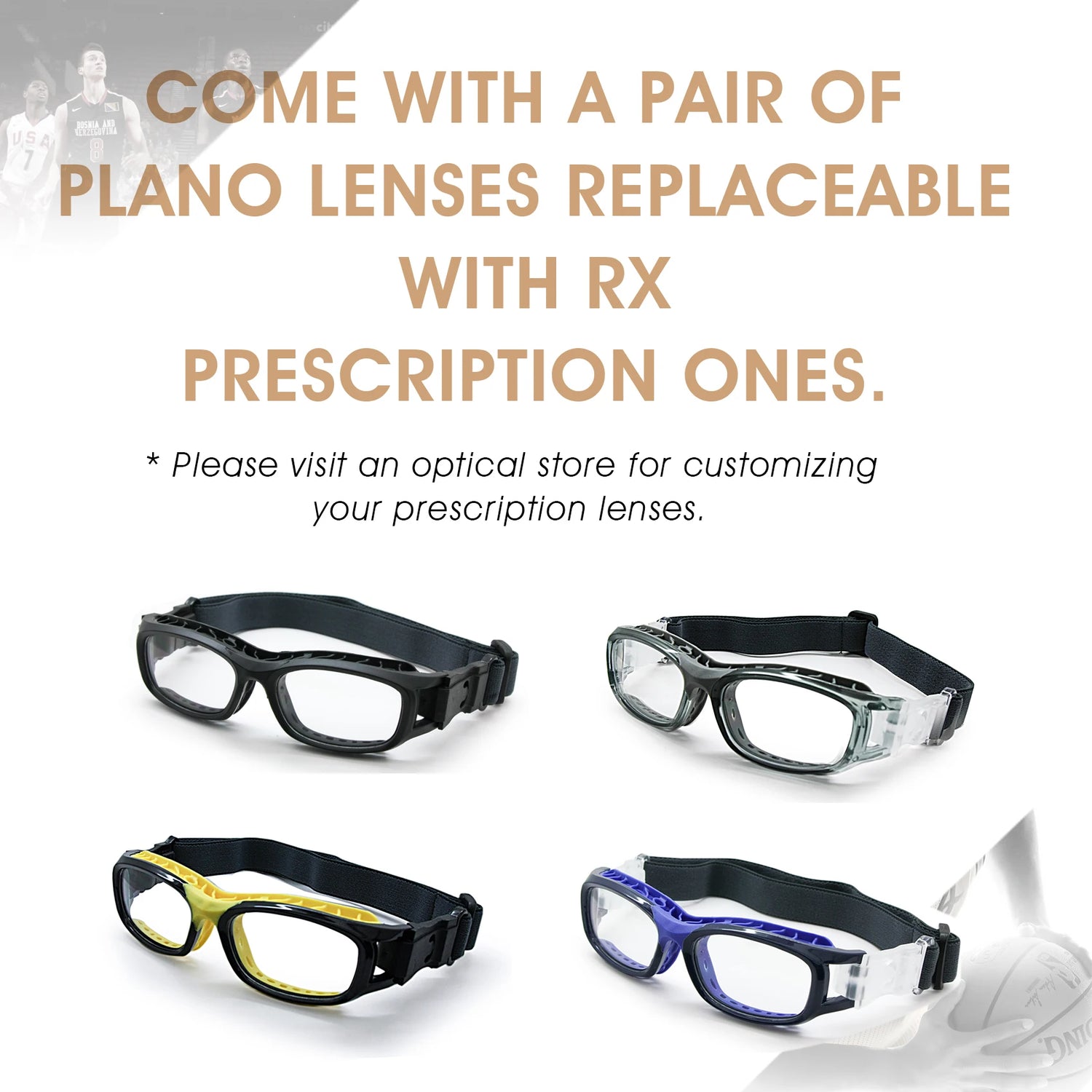 Usage: Basketball, volleyball, soccer, team sports, lens replacable with prescription ones