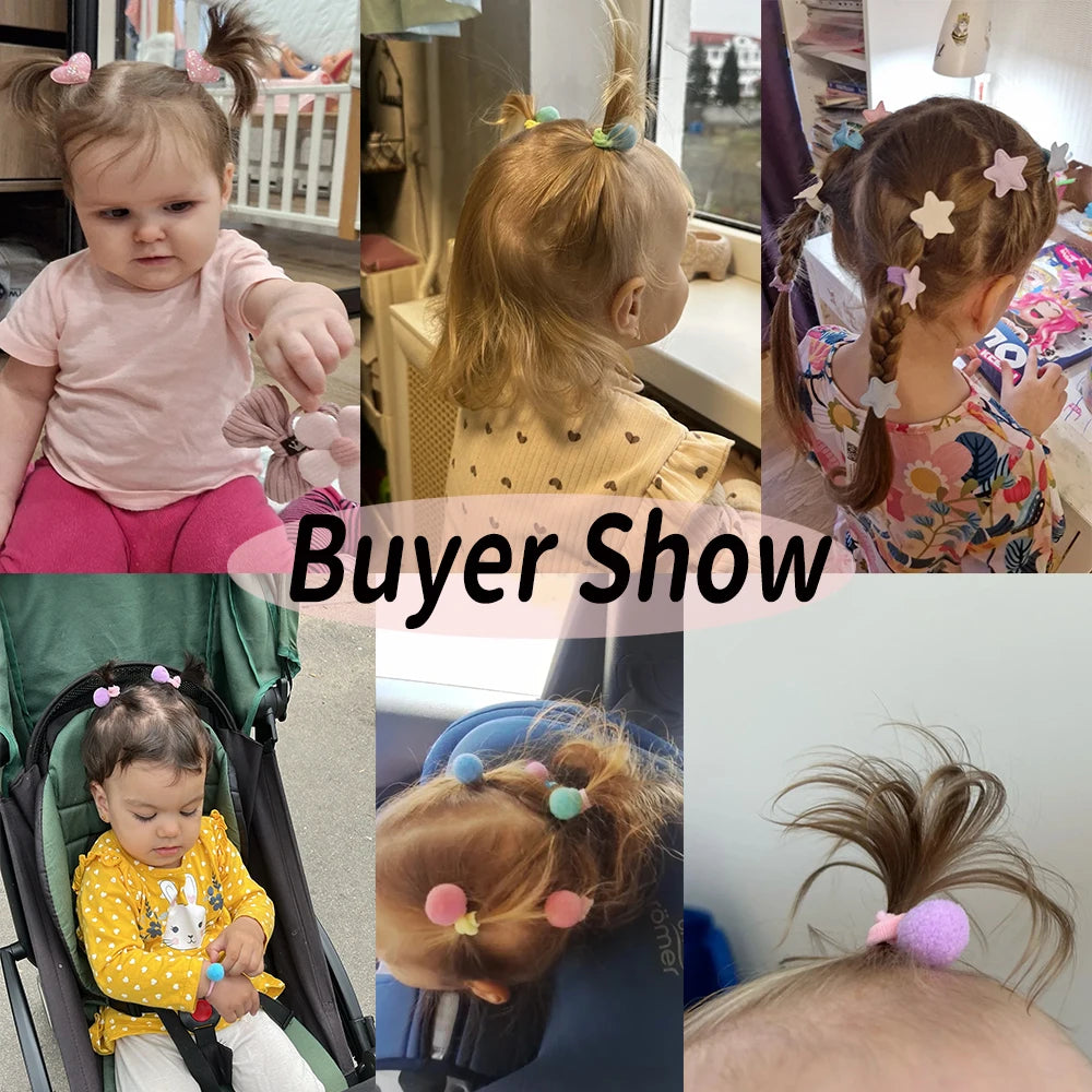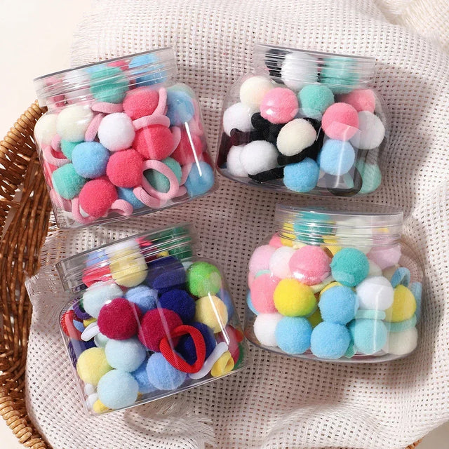 20pcs Kids Elastic Hair Bands Girls Plush Ball Rubber Band For Children Sweets Scrunchie Hair Ties Clip Baby Hair Accessories