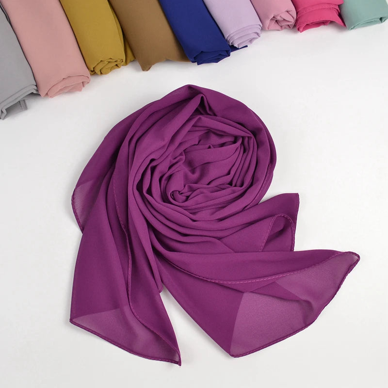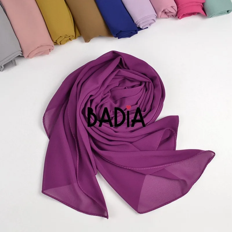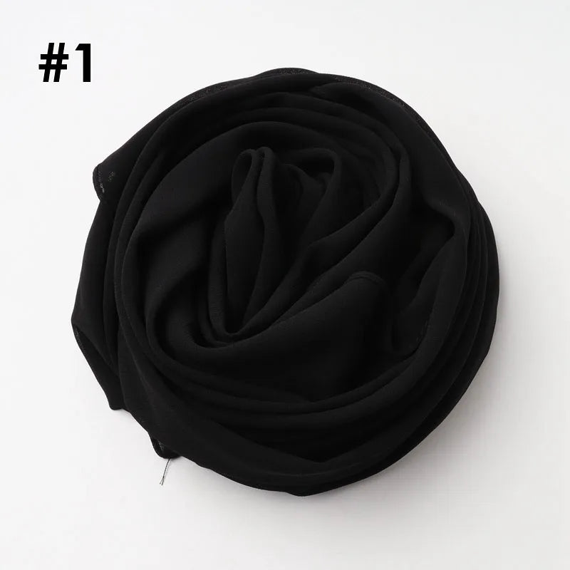 70*180cm One Piece High Quality Hot Women Muslim Solid Plain Chiffon Hijabs Long Georgette Shawls Islamic Headwear Wraps Scarves