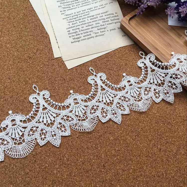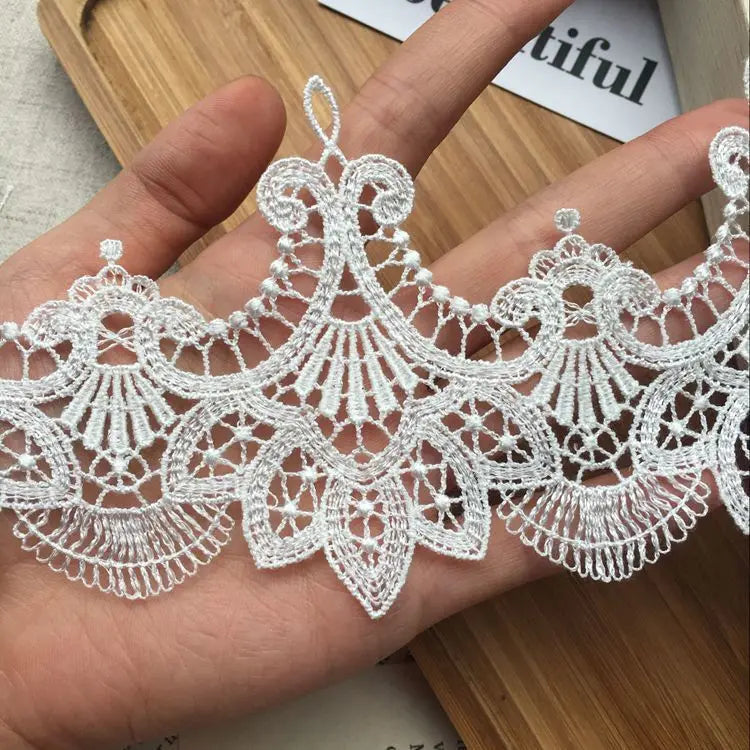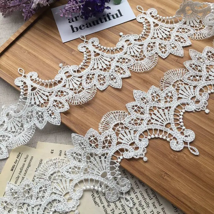 8.5CM Wide Luxury White Water Soluble Lace Exquisite Embroidered Ribbons Collar Applique Trim Curtains Dress DIY Sewing Supplies