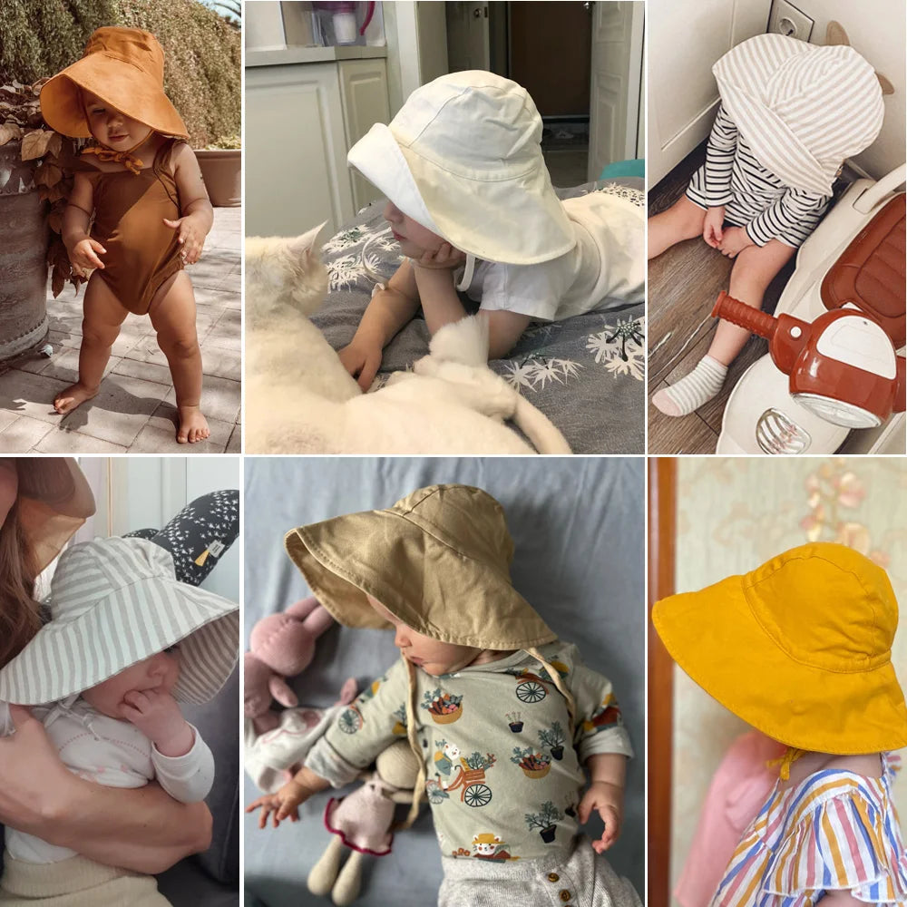Big Brim Baby Sun Hat Summer Spring Kids Bucket Hat for Girls Boys Cotton Linen Children Cap Beach Travel Kids Hats Caps 2M-4Y