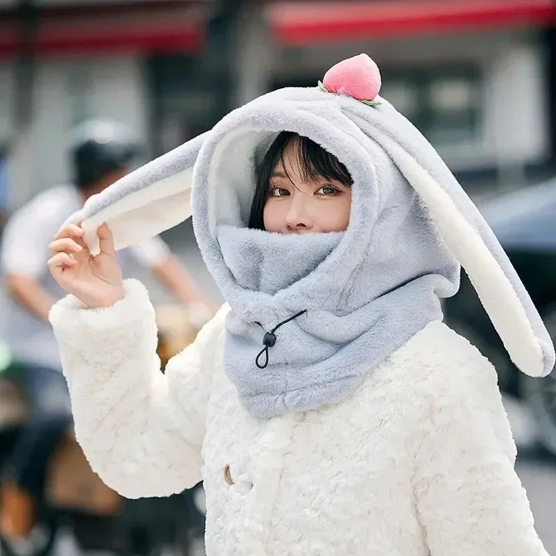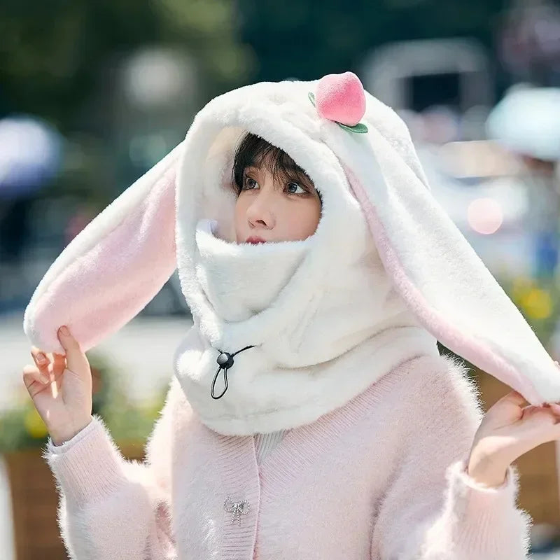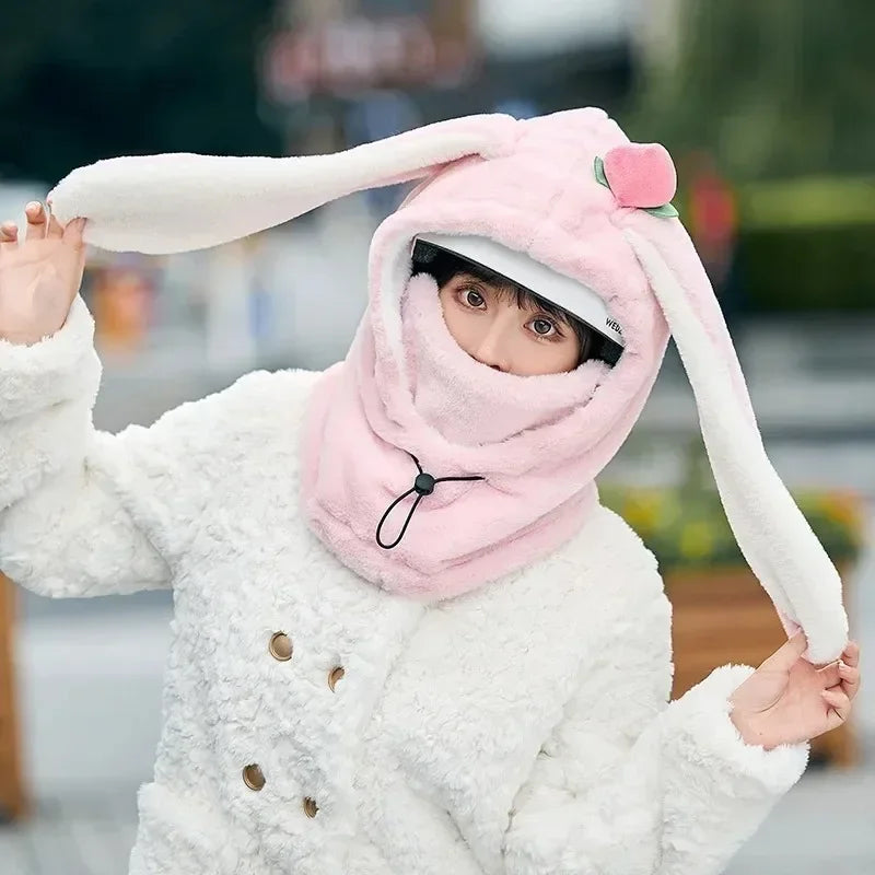Cartoon Rabbit Ear Ski Helmet Cover Comfortable Soft Cycling Skiing Helmet Hat Lovely Winter Warm Plush Cap for Girl Women