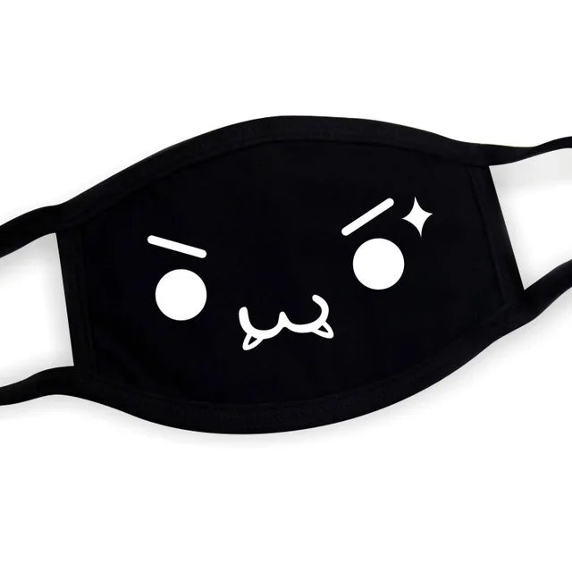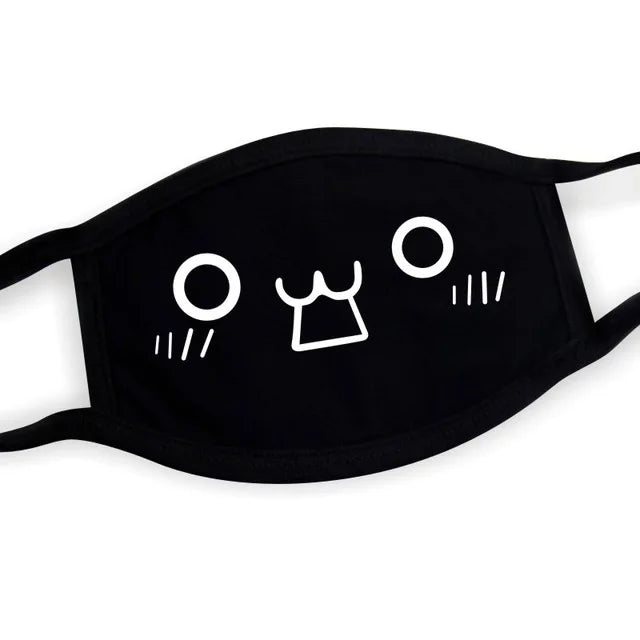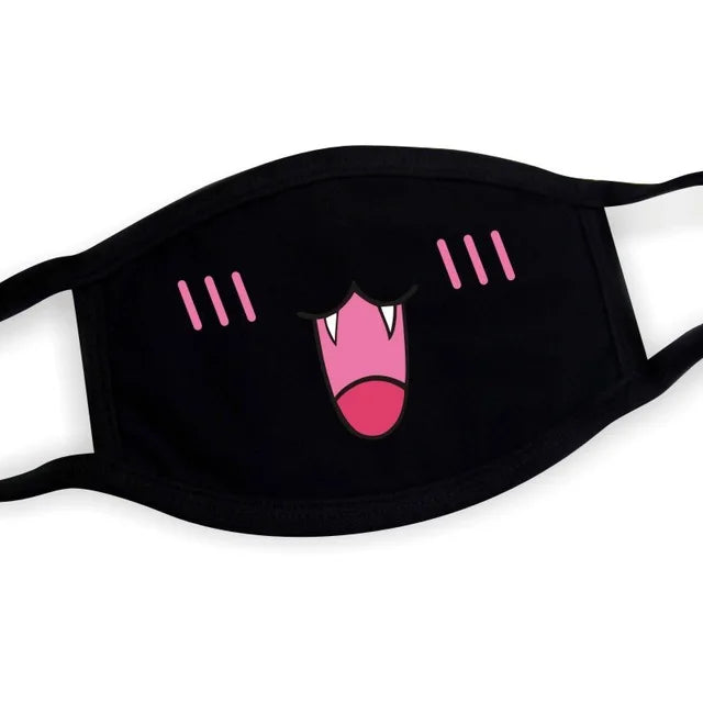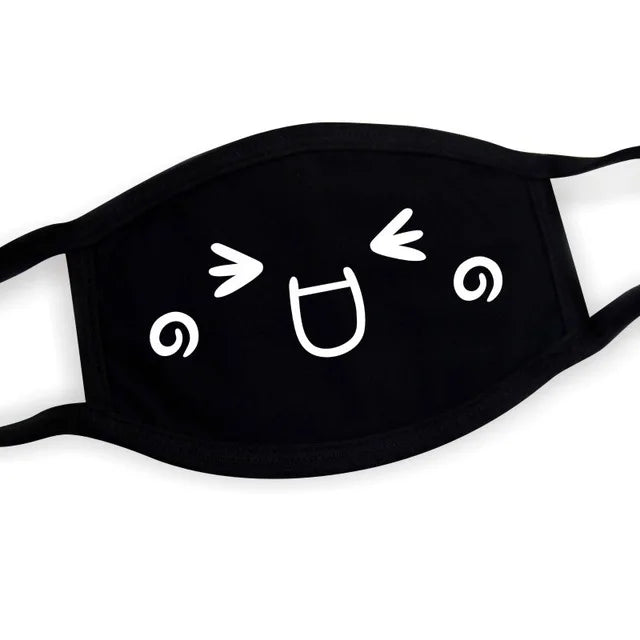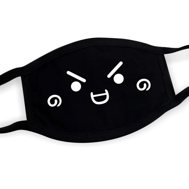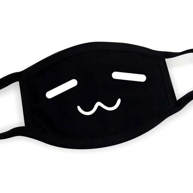 Super Cute Expression Smile Breathable Mouth Face Mask For Korean Black Kpop Unisex Kawaii Face Mouth Muffle Mask Cotton Anime