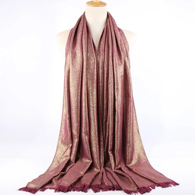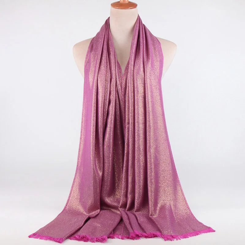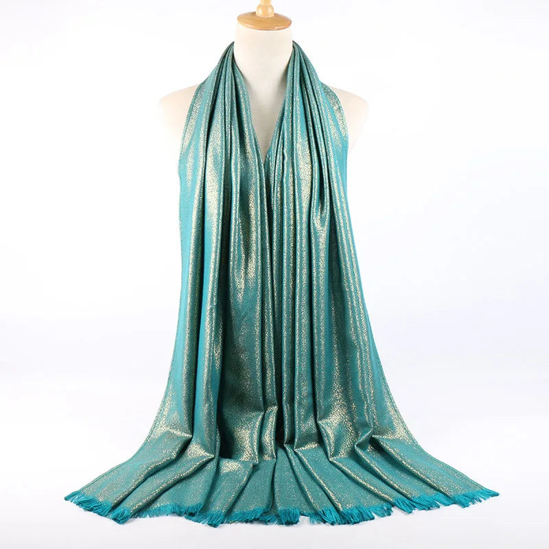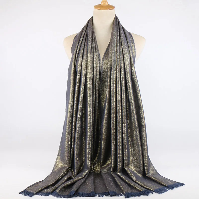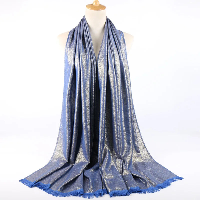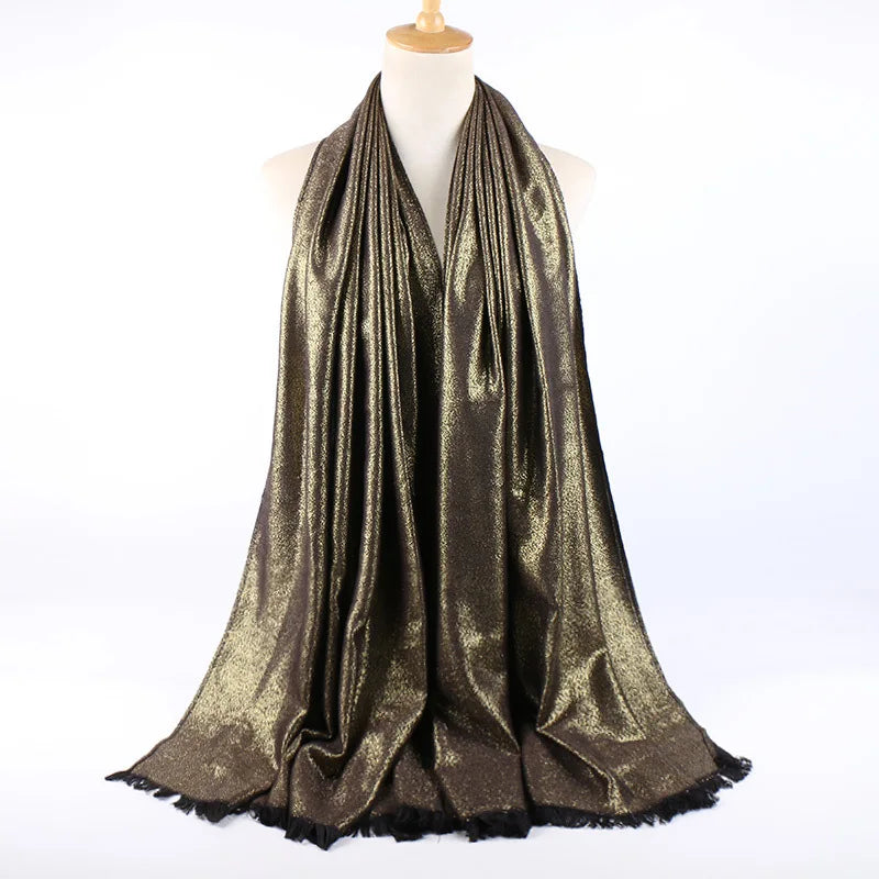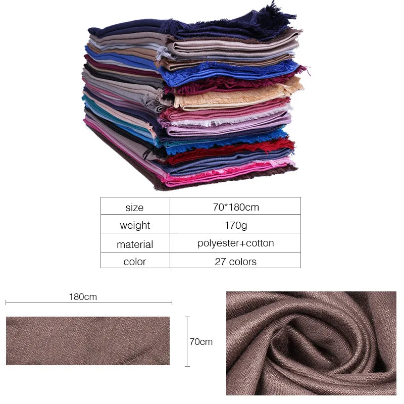 Glitter Lurex Cotton Gold Hijab Scarf Women Silver Tassels Shawls Muslim Scarves Headscarf Solid Wraps Headband Pashmina Stoles