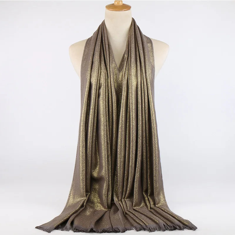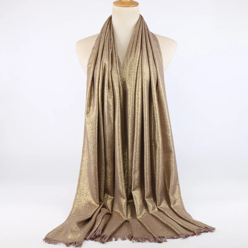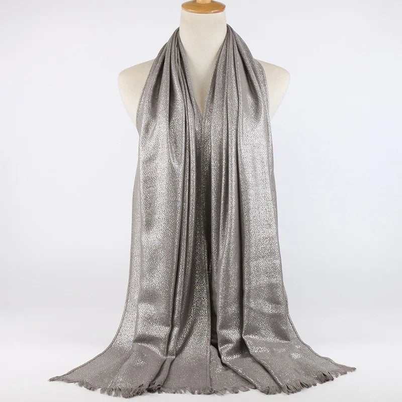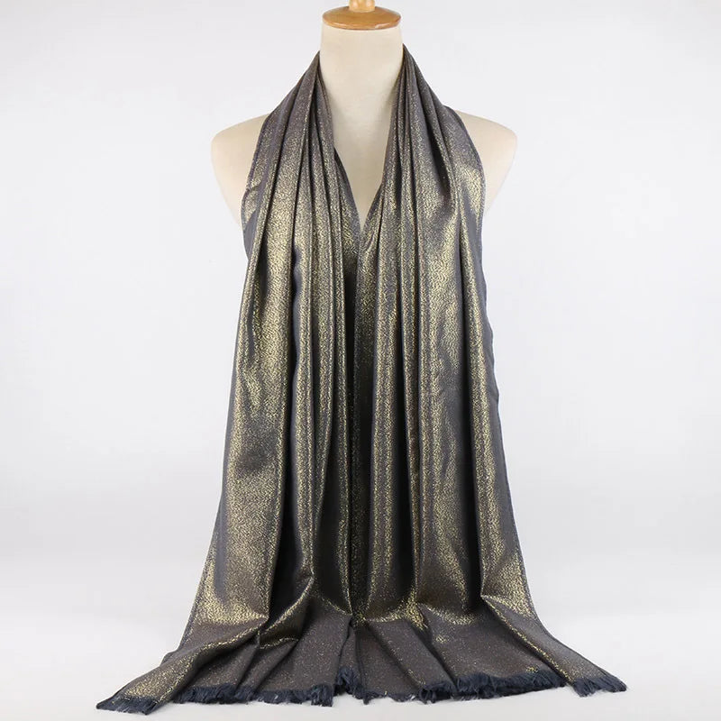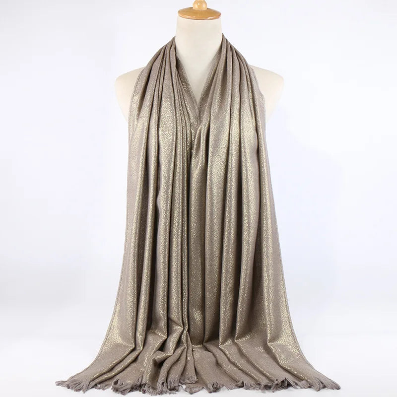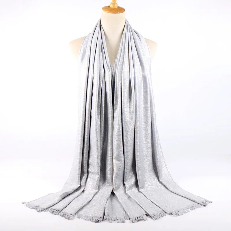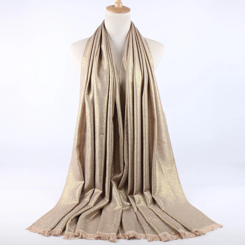Glitter Lurex Cotton Gold Hijab Scarf Women Silver Tassels Shawls Muslim Scarves Headscarf Solid Wraps Headband Pashmina Stoles