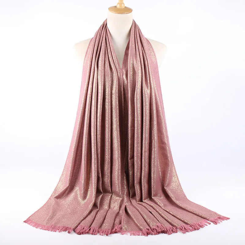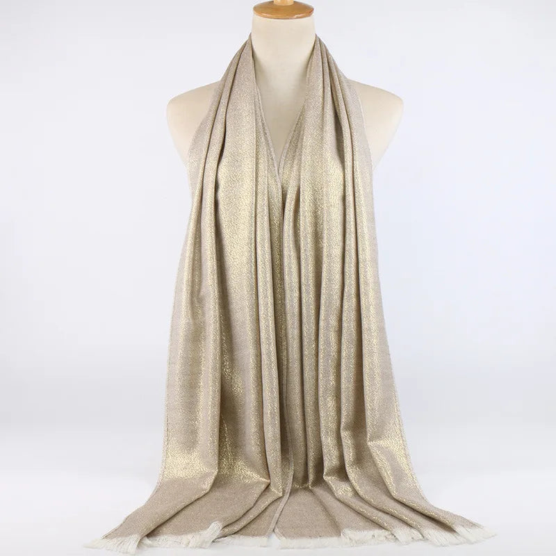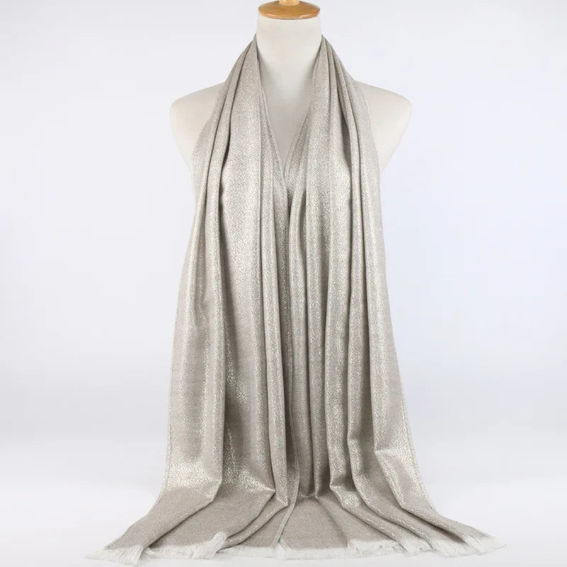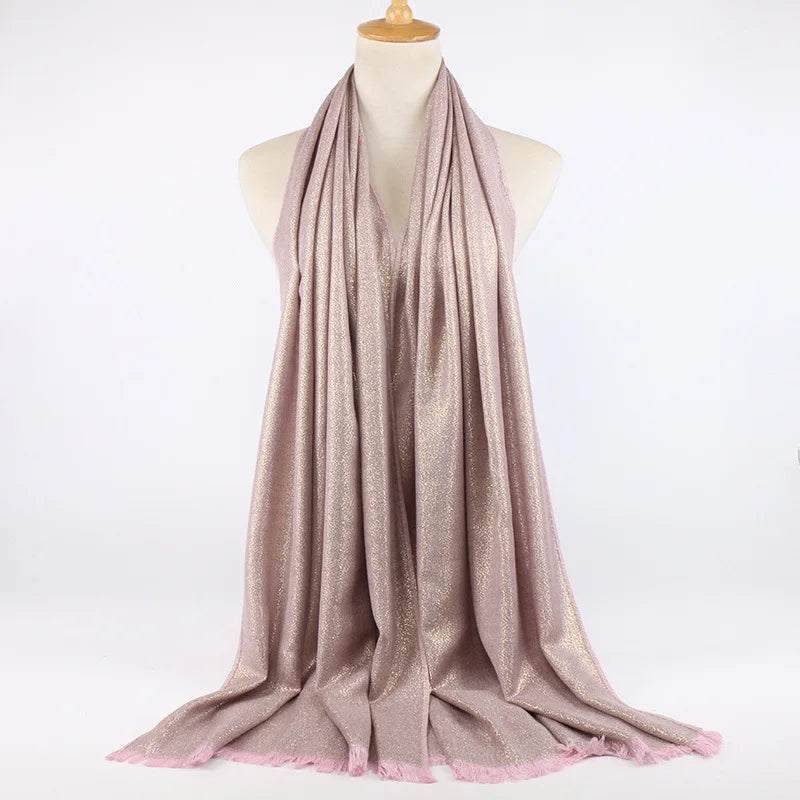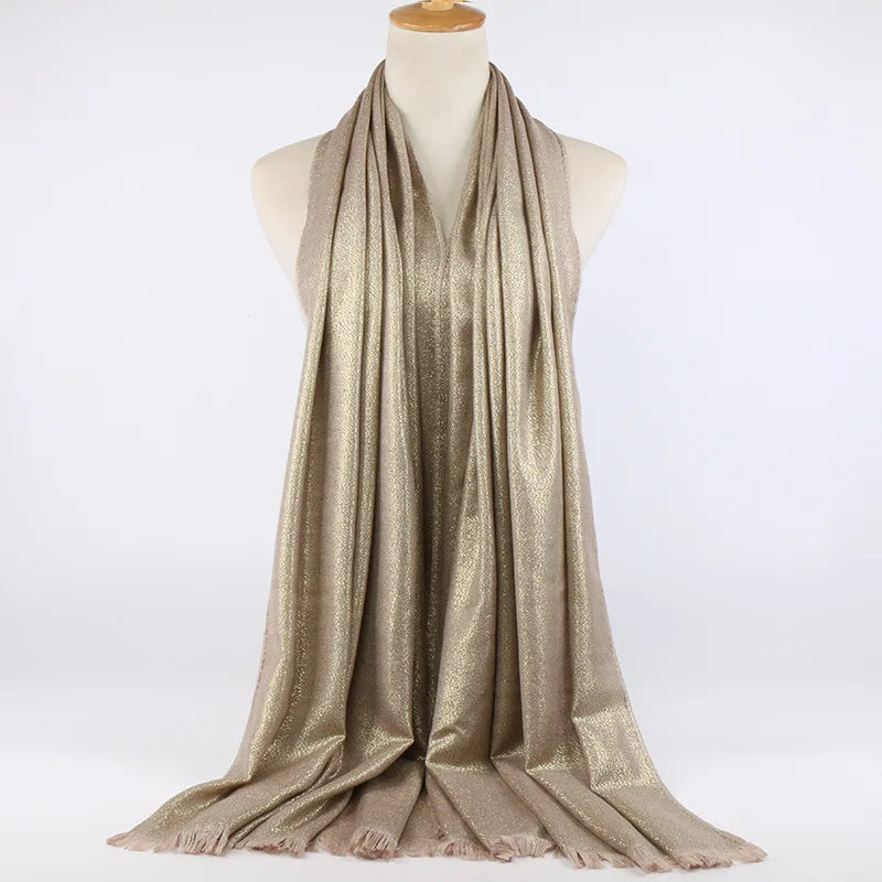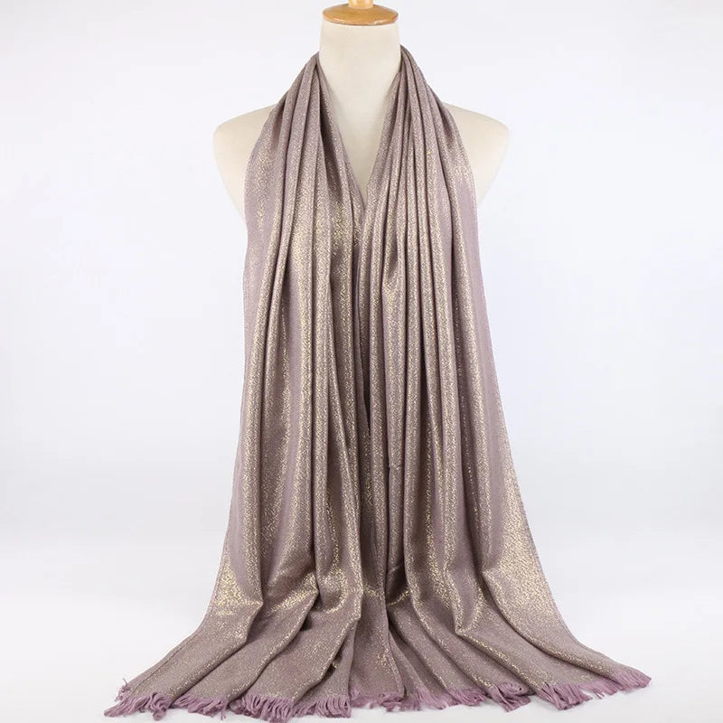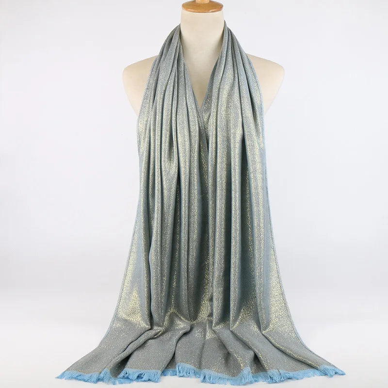 Glitter Lurex Cotton Gold Hijab Scarf Women Silver Tassels Shawls Muslim Scarves Headscarf Solid Wraps Headband Pashmina Stoles