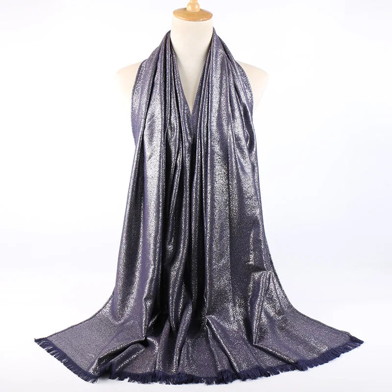 Cotton glitter lurex gold hijab scarf silver tassels shawls muslim scarves headscarf solid wraps headband scarves pashmina