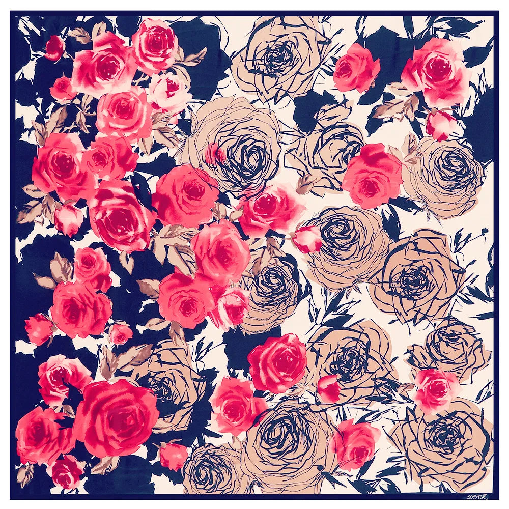 LESIDA Pure Silk Scarf Women Large Shawls Stoles Tree Print Square Scarves Echarpes Foulards Femme Wrap Bandanas 130*130CM 1303