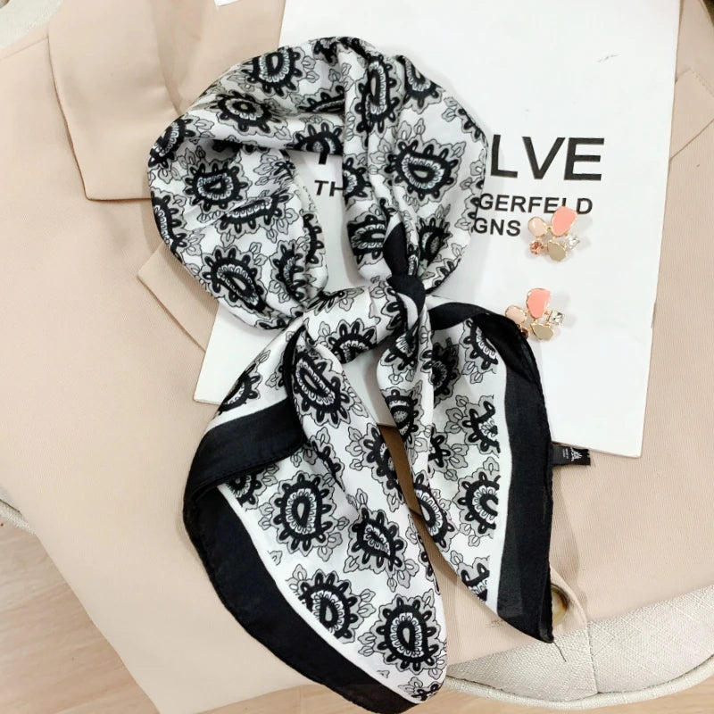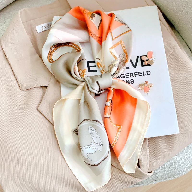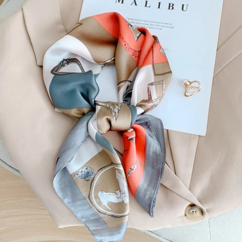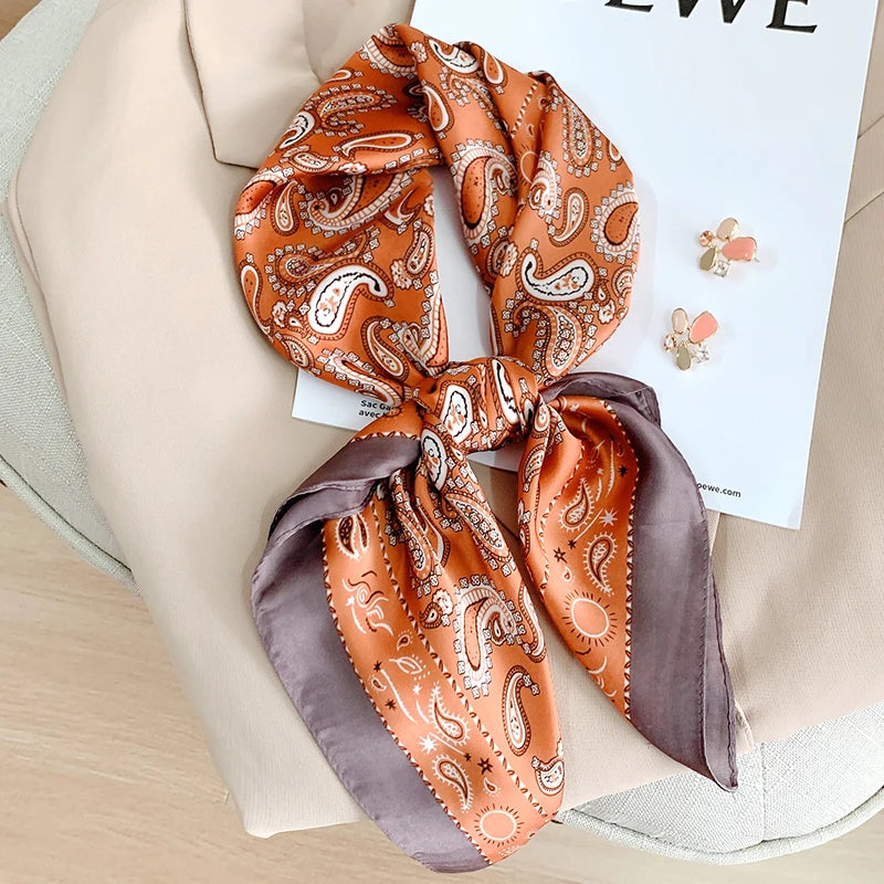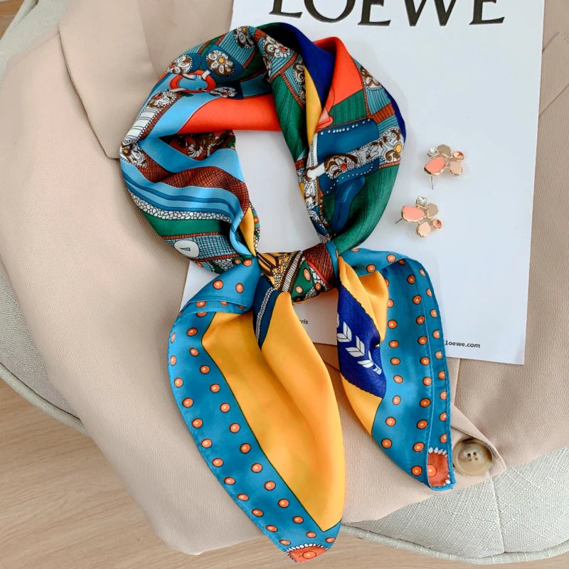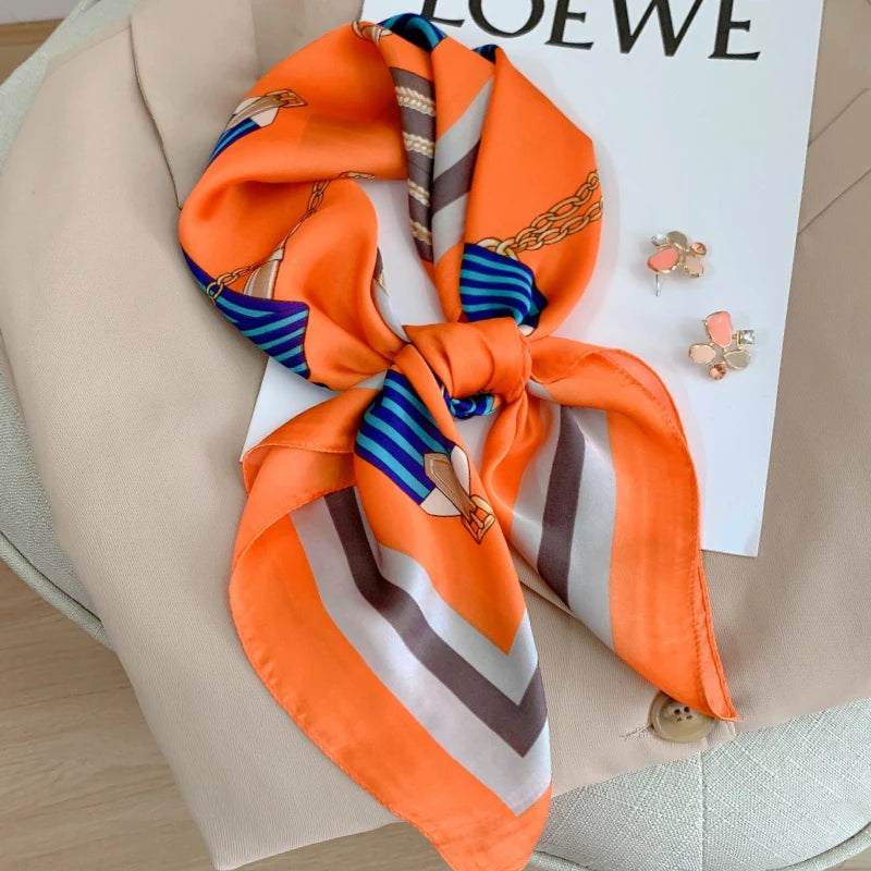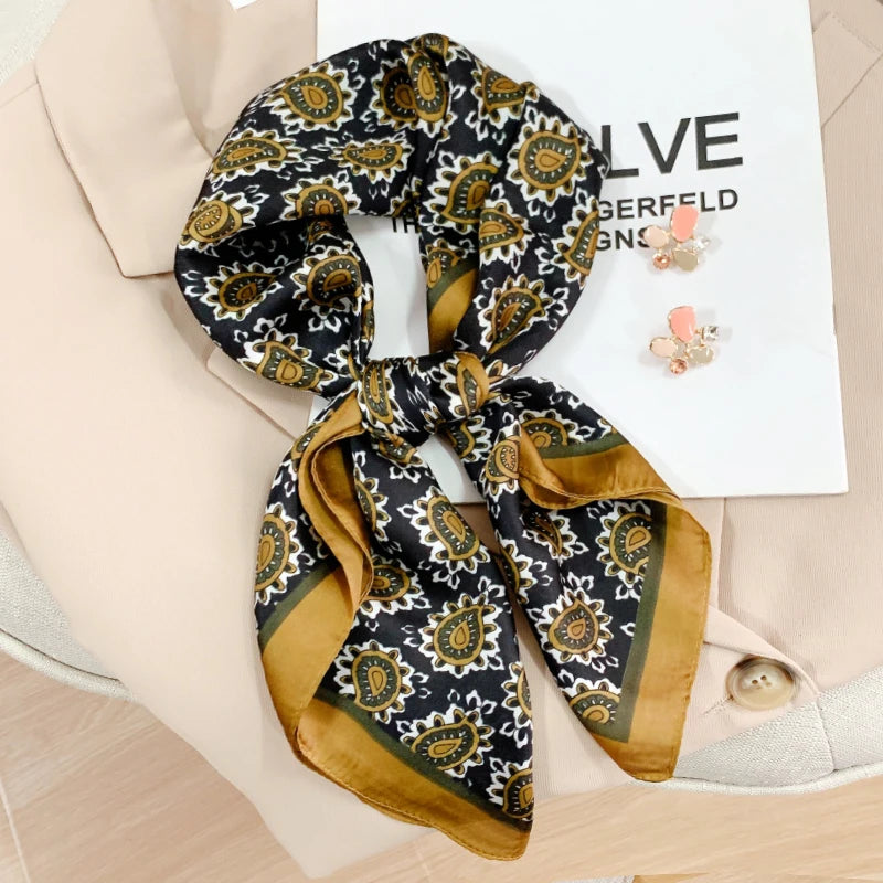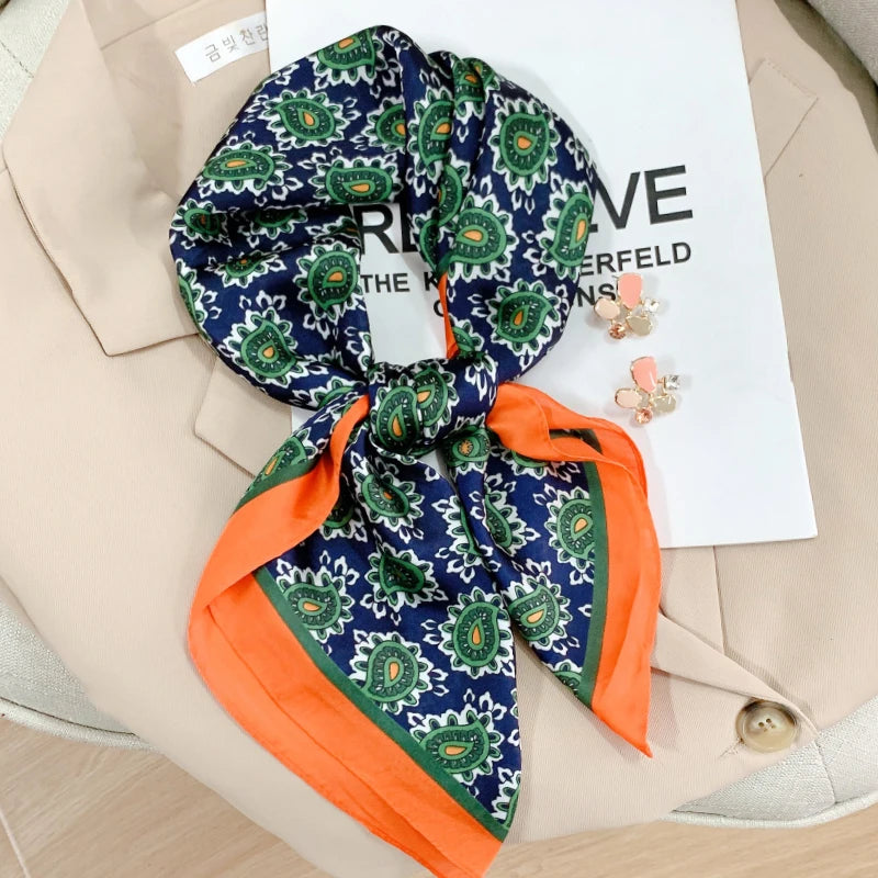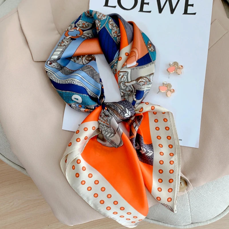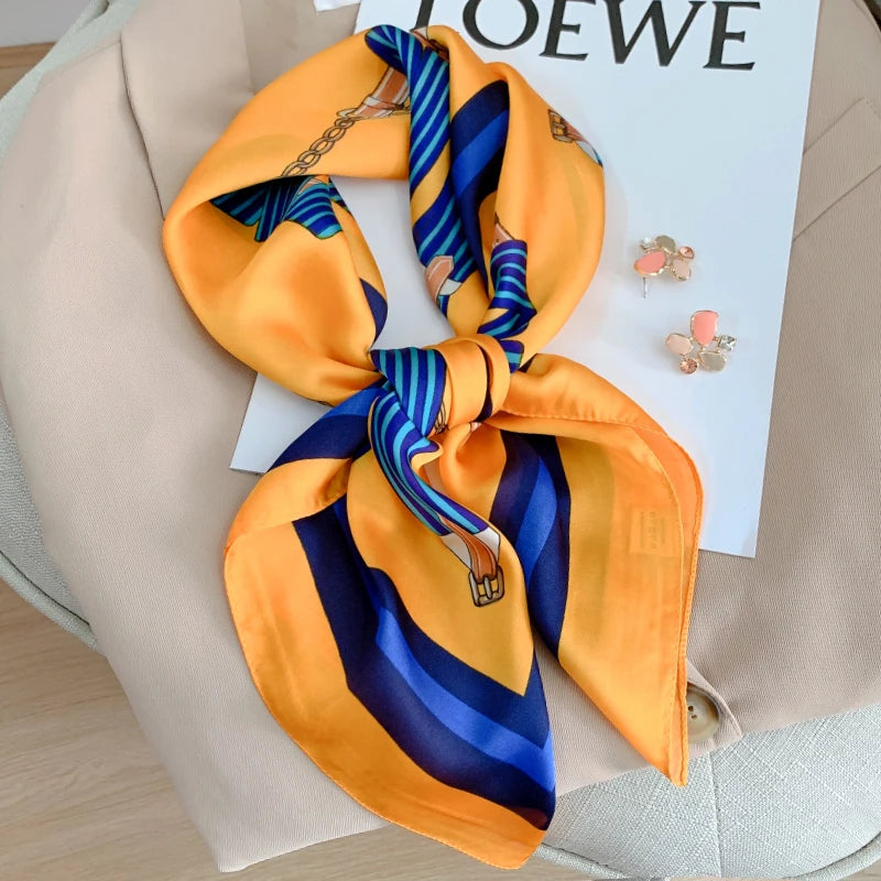 New 70*70cm Kerchief Popular Print Headcloth Luxury Design Silk Scarves Fashion Sunscreen Muffler Square Shawl Bandanna Foulard
