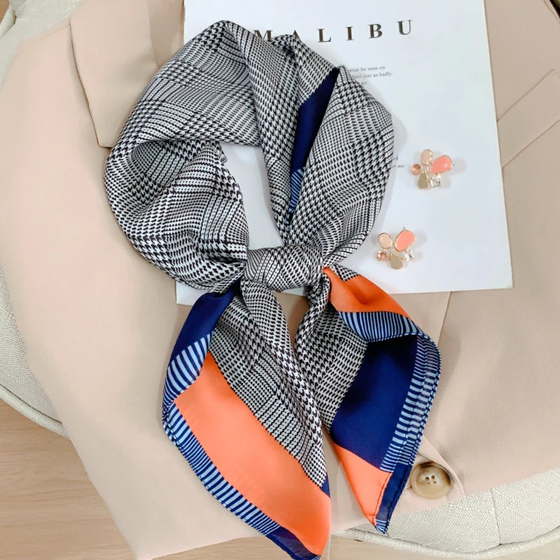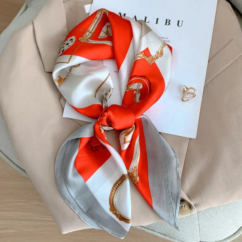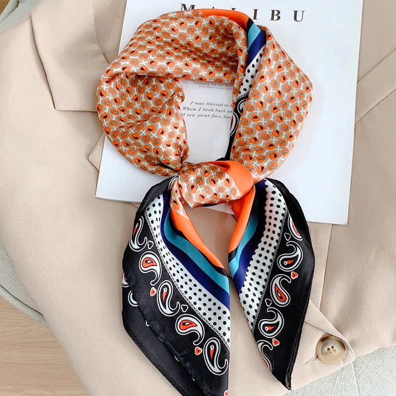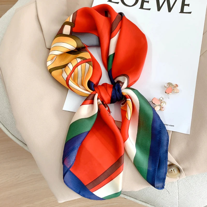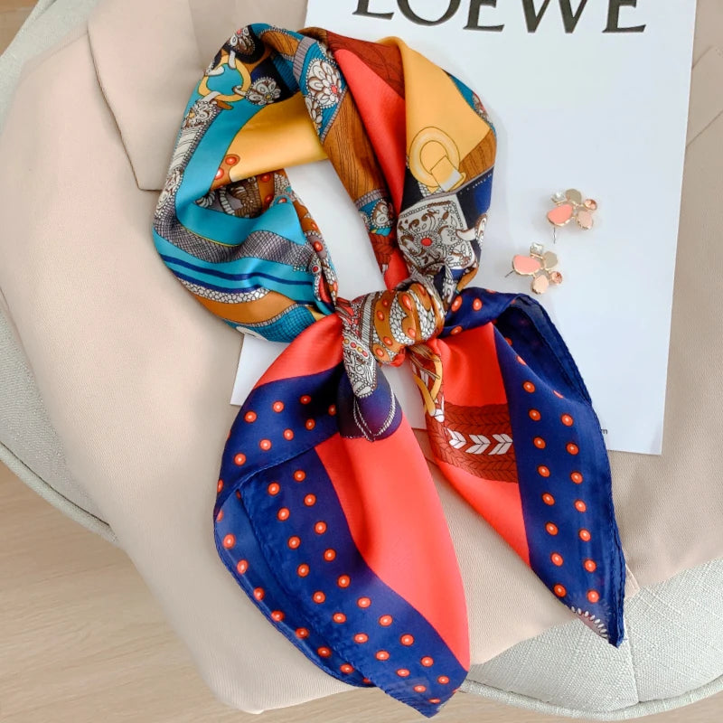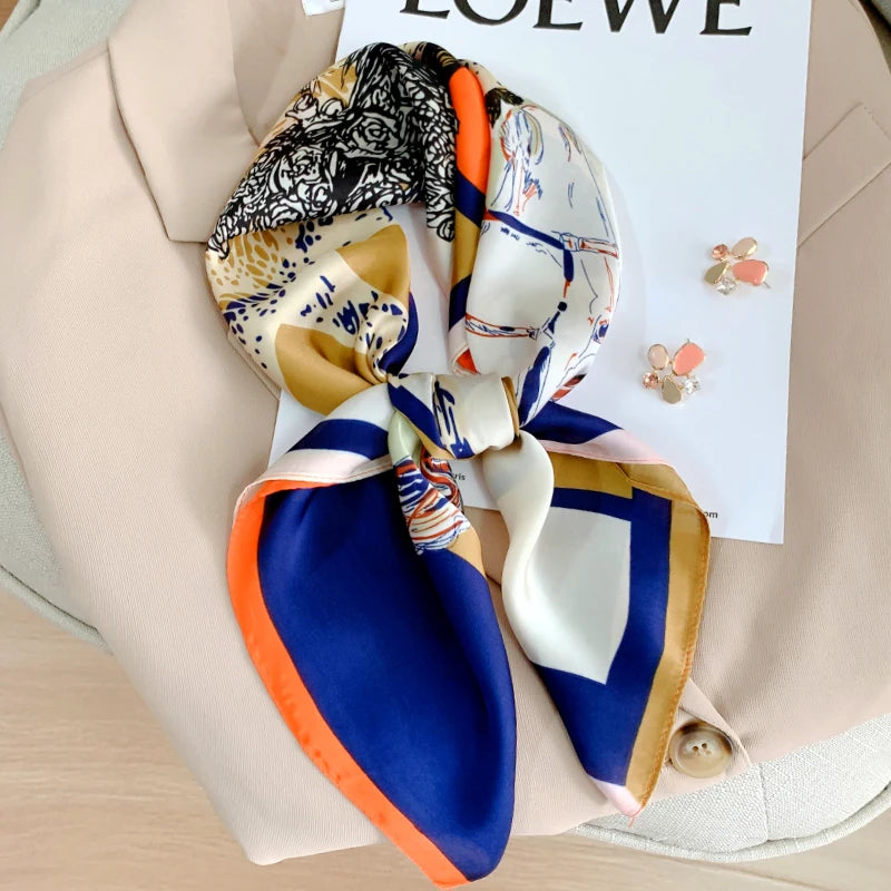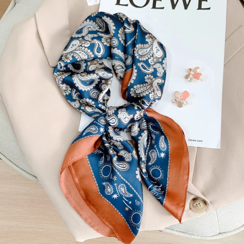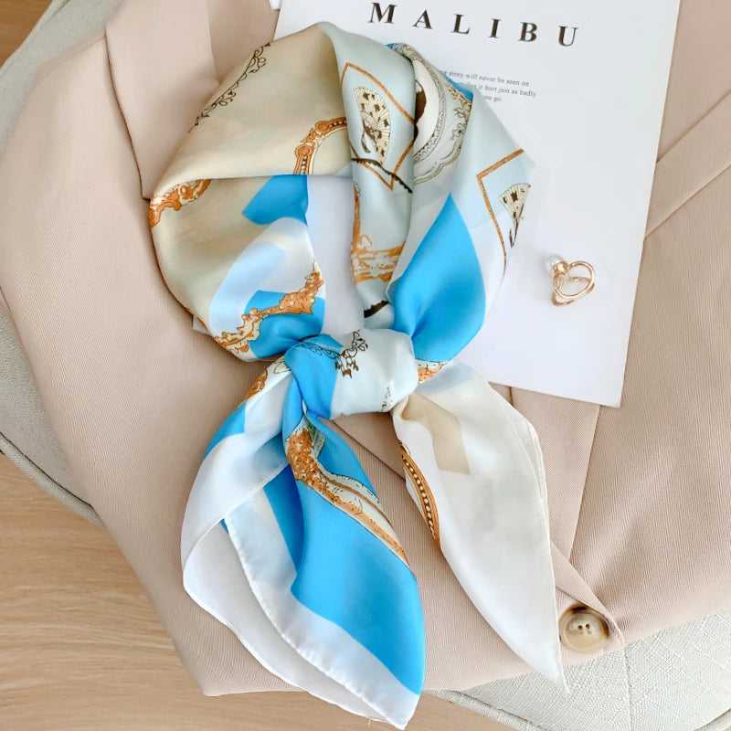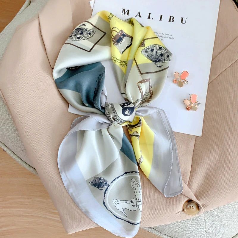 New 70*70cm Kerchief Popular Print Headcloth Luxury Design Silk Scarves Fashion Sunscreen Muffler Square Shawl Bandanna Foulard