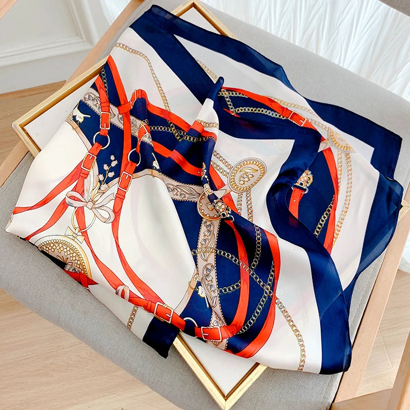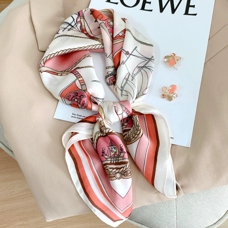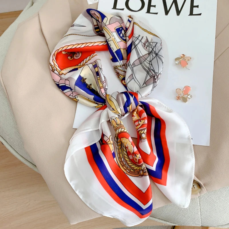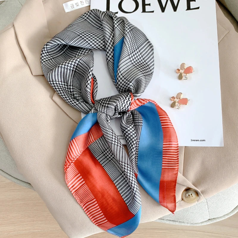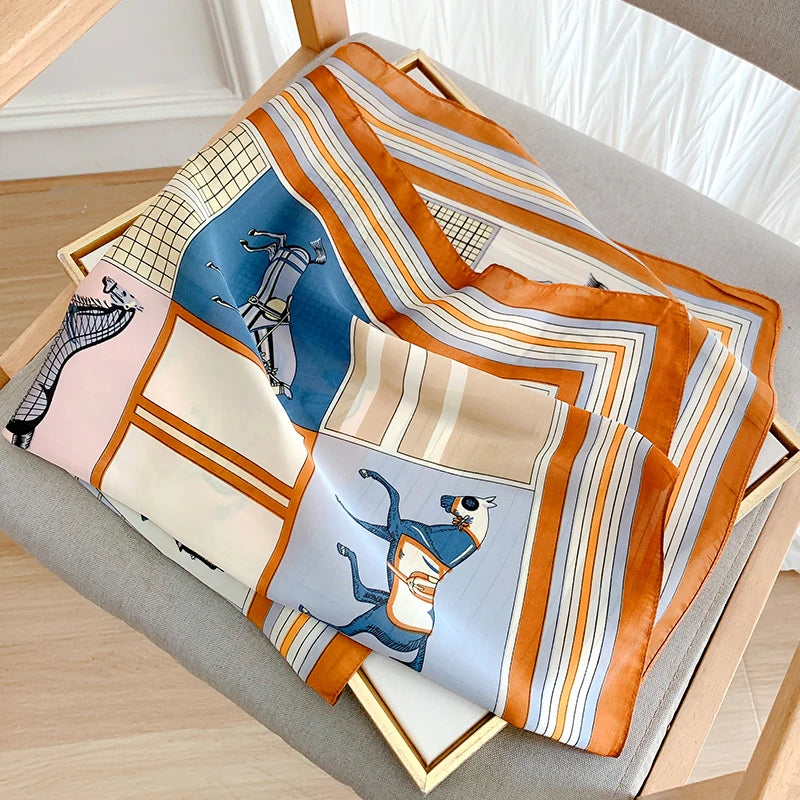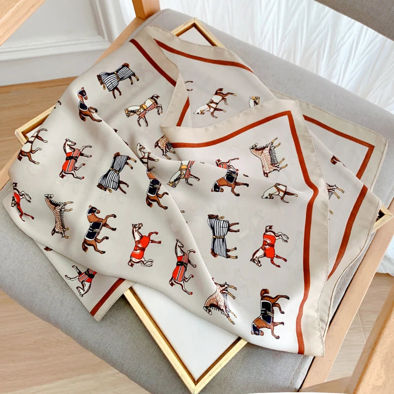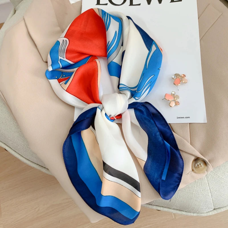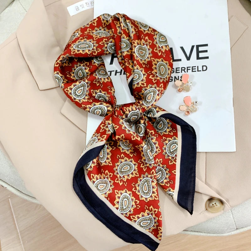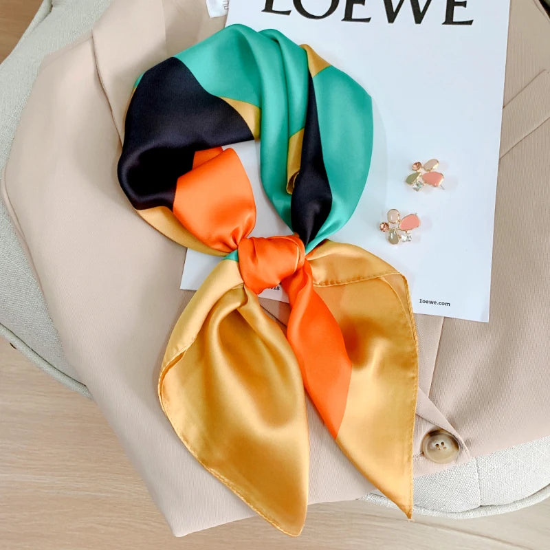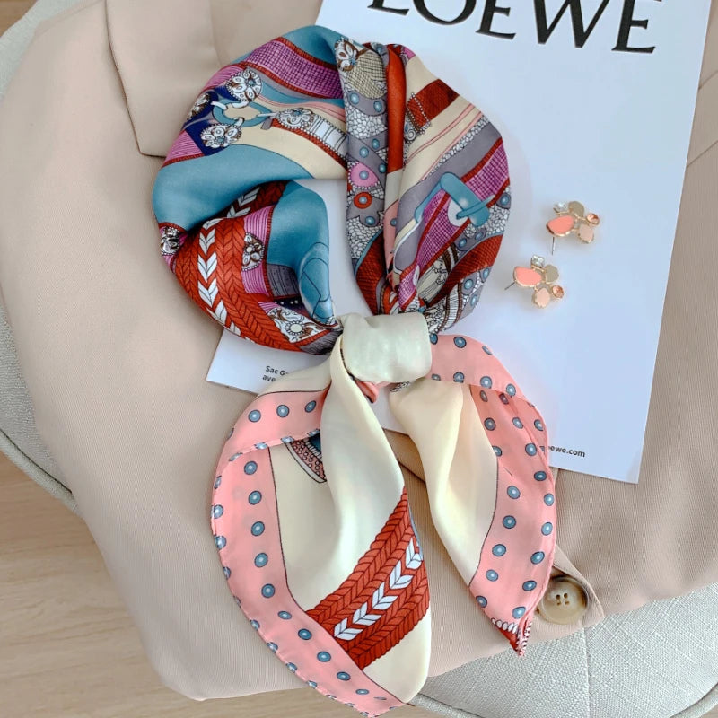 New 70*70cm Kerchief Popular Print Headcloth Luxury Design Silk Scarves Fashion Sunscreen Muffler Square Shawl Bandanna Foulard