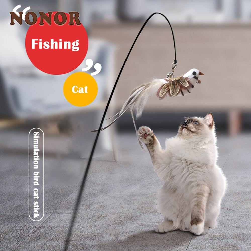 NONOR Simulation Bird Interactive Cat Toy Funny Feather Bird with Bell Cat Stick for Kitten Playing Teaser Wand Toy Cat Supplies