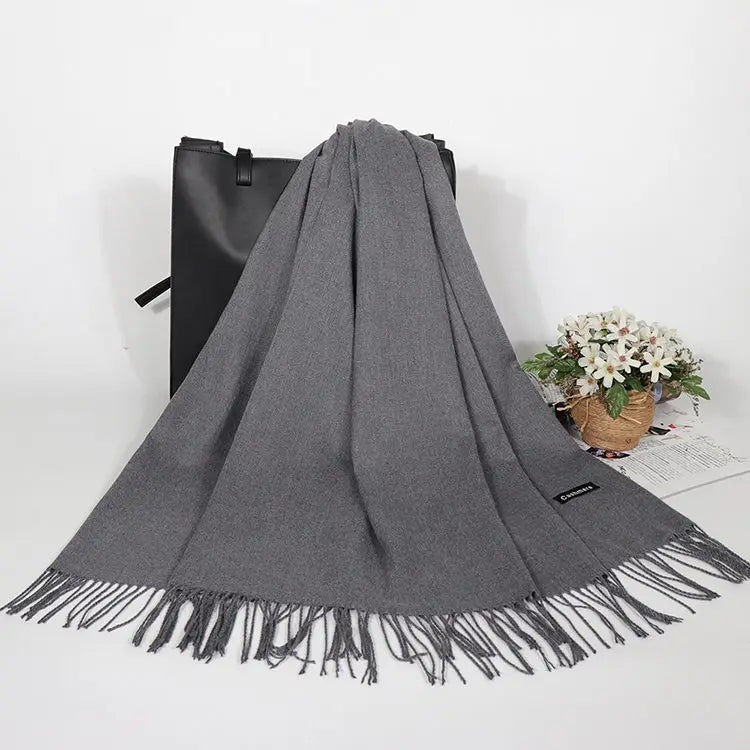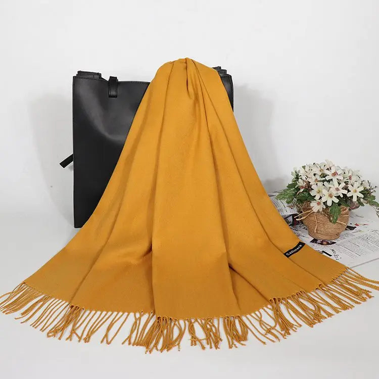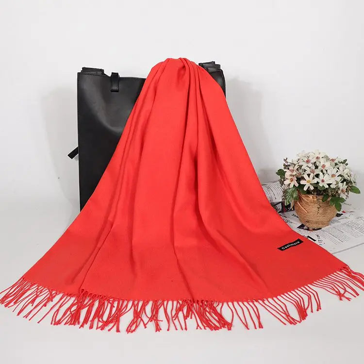 Winter Cashmere Women Scarf Female Luxury Brand Scarves Lady Tassel Bandana Women Solid Shawl Wraps Foulard Tippet Pashmina