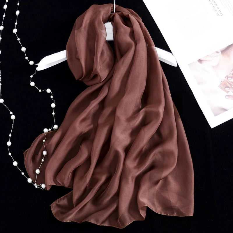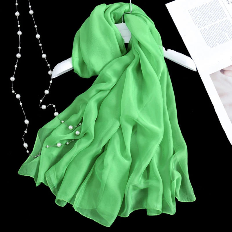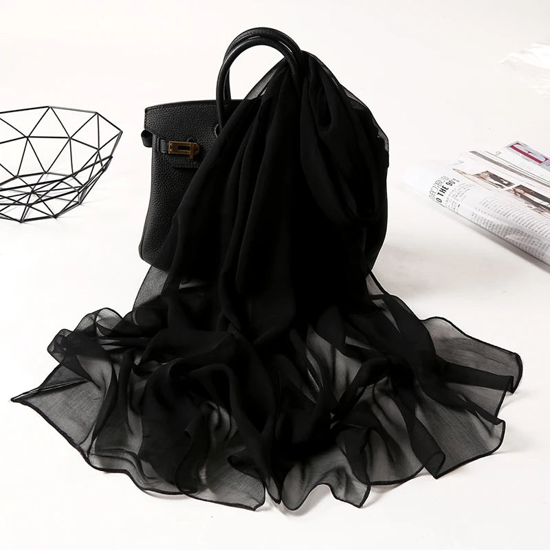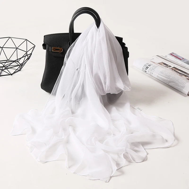 Women Foulard Solid Color Chiffon Georgette Scarf Bandana Elegant Long Shawl Hijab Summer Sun Protection Beach Scarf