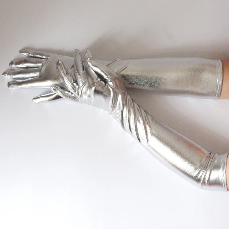 Unisex Gloves Sexy Etiquette Gloves Fake Leather Metallic Gloves Evening Party Performance Mittens Patent Leather Silver Gold