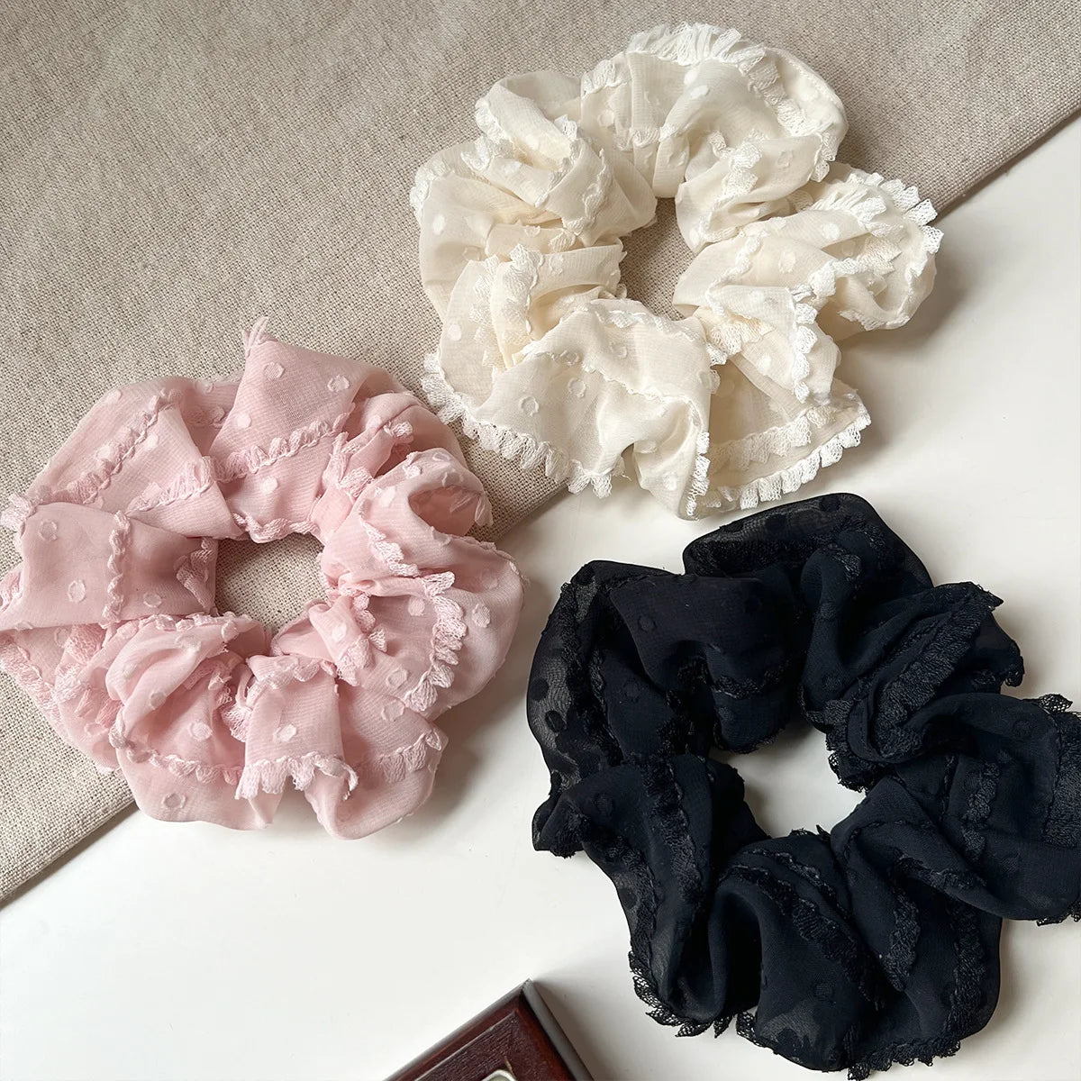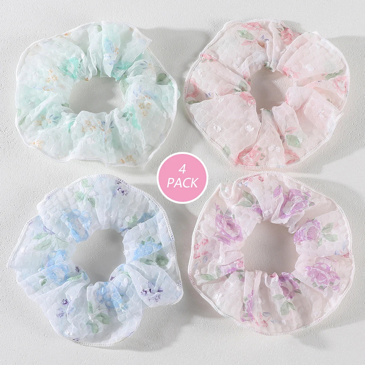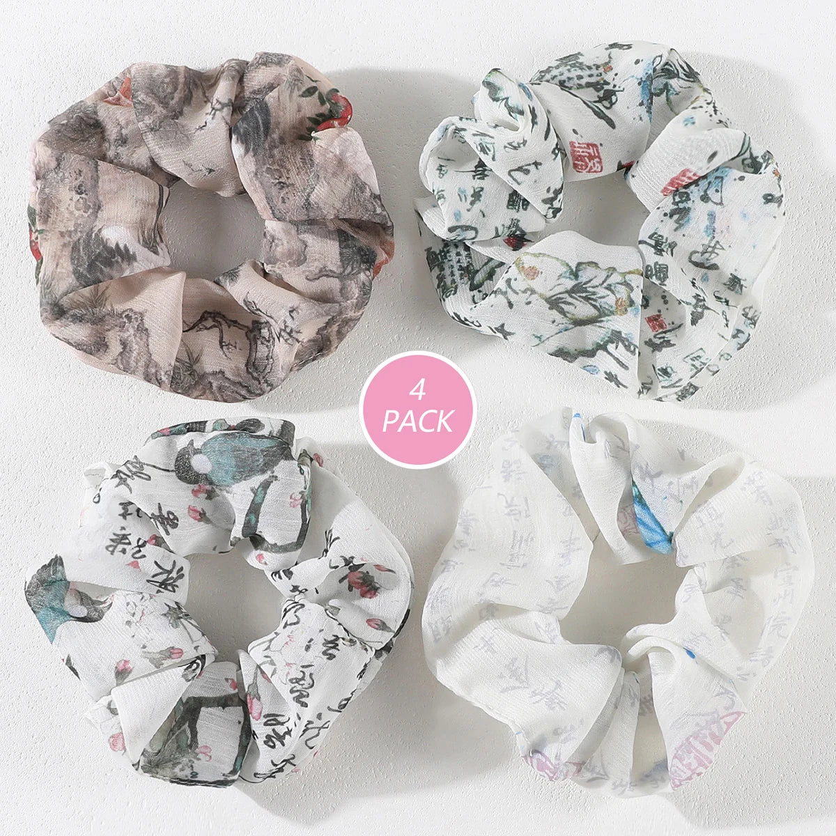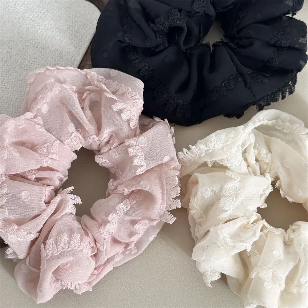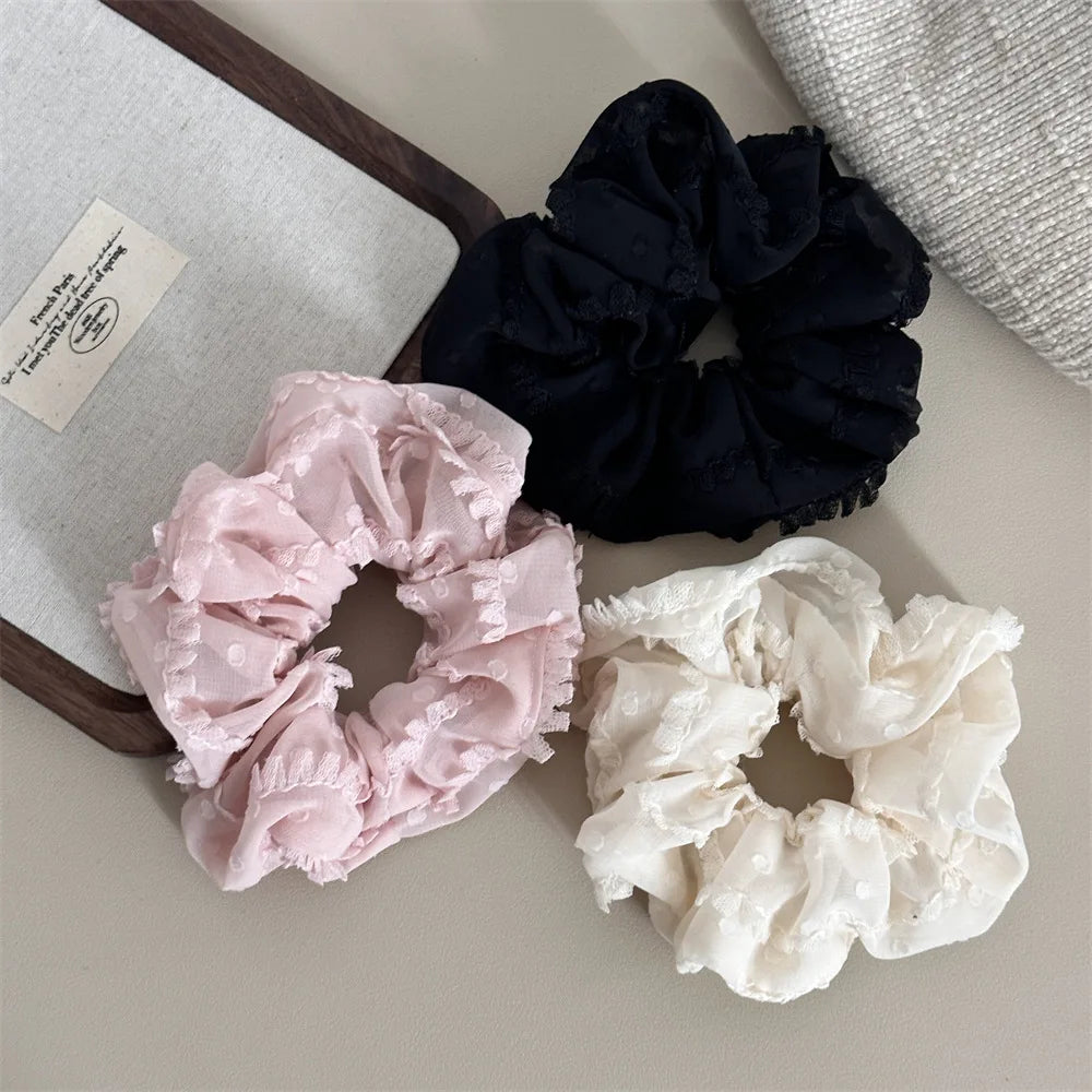 3/4Pcs Sweet Printed Elastics Hair Bands Women Girls Simple Scrunchies Korean Pink Mesh Hair Ties Ponytail Hair Accessories