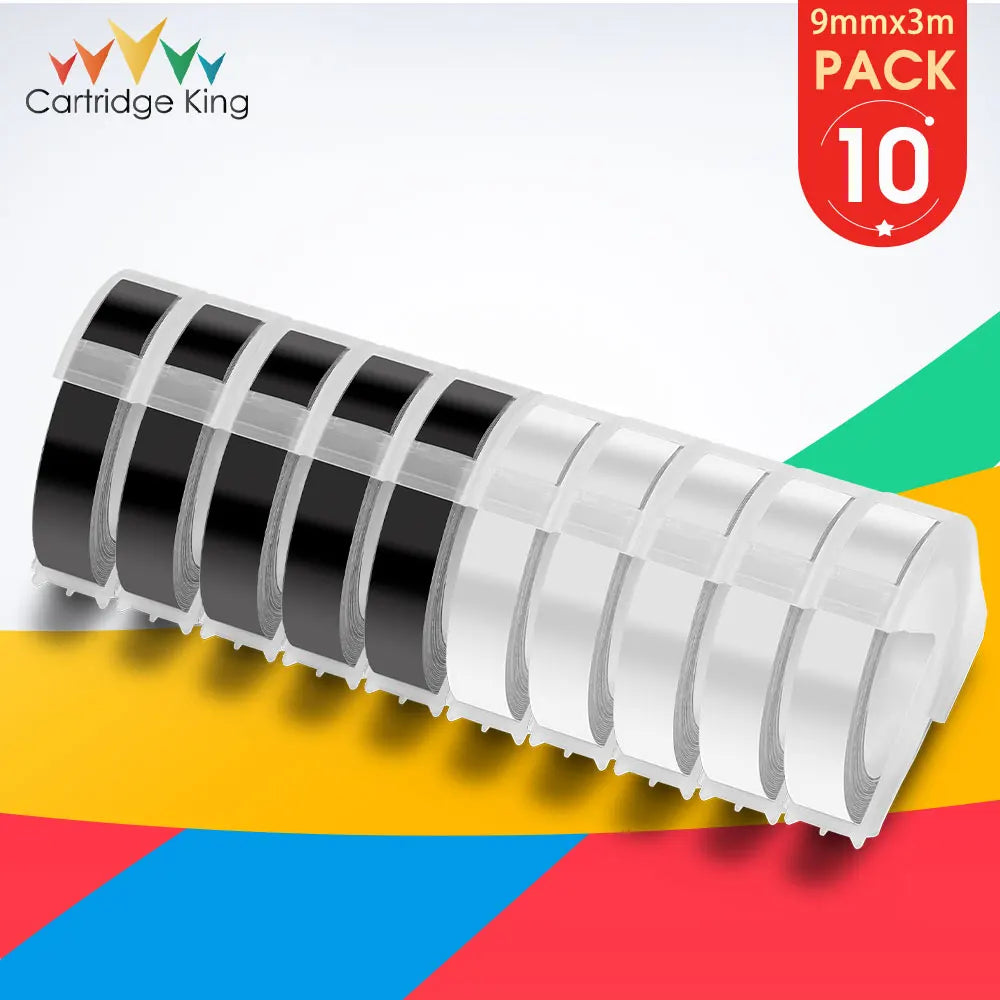 10PK for Dymo 3D Embossing Tapes Dymo 9mm Label Tape Compatible for Motex Printer Dymo E-101 1540 1610 1880 Label Maker