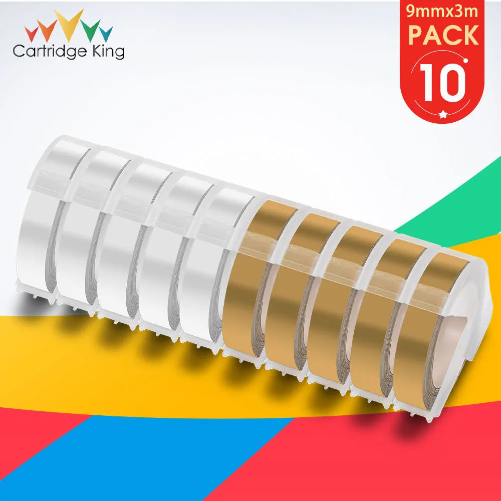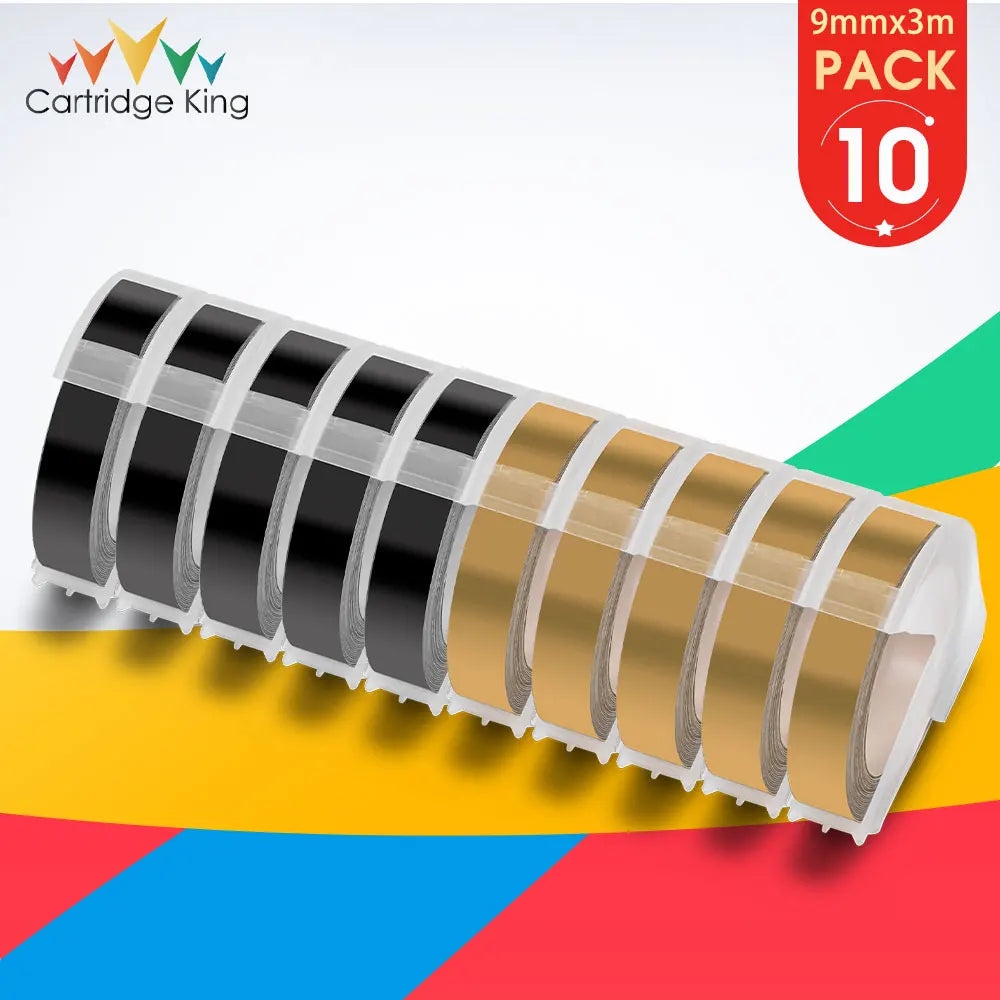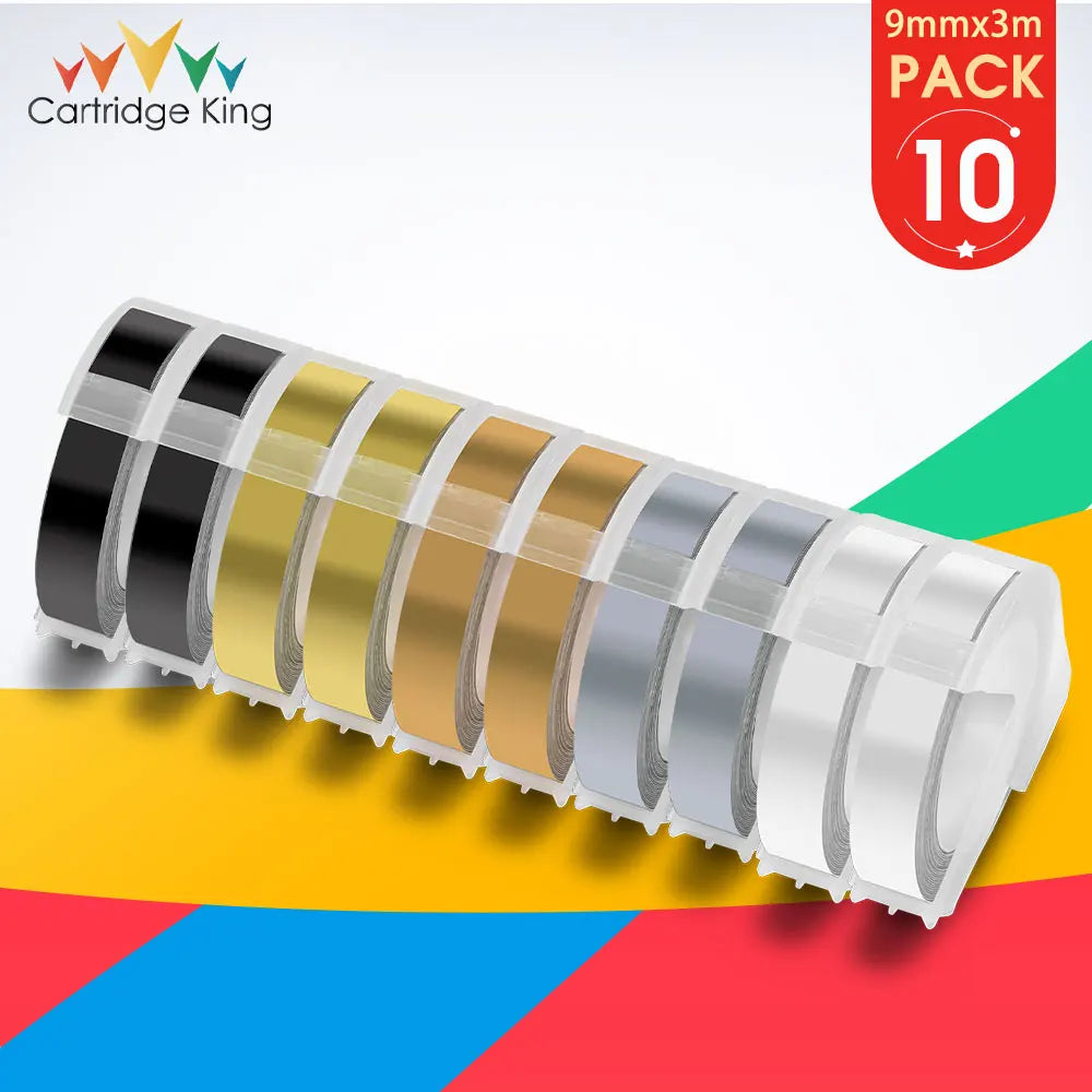 10PK for Dymo 3D Embossing Tapes Dymo 9mm Label Tape Compatible for Motex Printer Dymo 12965 E101 1540 1610 1880 Label Maker