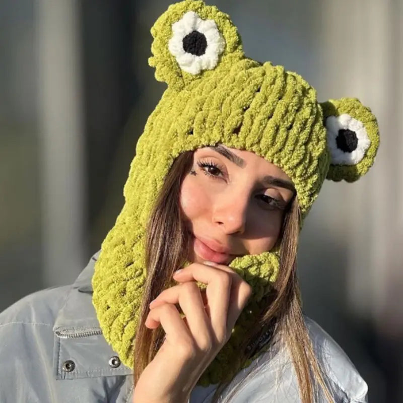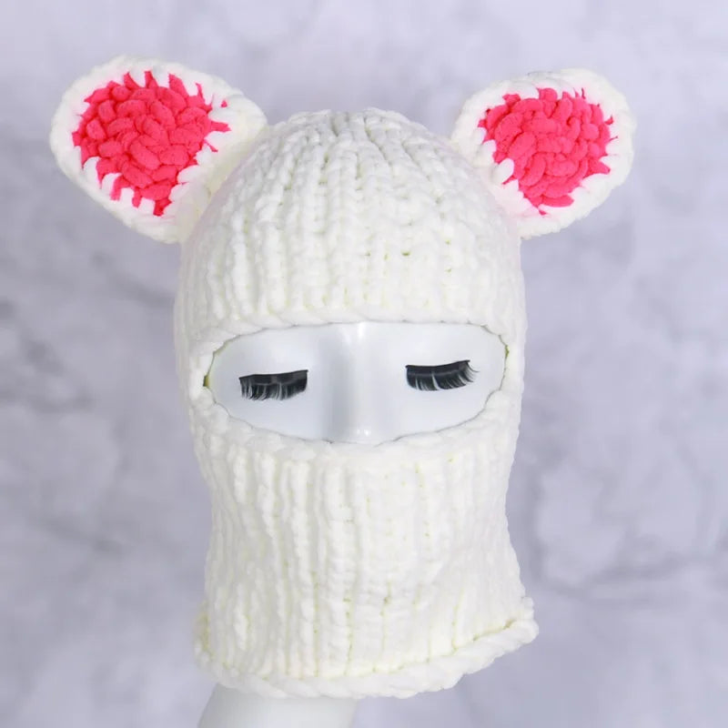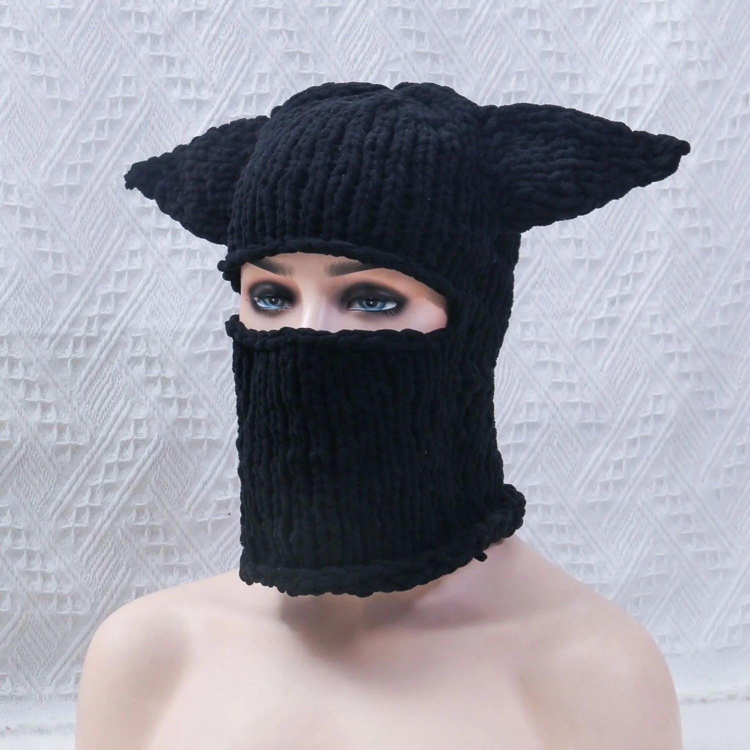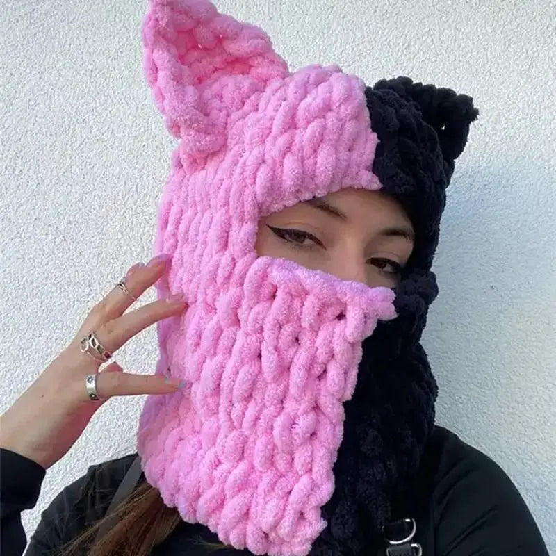 Combhasaki Women's Y2K Hooded Scarf Hats Cute Animal Ears Knitted Pullover Balaclava Winter Warm Beanie Cap for Cold Weather